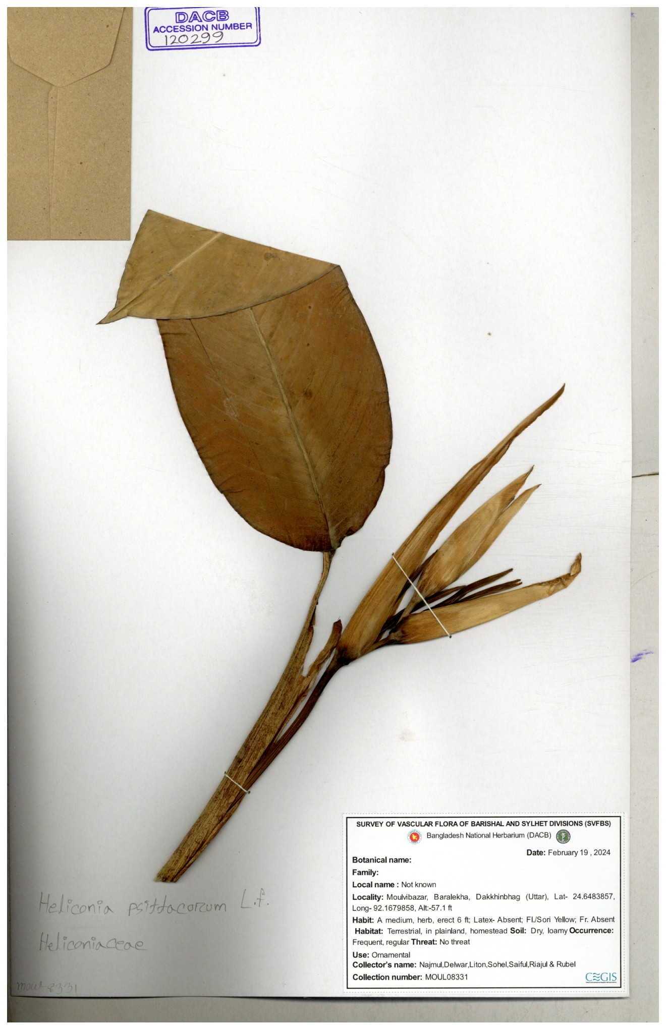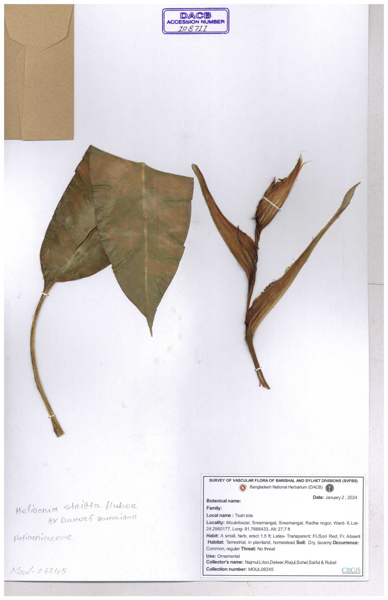 | 54870 | Heliconiaceae | Heliconia cristata Barreiros | Tajul, Al-Amin & Kawsar | TAK- 4863 10-05-2017 |