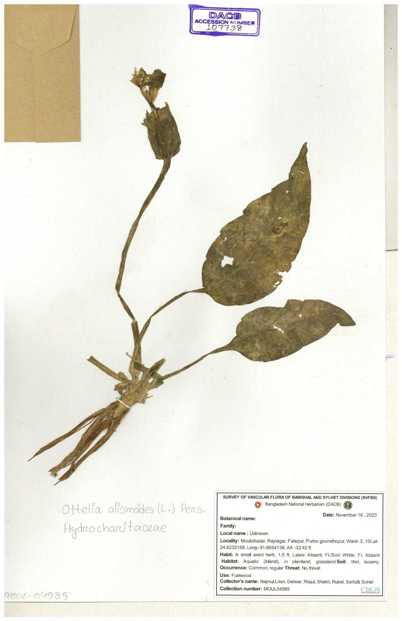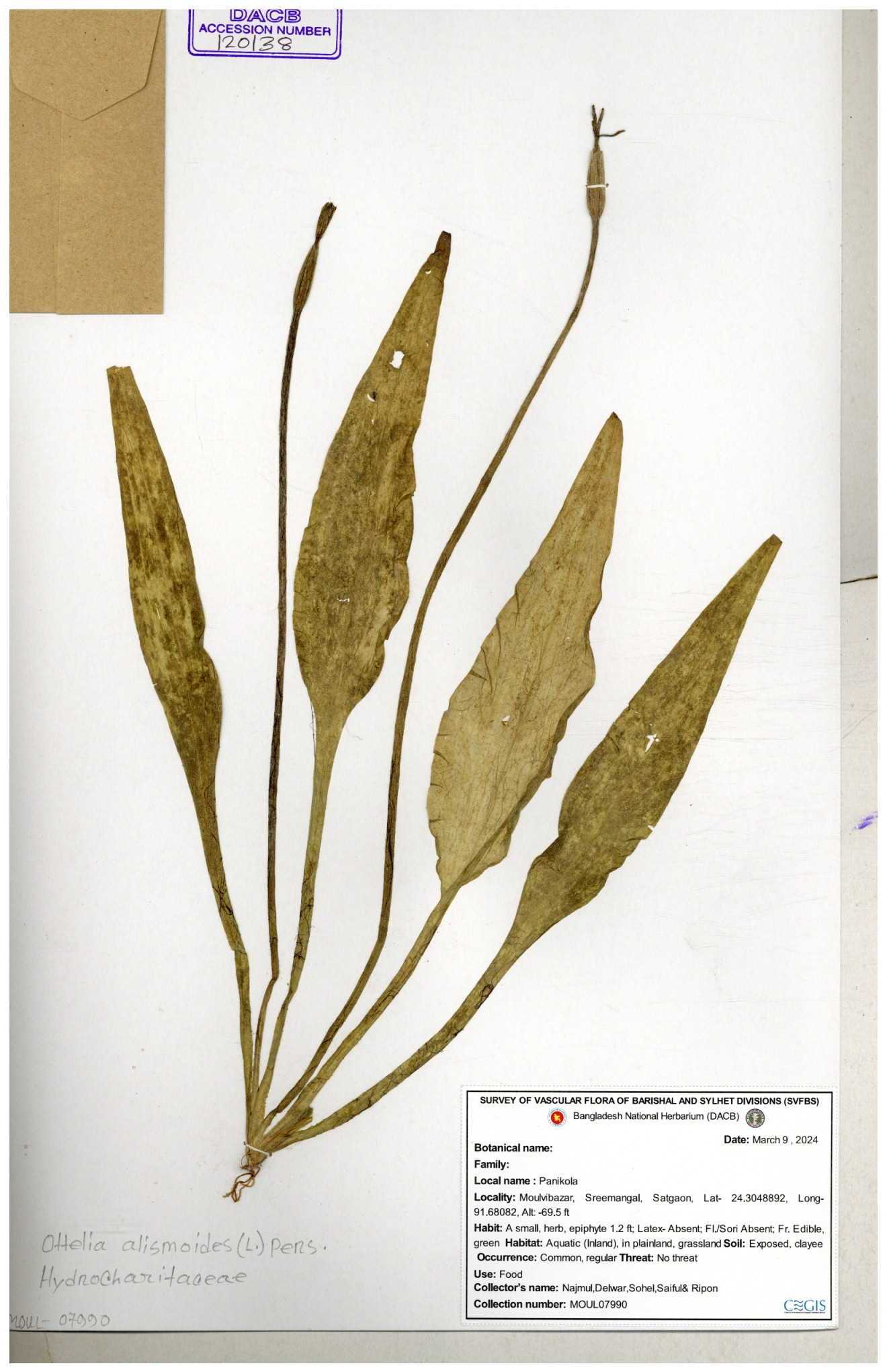 | 120138 | Hydrocharitaceae | Ottelia alismoides | 30-11--0001 |