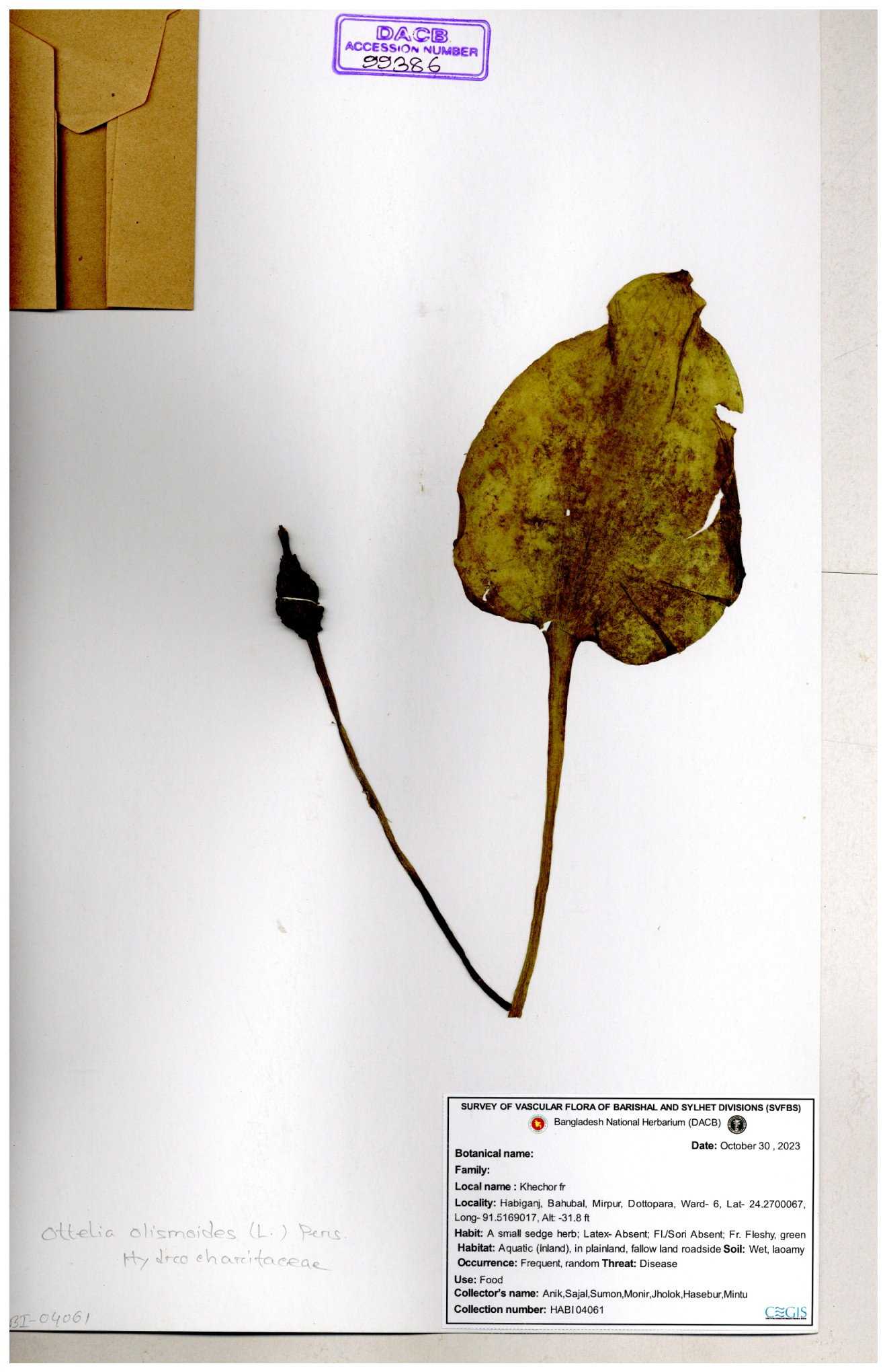 | 99386 | Hydrocharitaceae | Ottelia olismoides | 30-11--0001 |