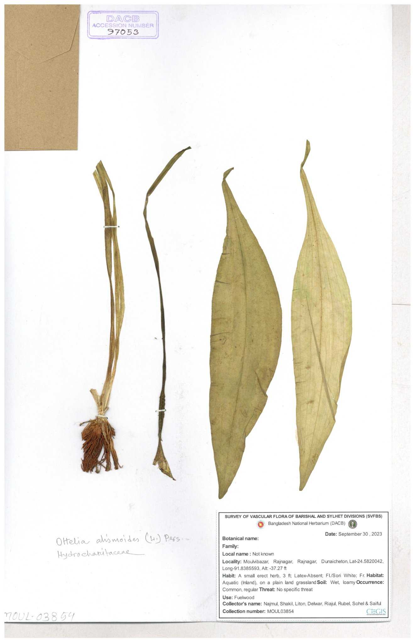 | 97053 | Hydrocharitaceae | Ottelia alismoides | 30-11--0001 |