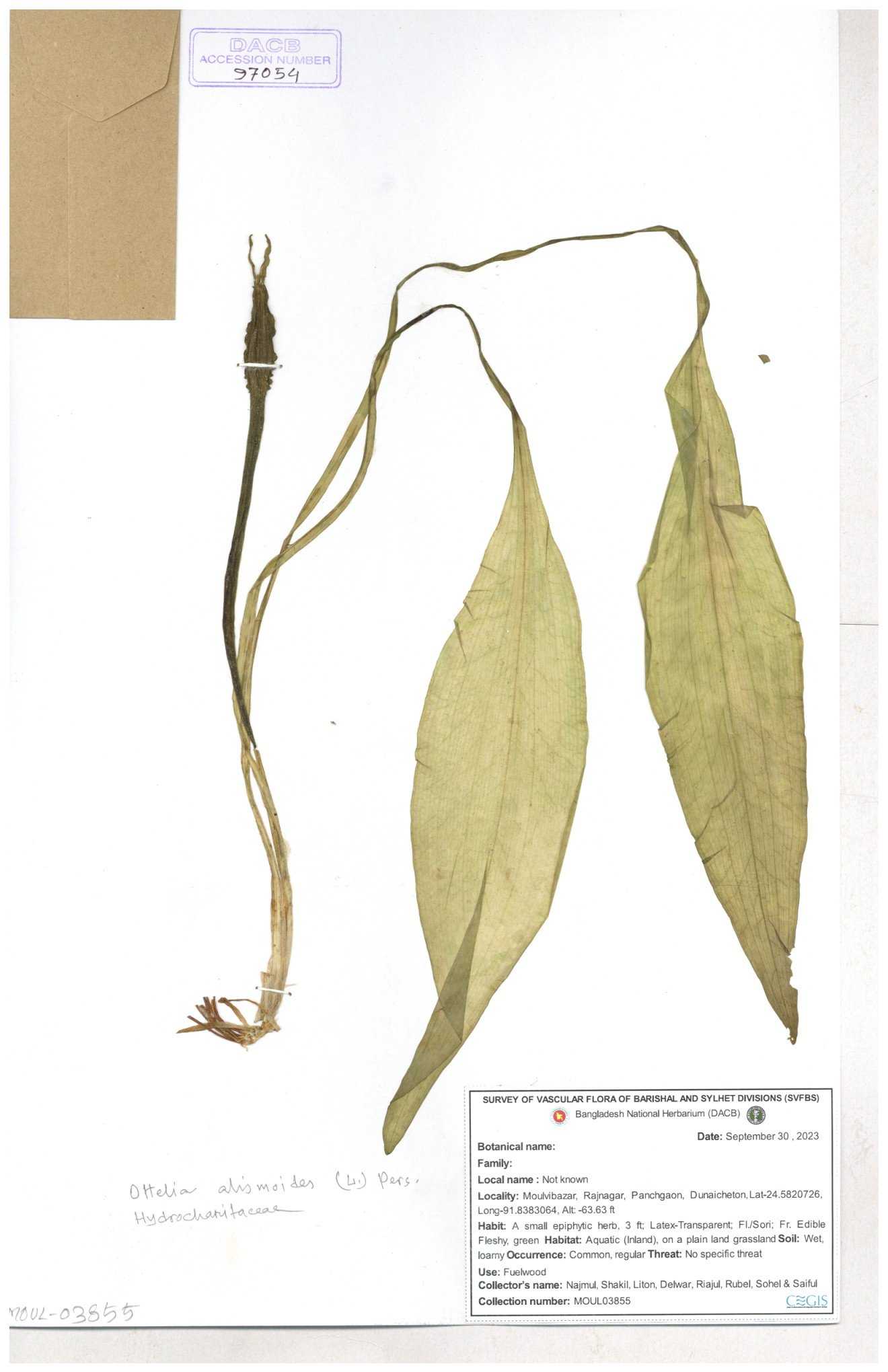 | 97055 | Hydrocharitaceae | Ottelia alismoides | 30-11--0001 |
