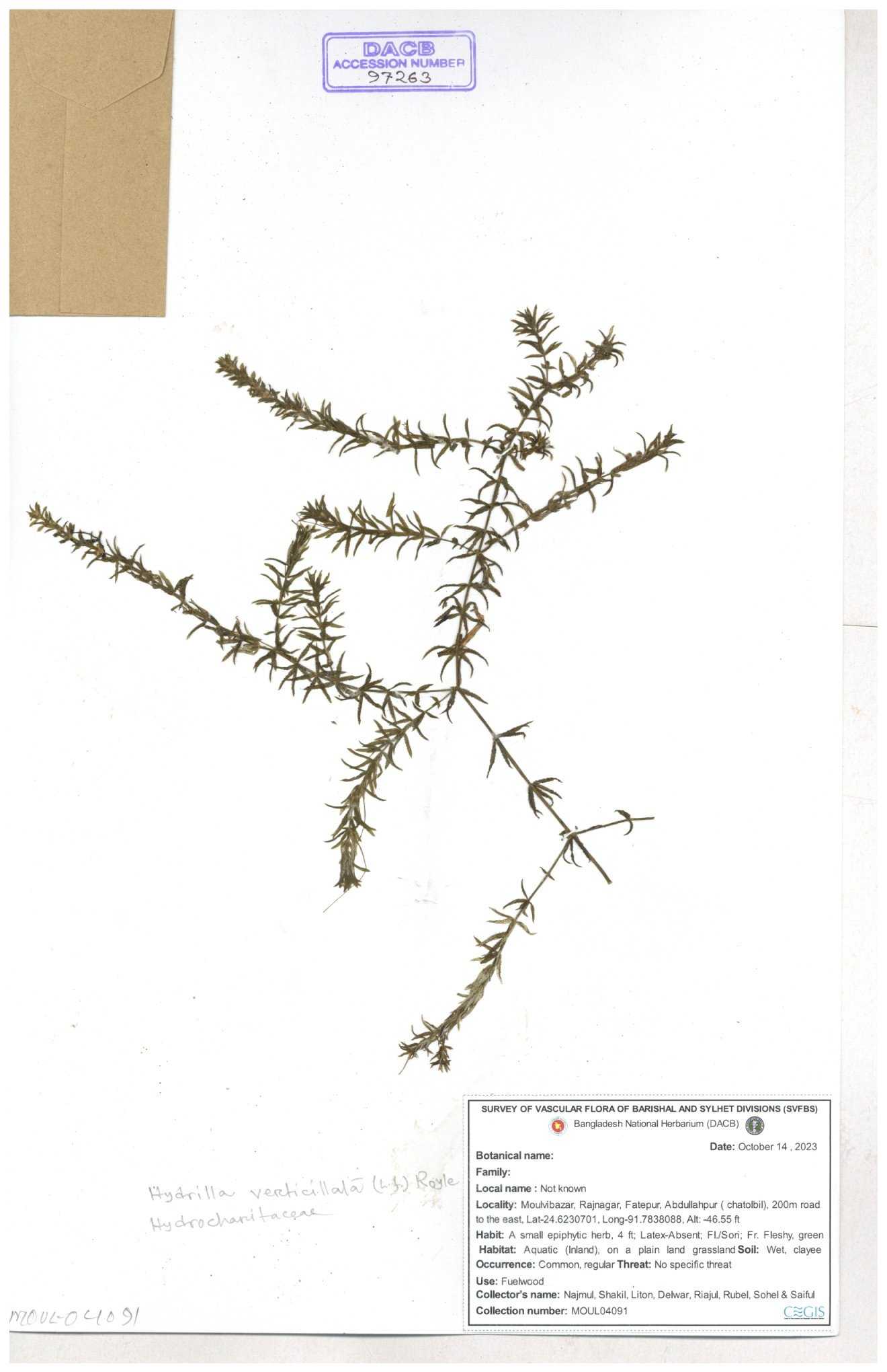 | 97263 | Hydrocharitaceae | Hydrilla verticillata | 30-11--0001 |