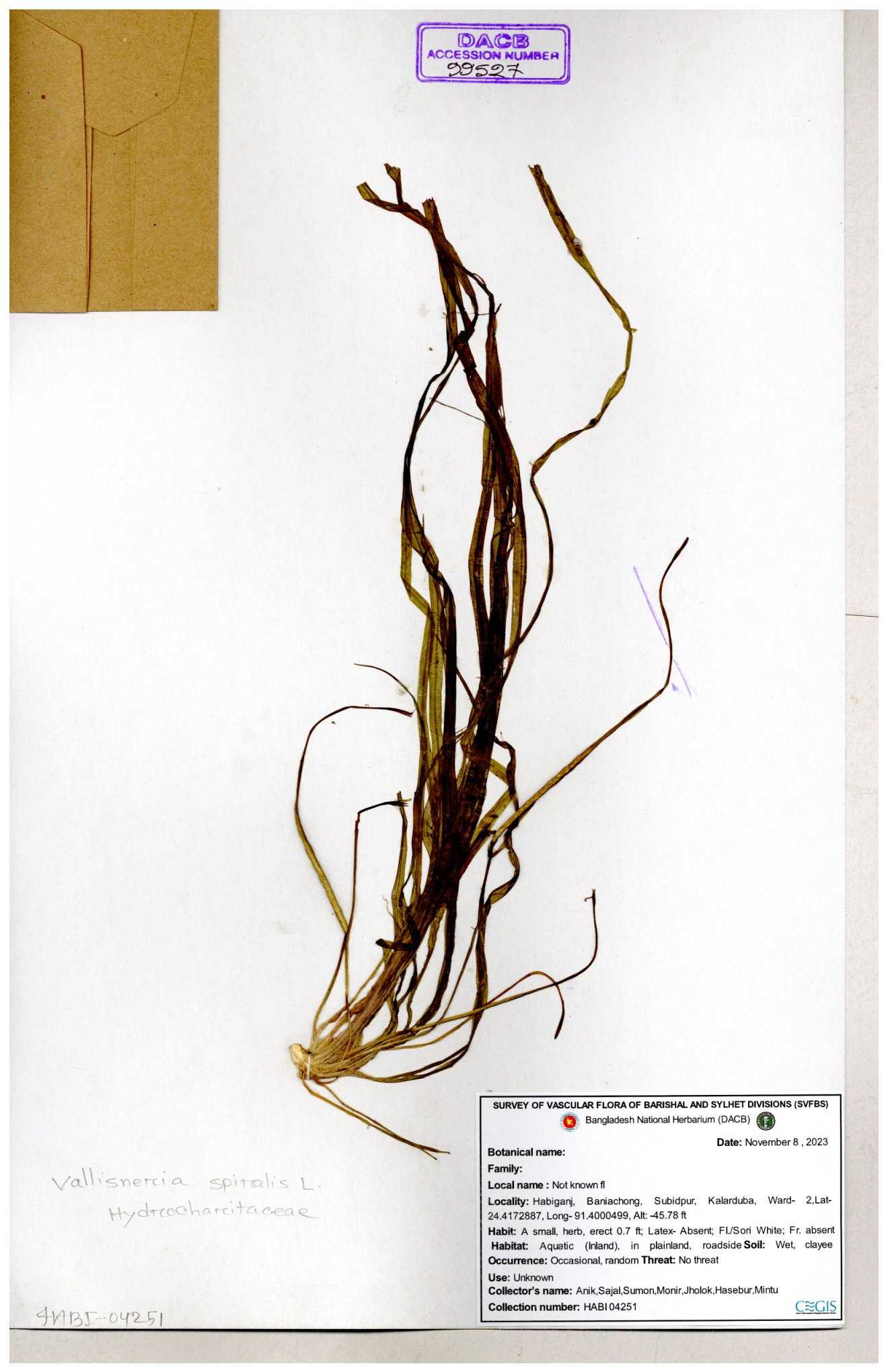 | 23934 | Hydrocharitaceae | Vallisneria spiralis | 30-11--0001 |