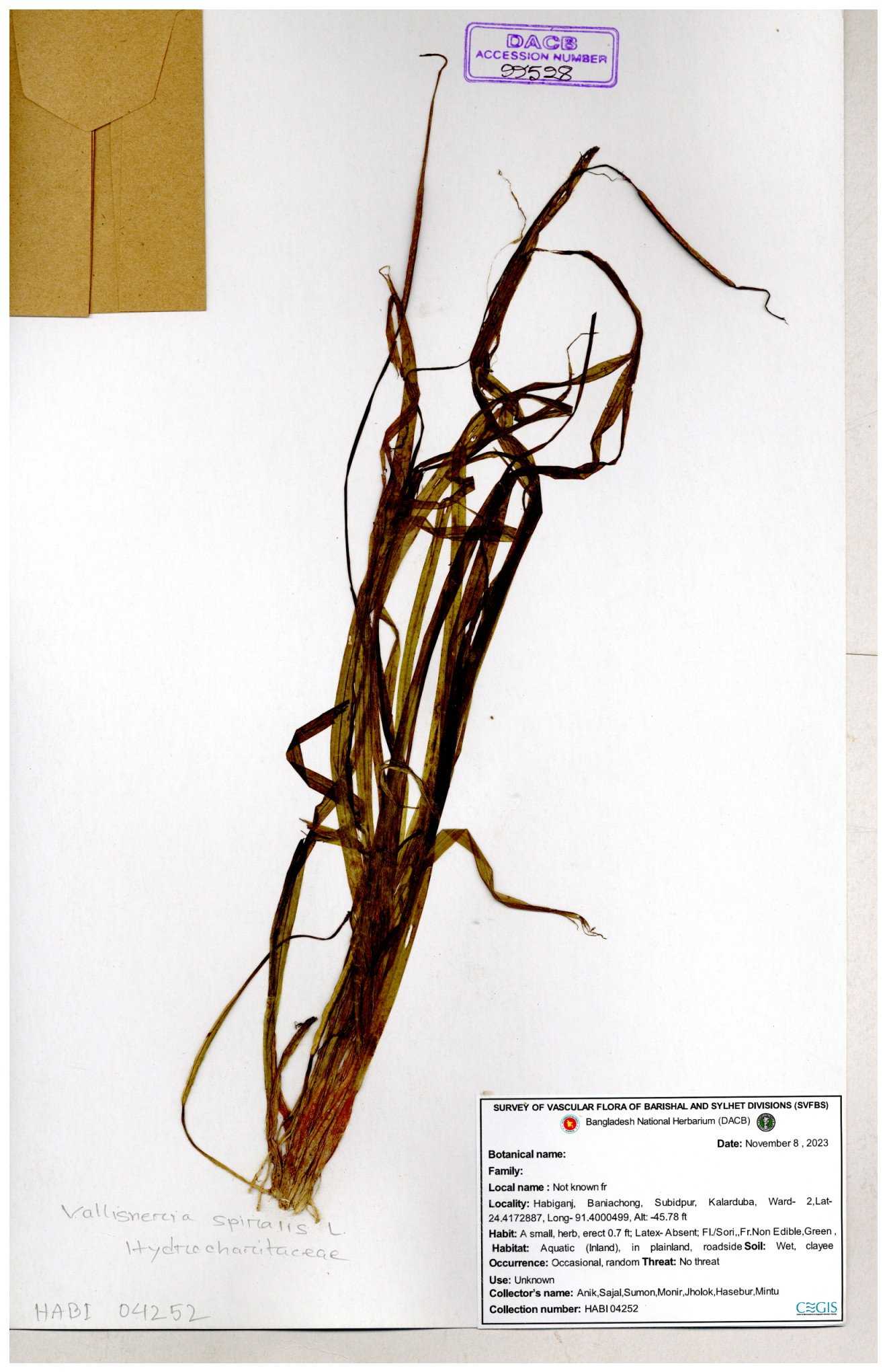 | 26392 | Hydrocharitaceae | Vallisneria spiralis | 30-11--0001 |