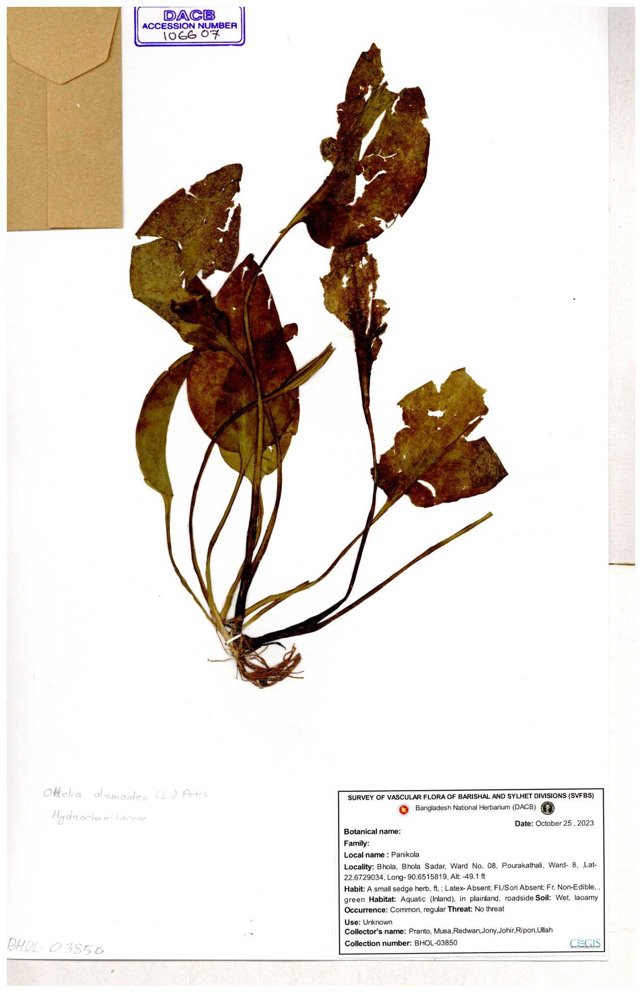 | 106607 | Hydrocharitaceae | Ottelia alismoides | 30-11--0001 |