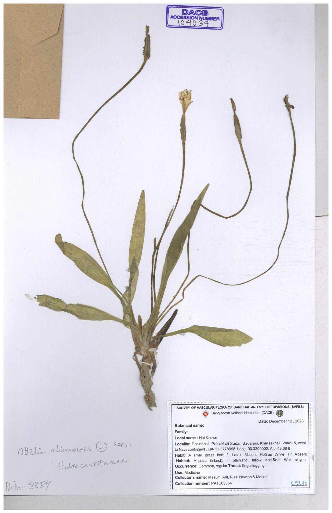 | 104034 | Hydrocharitaceae | Ottelia alismoides | 30-11--0001 |