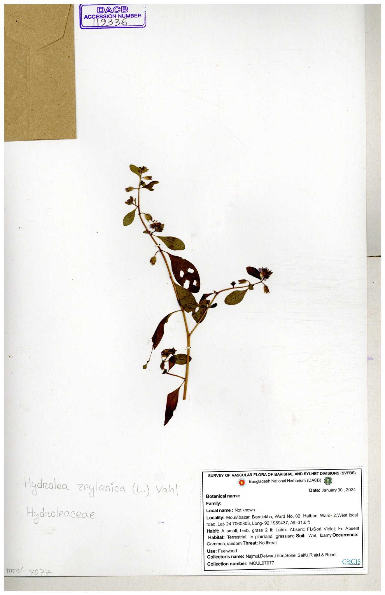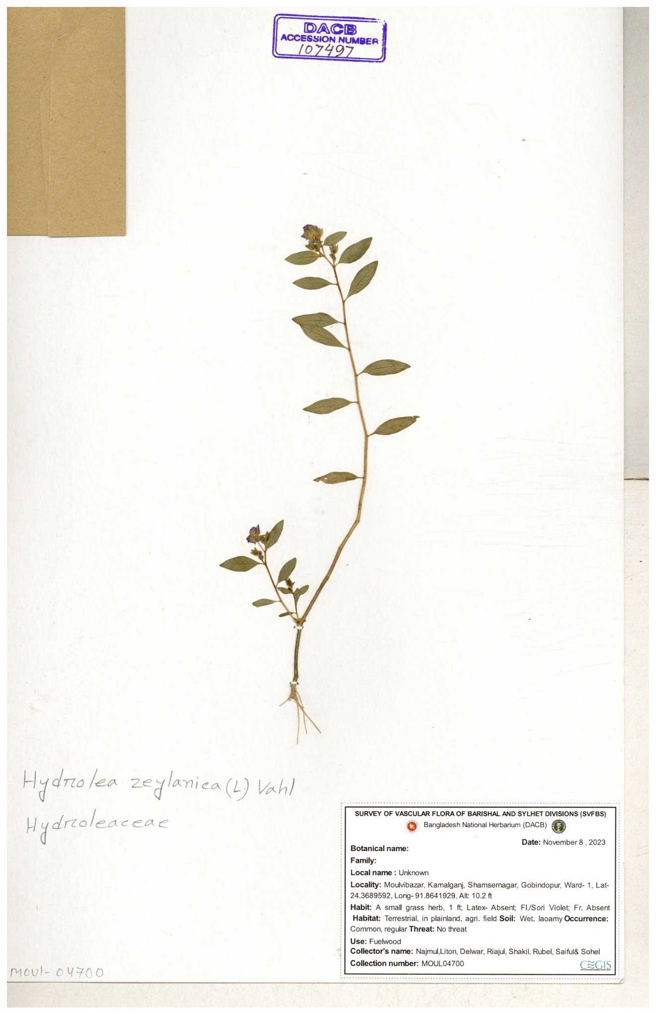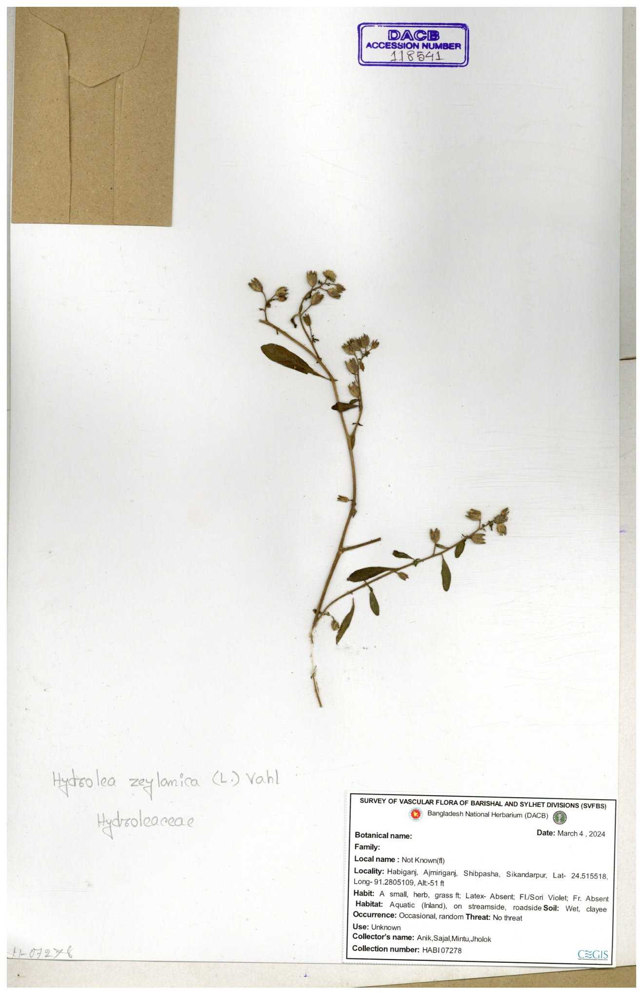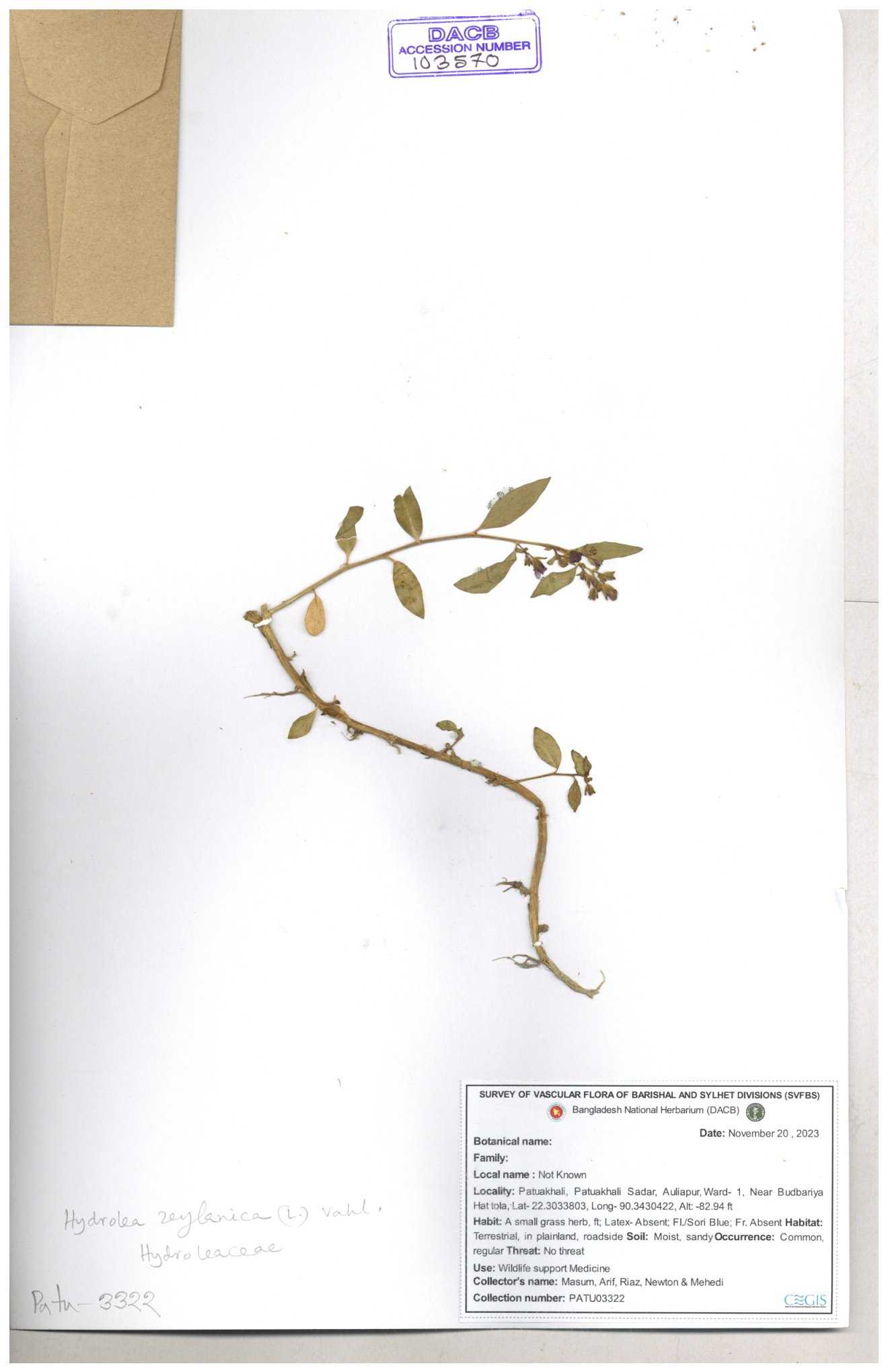 | 119336 | Hydroleaceae | Hydrolea zeylanica | 30-11--0001 |