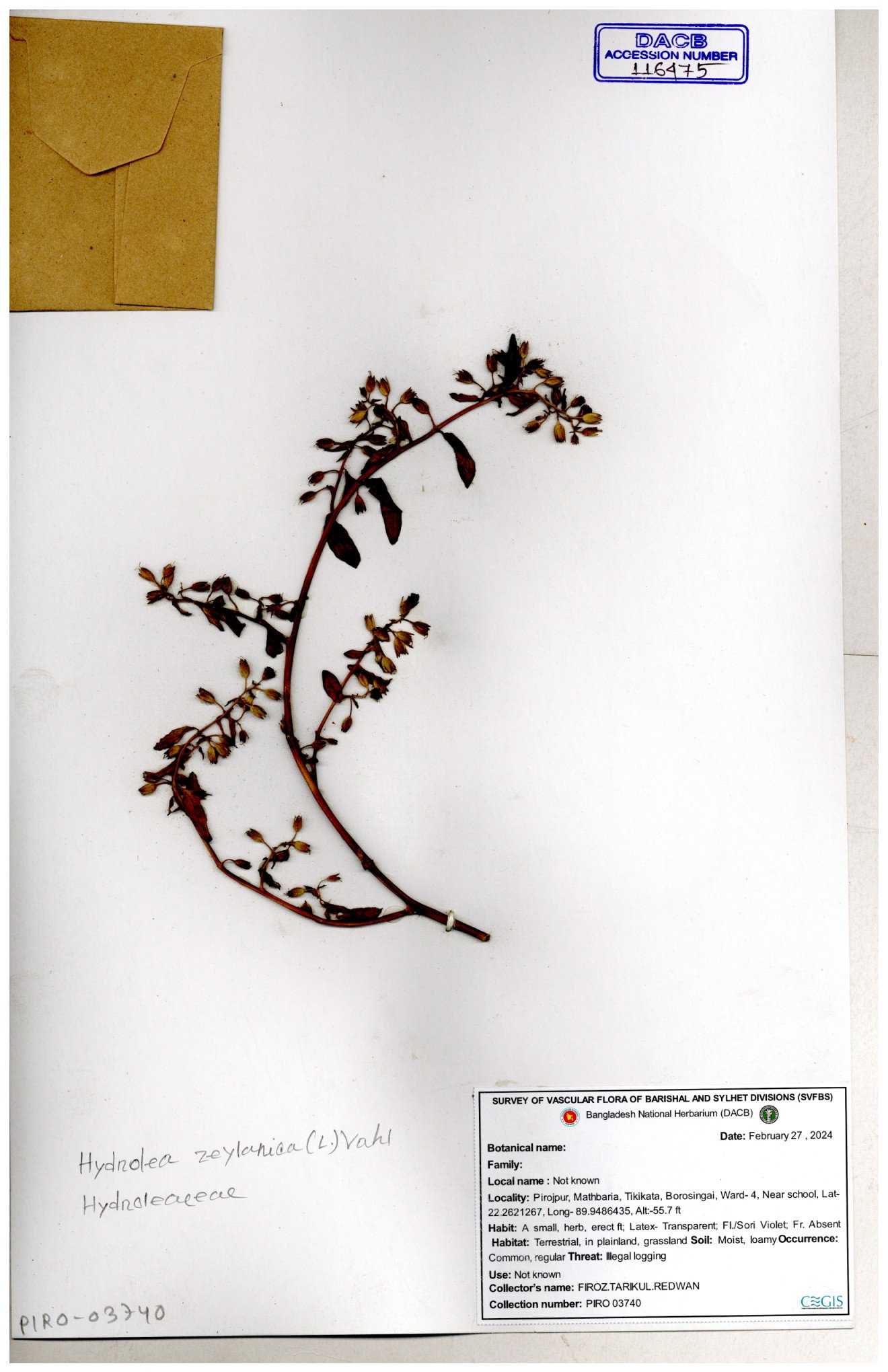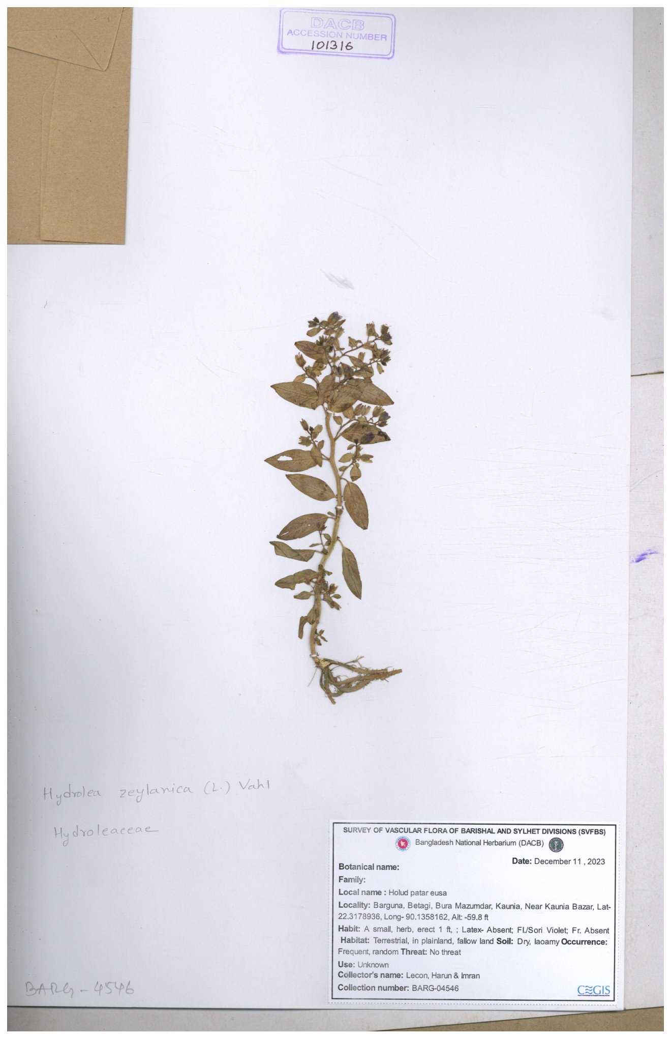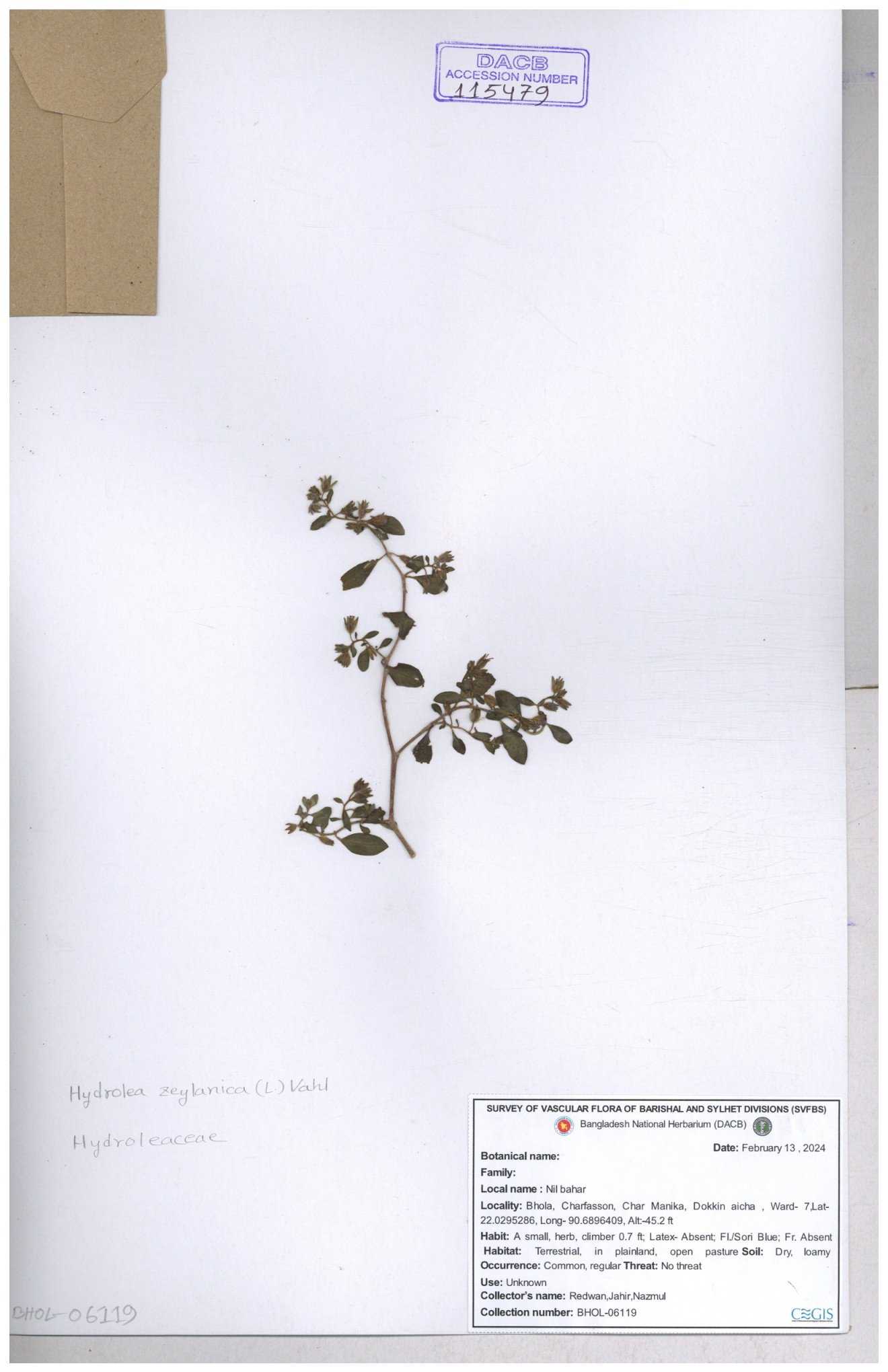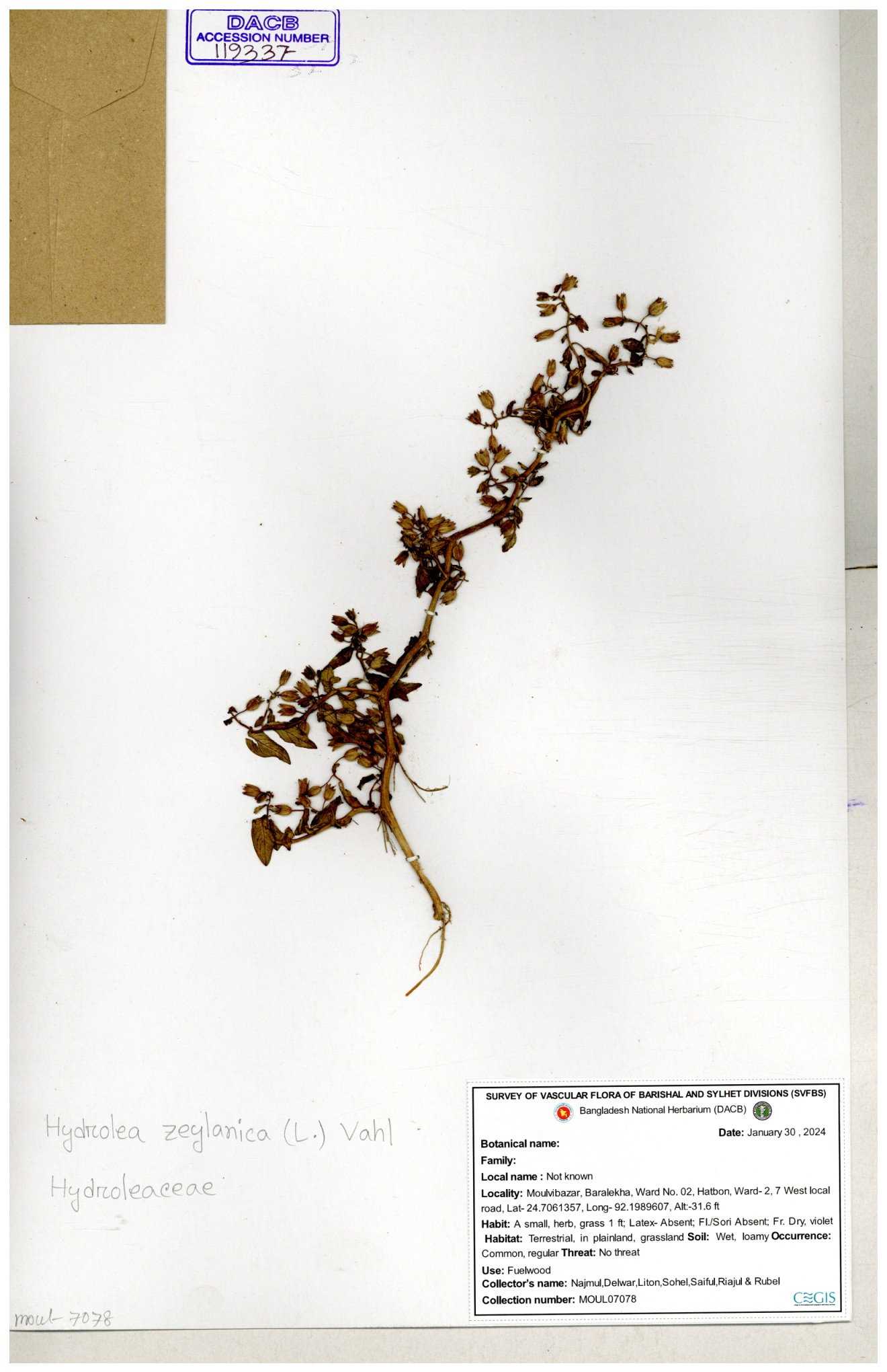 | 119336 | Hydroleaceae | Hydrolea zeylanica | 30-11--0001 |
