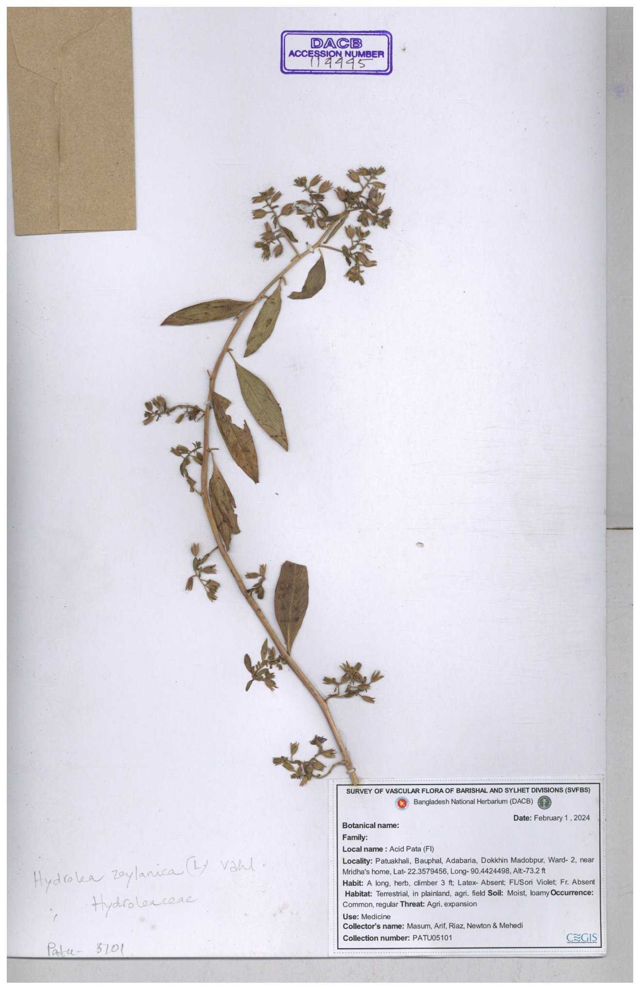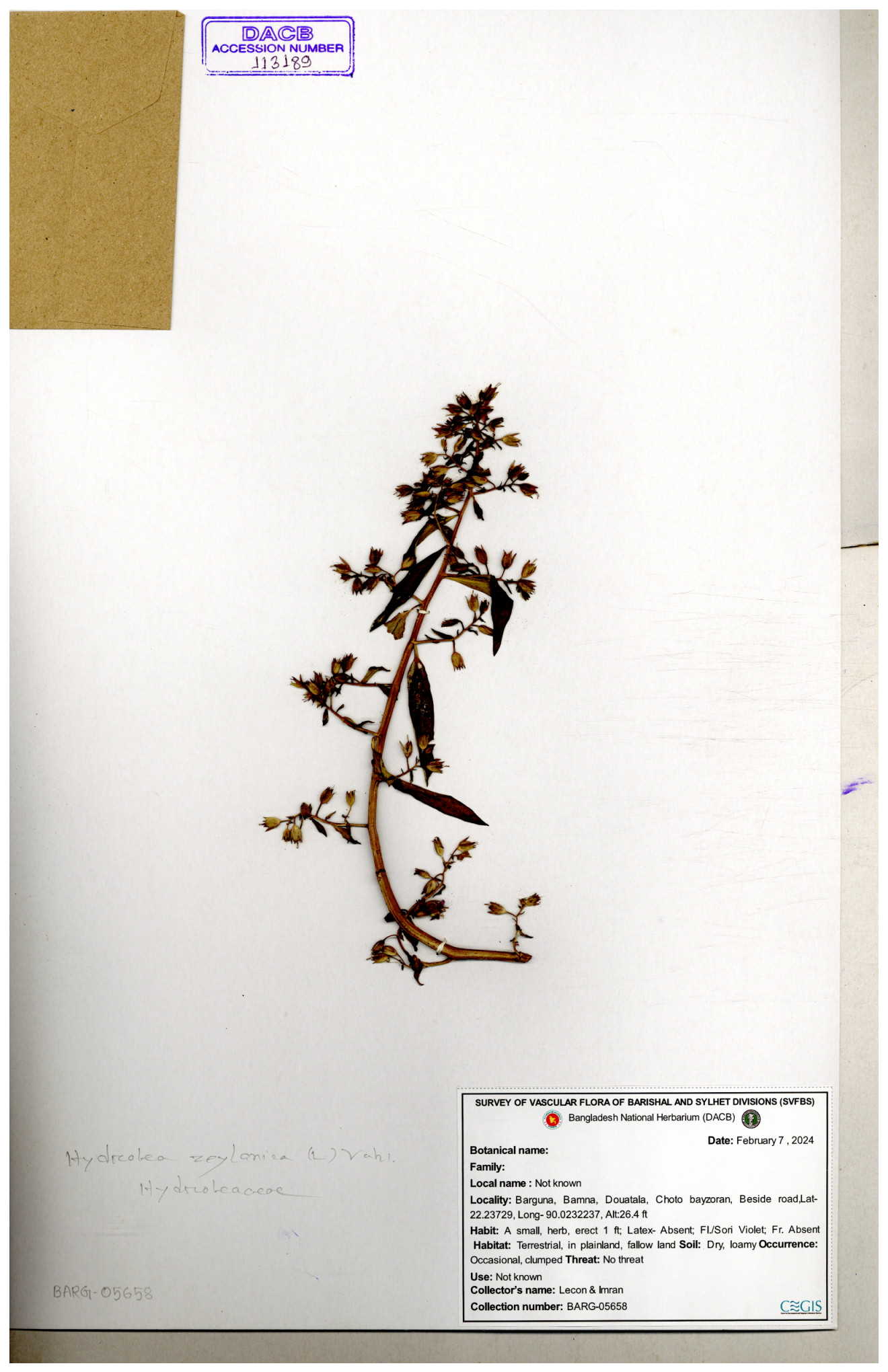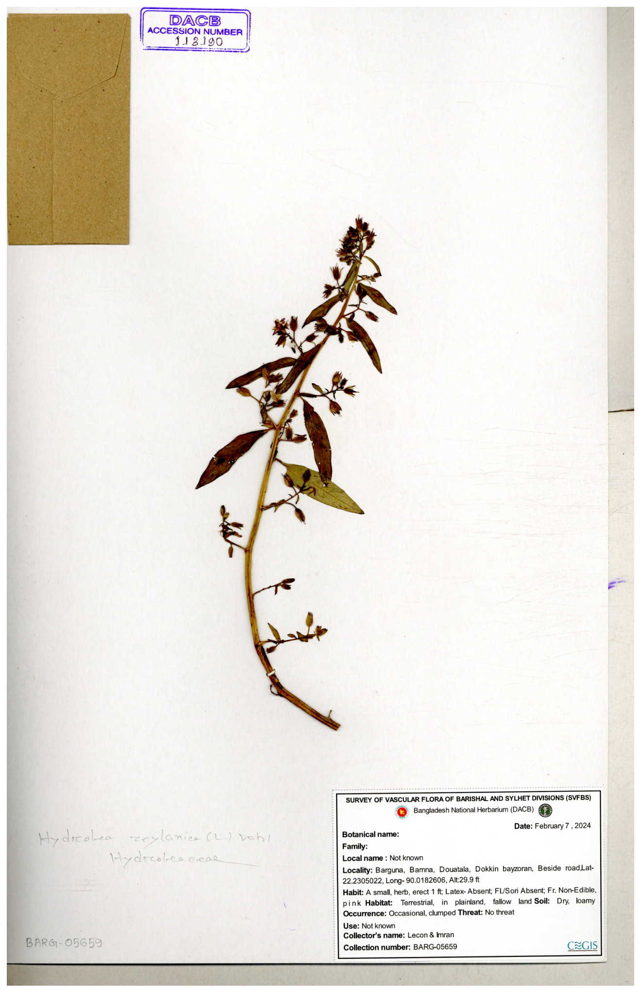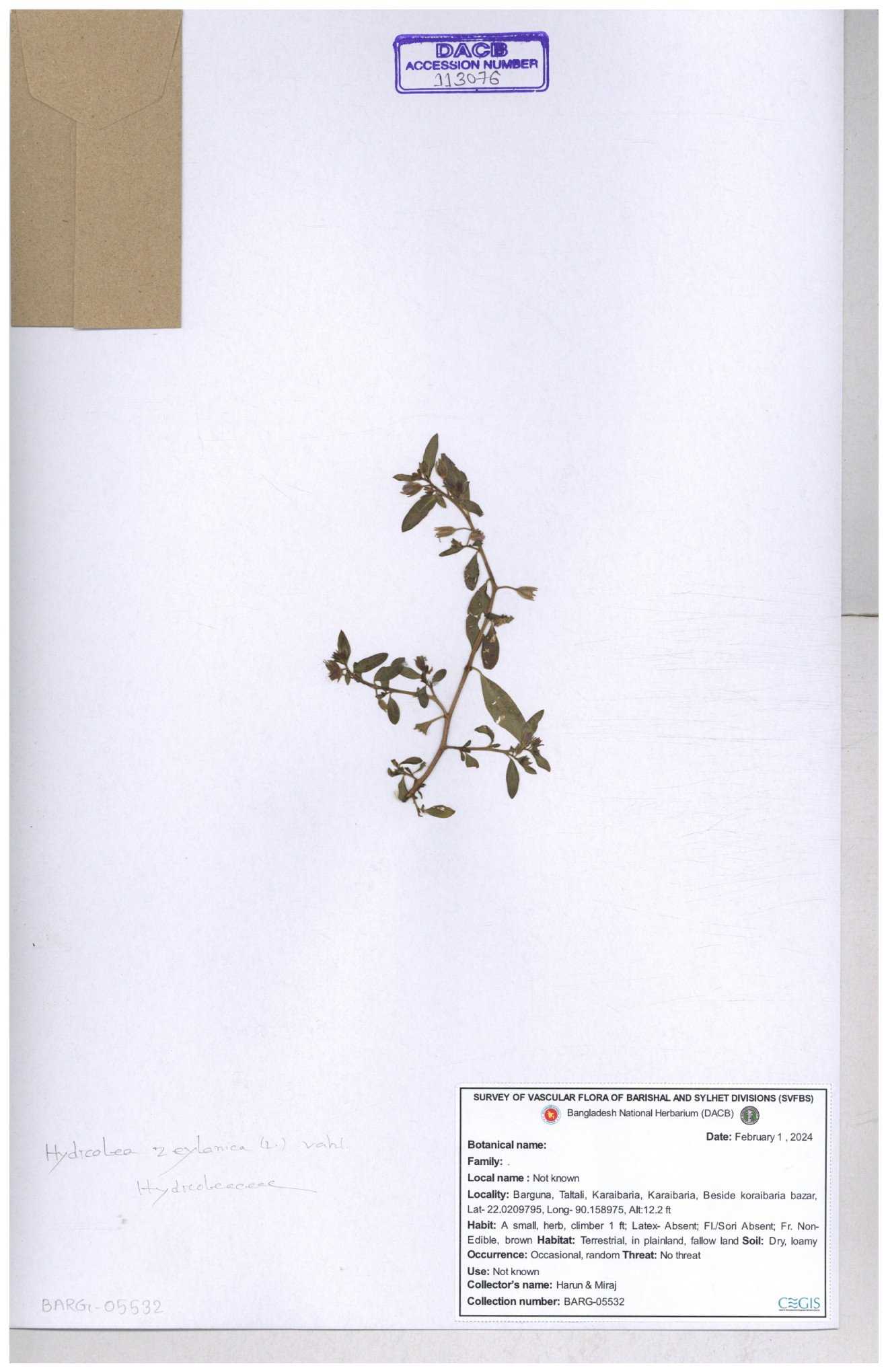 | 119336 | Hydroleaceae | Hydrolea zeylanica | 30-11--0001 |