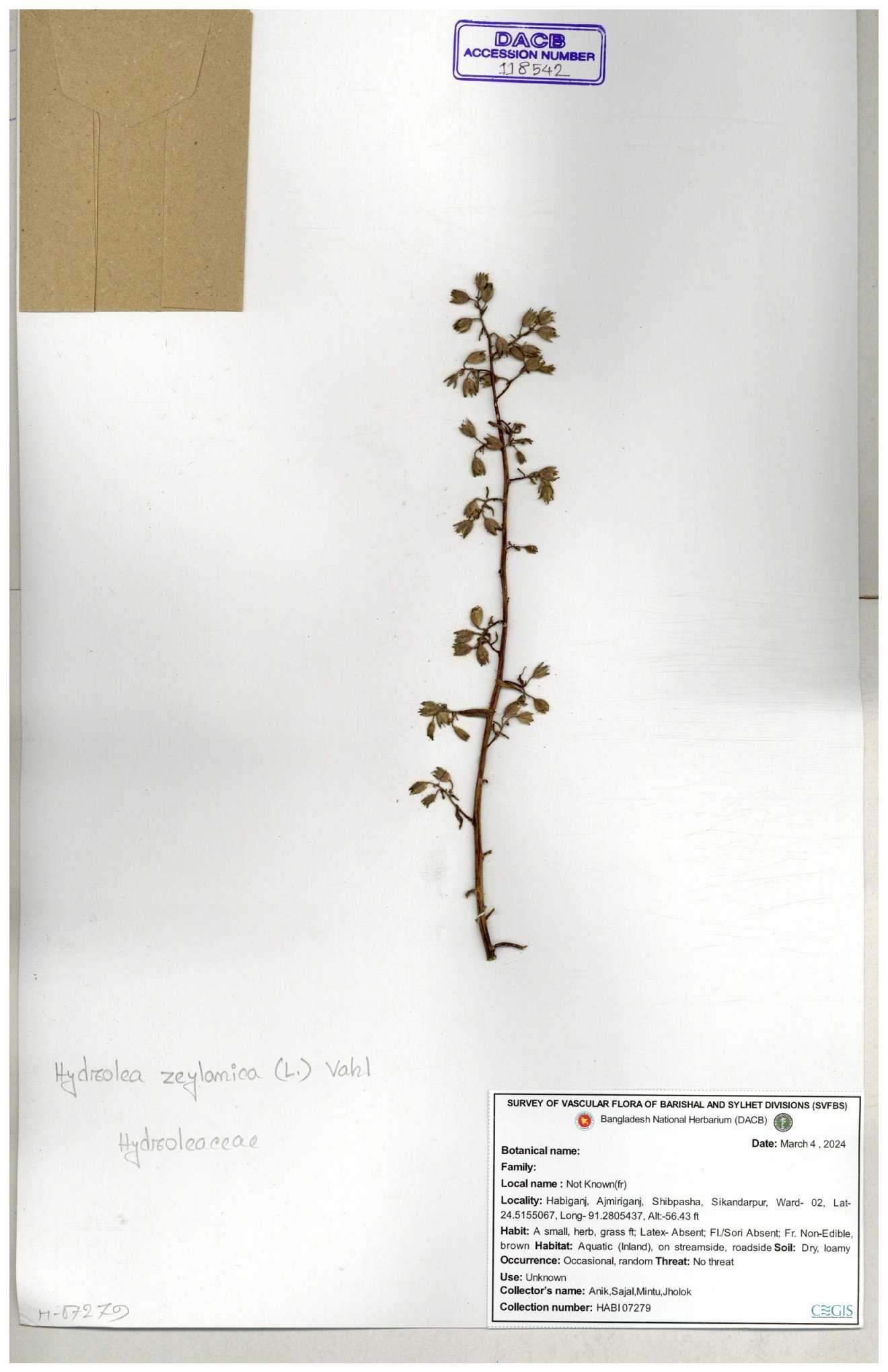 | 118542 | Hydroleaceae | Hydrolea zeylamica | 30-11--0001 |