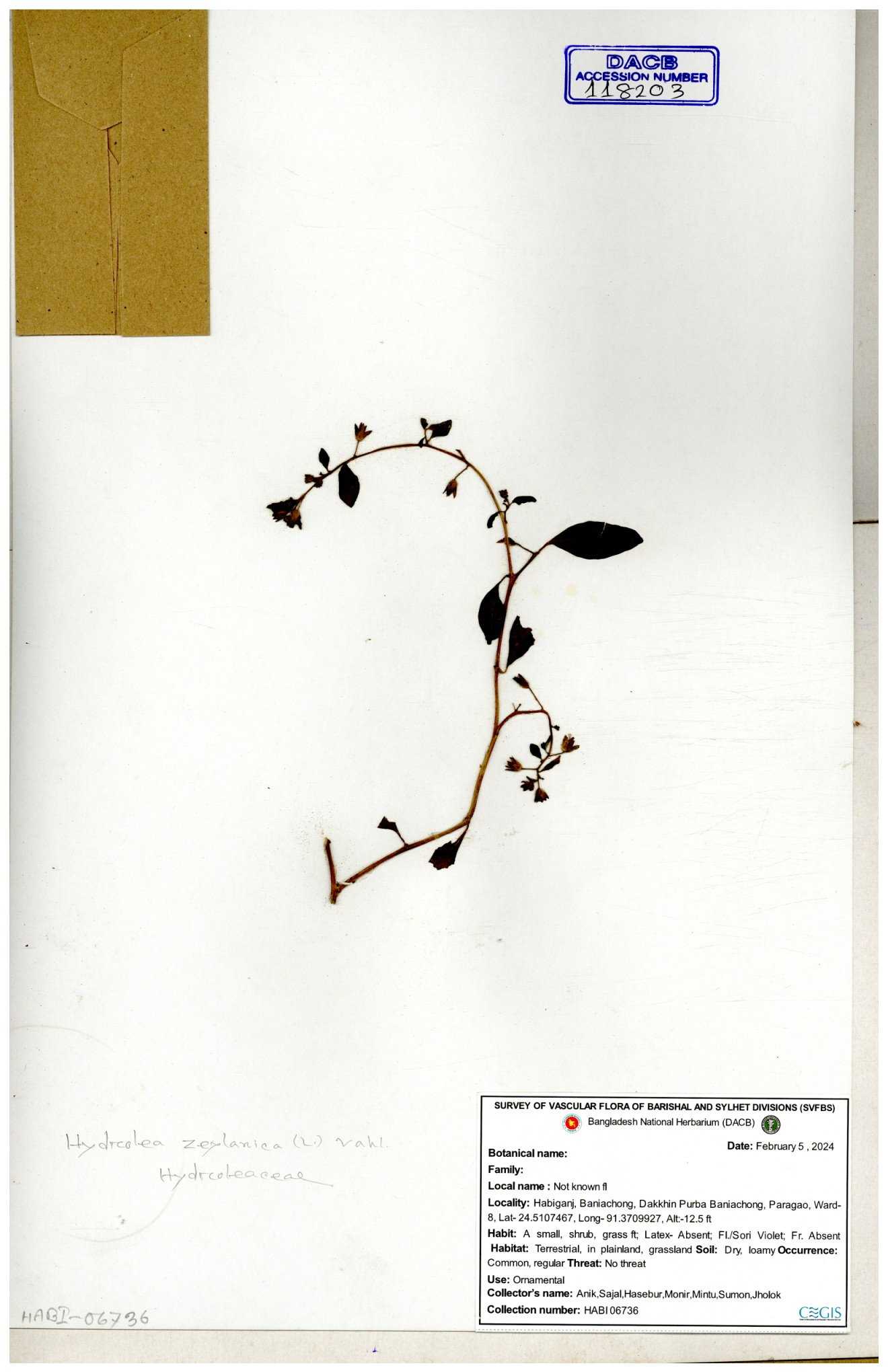 | 118203 | Hydroleaceae | Hydrolea zeylanica | 30-11--0001 |