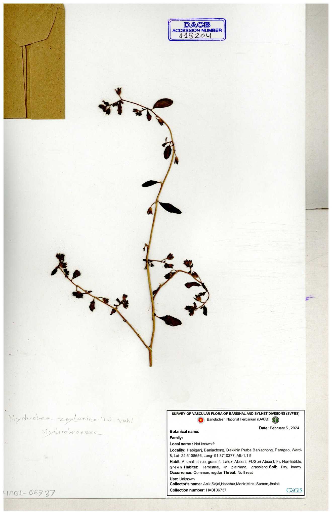 | 118204 | Hydroleaceae | Hydrolea zeylanica | 30-11--0001 |
