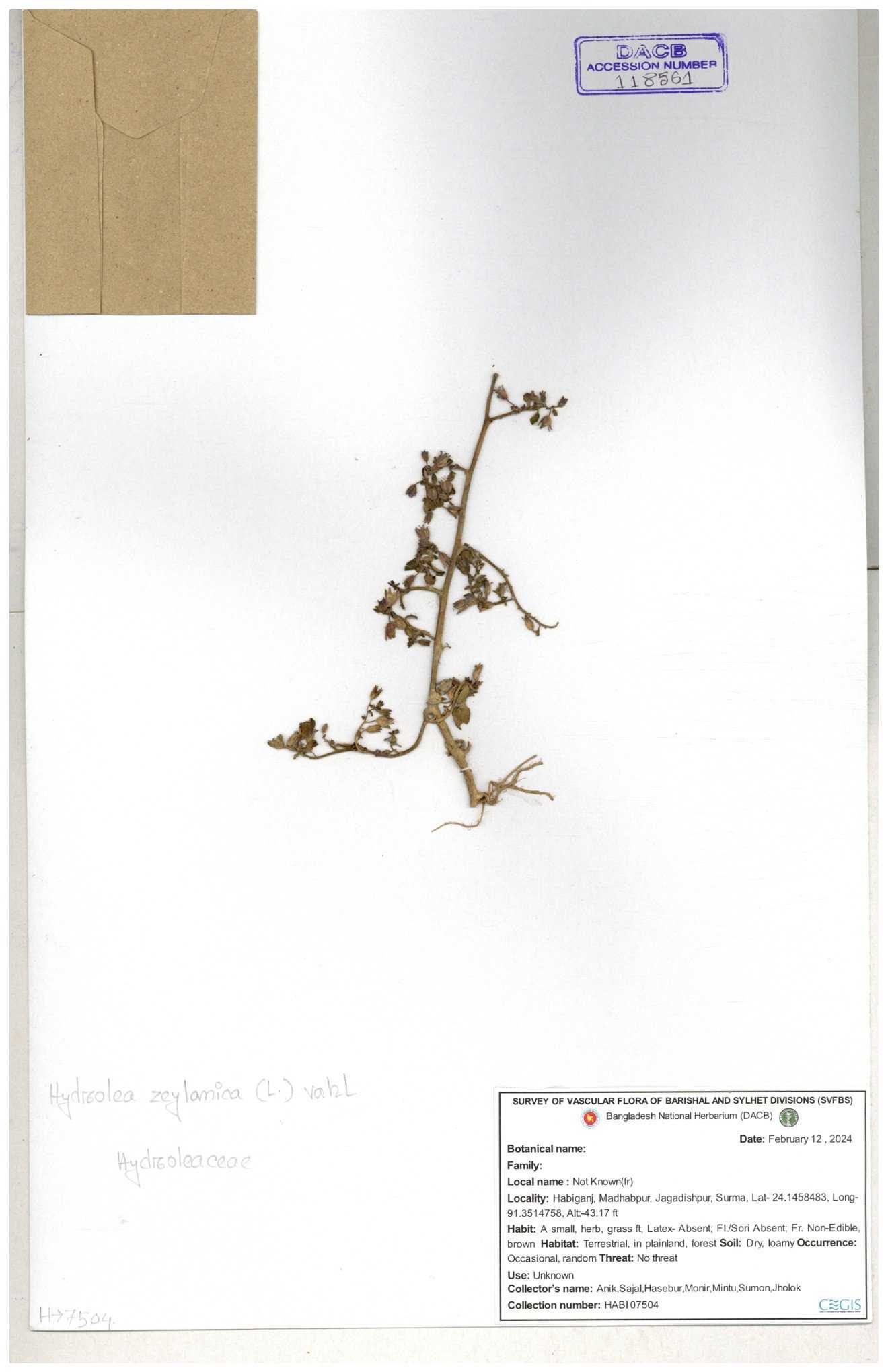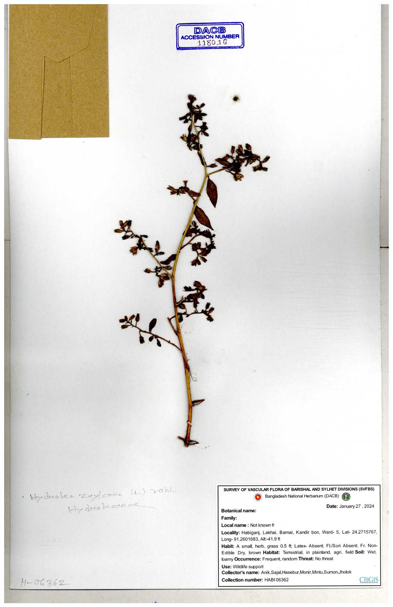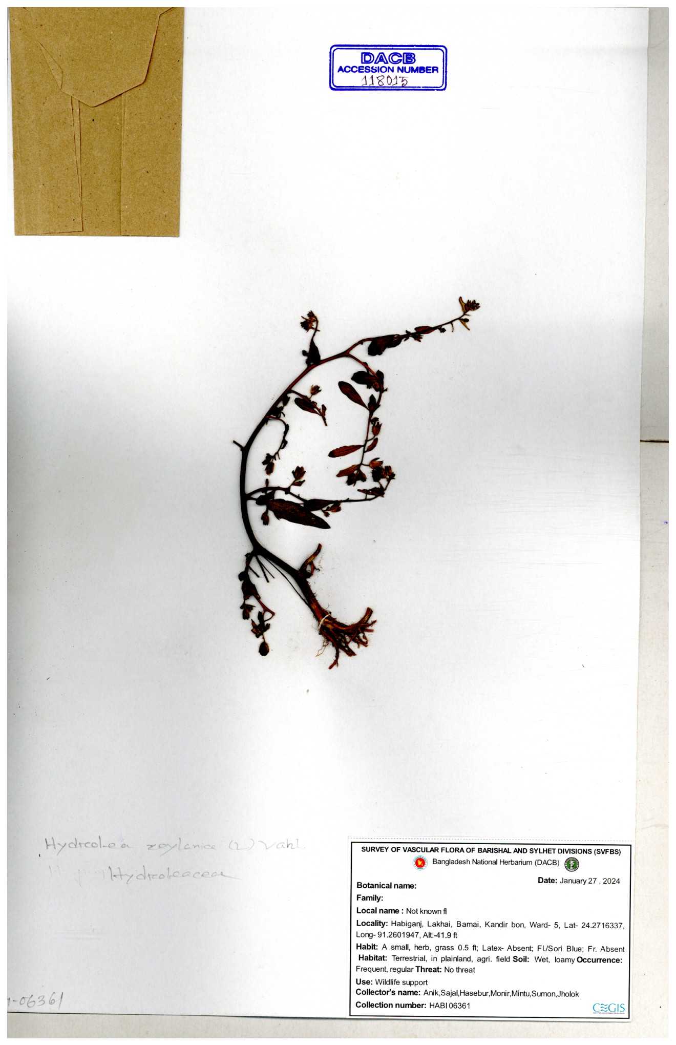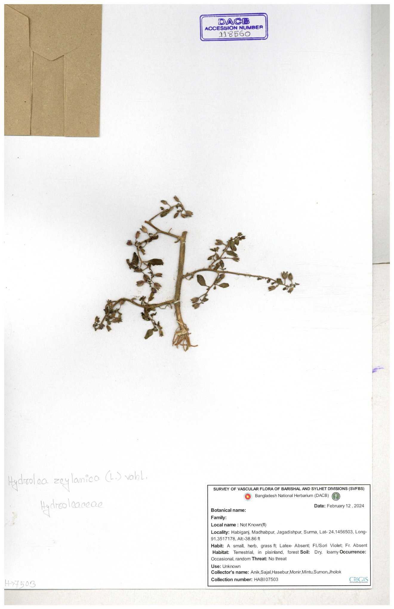 | 118560 | Hydroleaceae | Hydrolea zeylanica | 30-11--0001 |