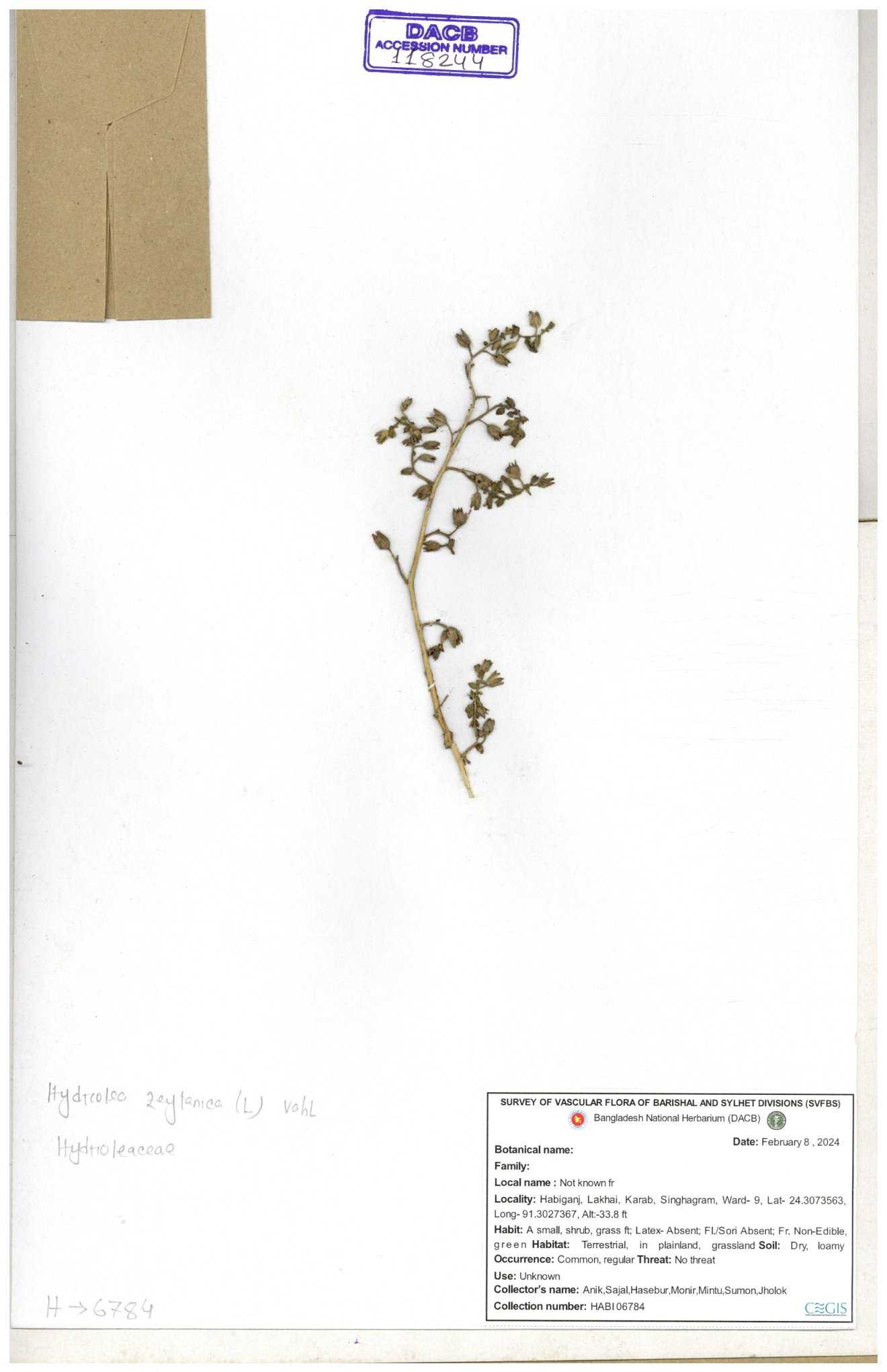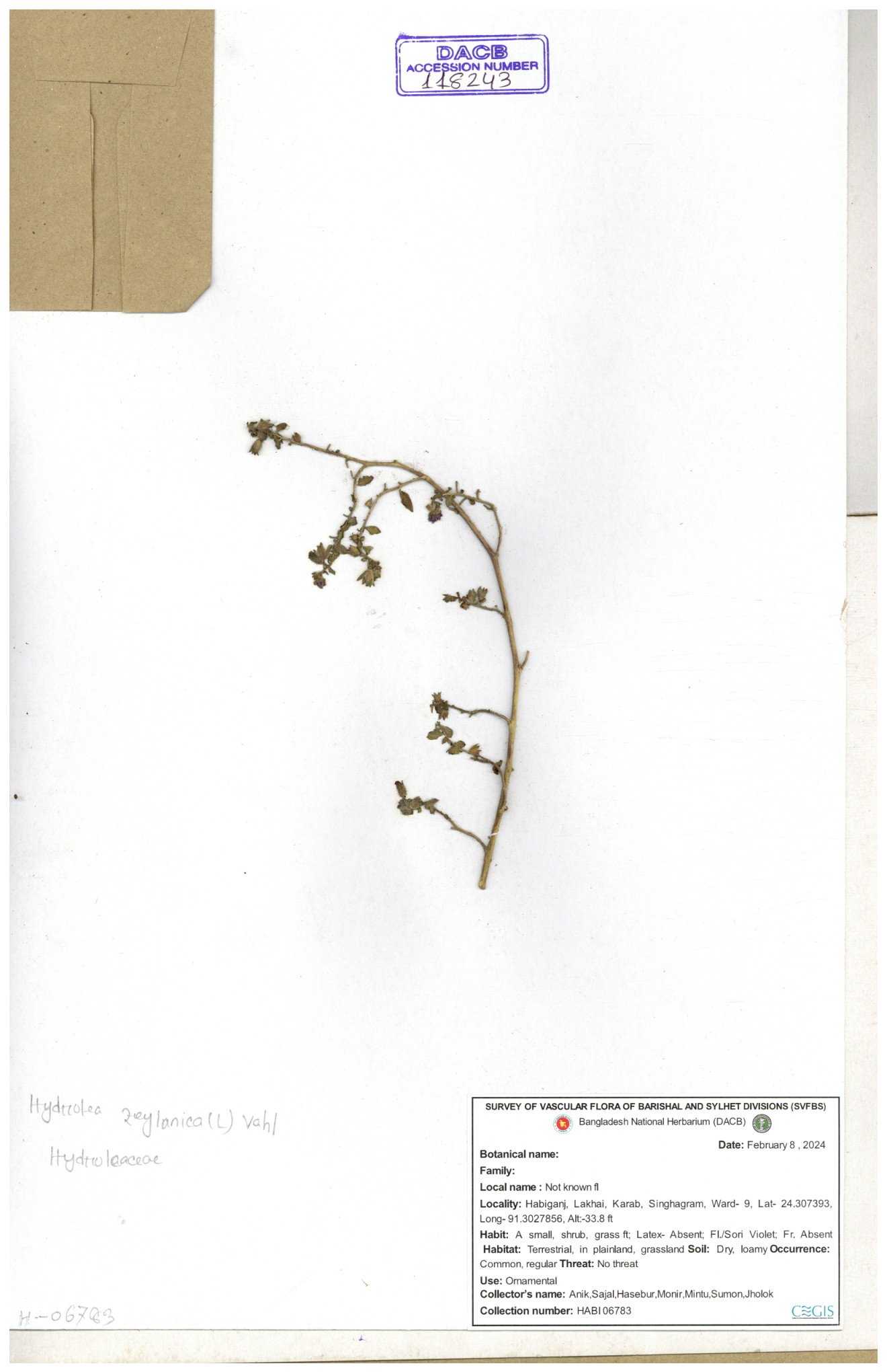 | 118243 | Hydroleaceae | Hydrolea zeylanica | 30-11--0001 |