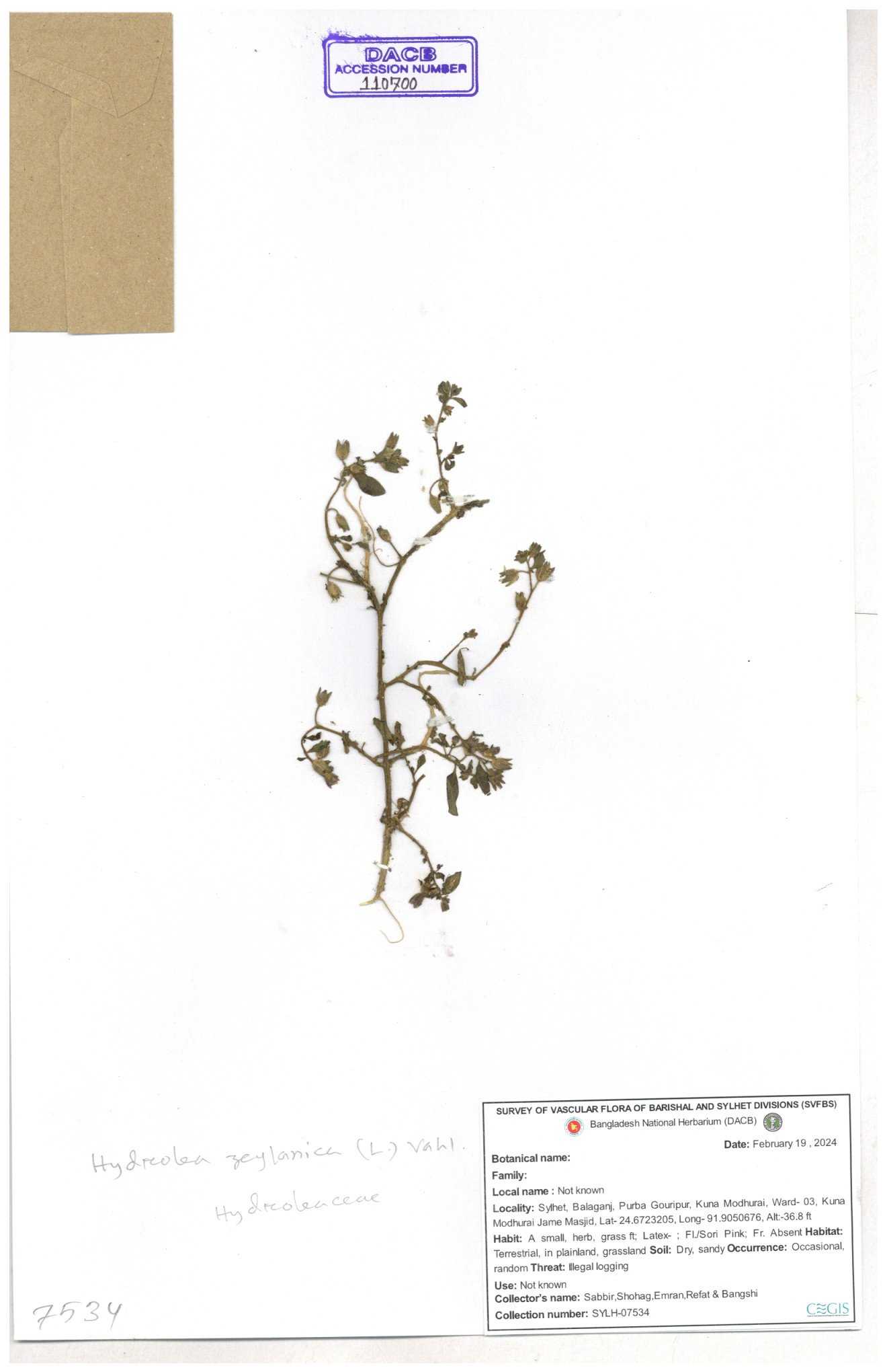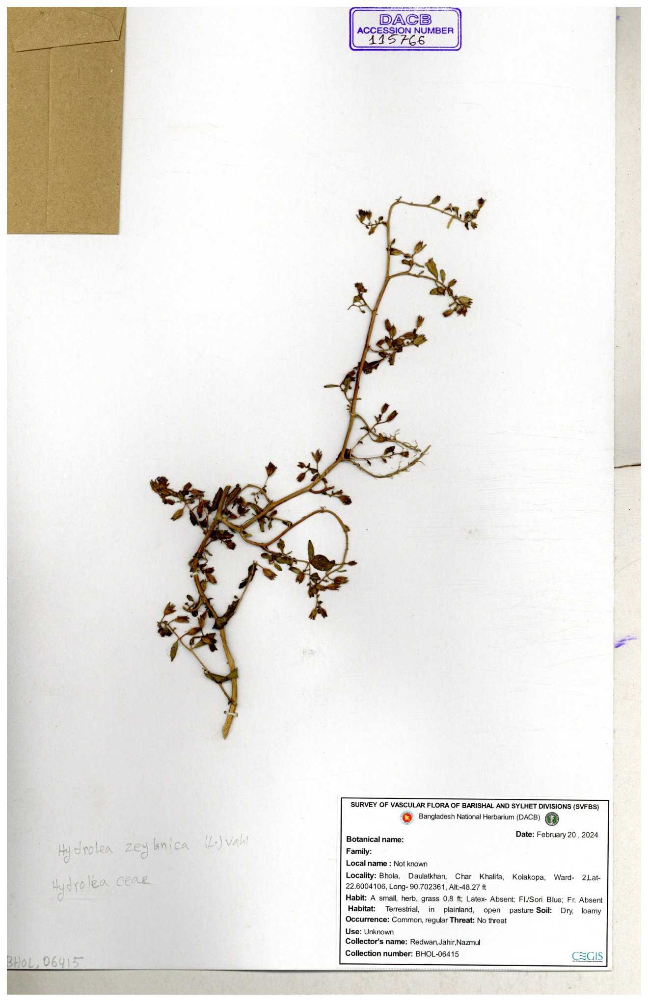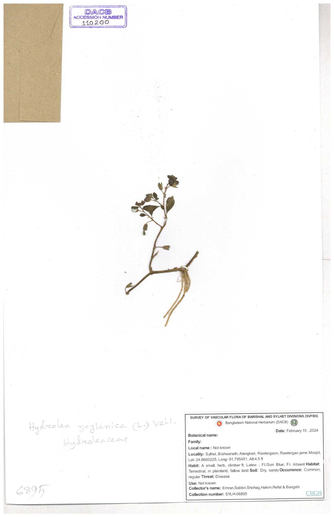 | 111584 | Hydroleaceae | Hydrolea zeylanica | 30-11--0001 |