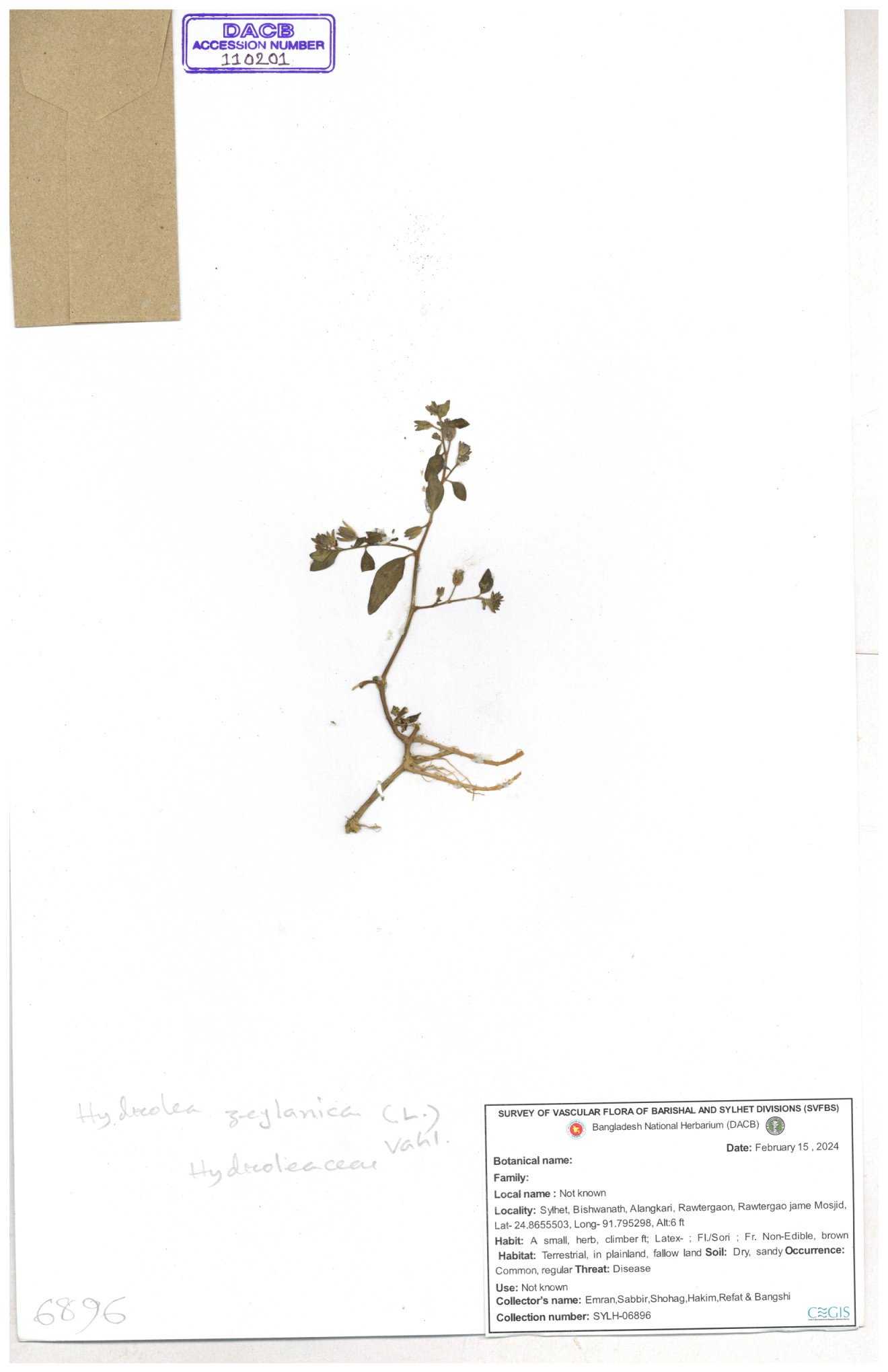 | 110200 | Hydroleaceae | Hydrolea zeylanica | 30-11--0001 |