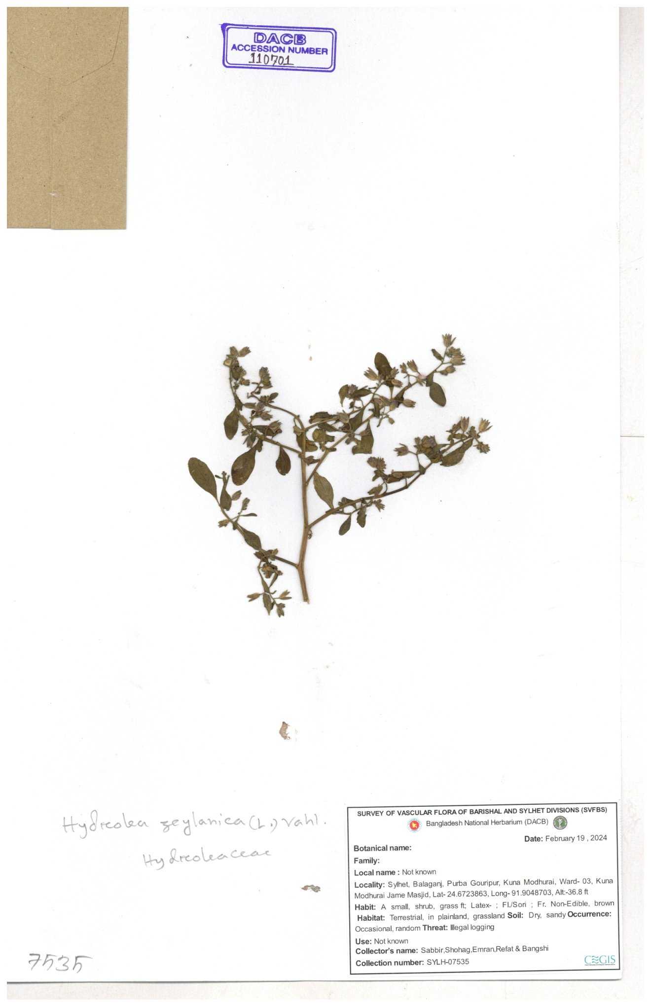 | 110701 | Hydroleaceae | Hydrolea zeylanica | 30-11--0001 |