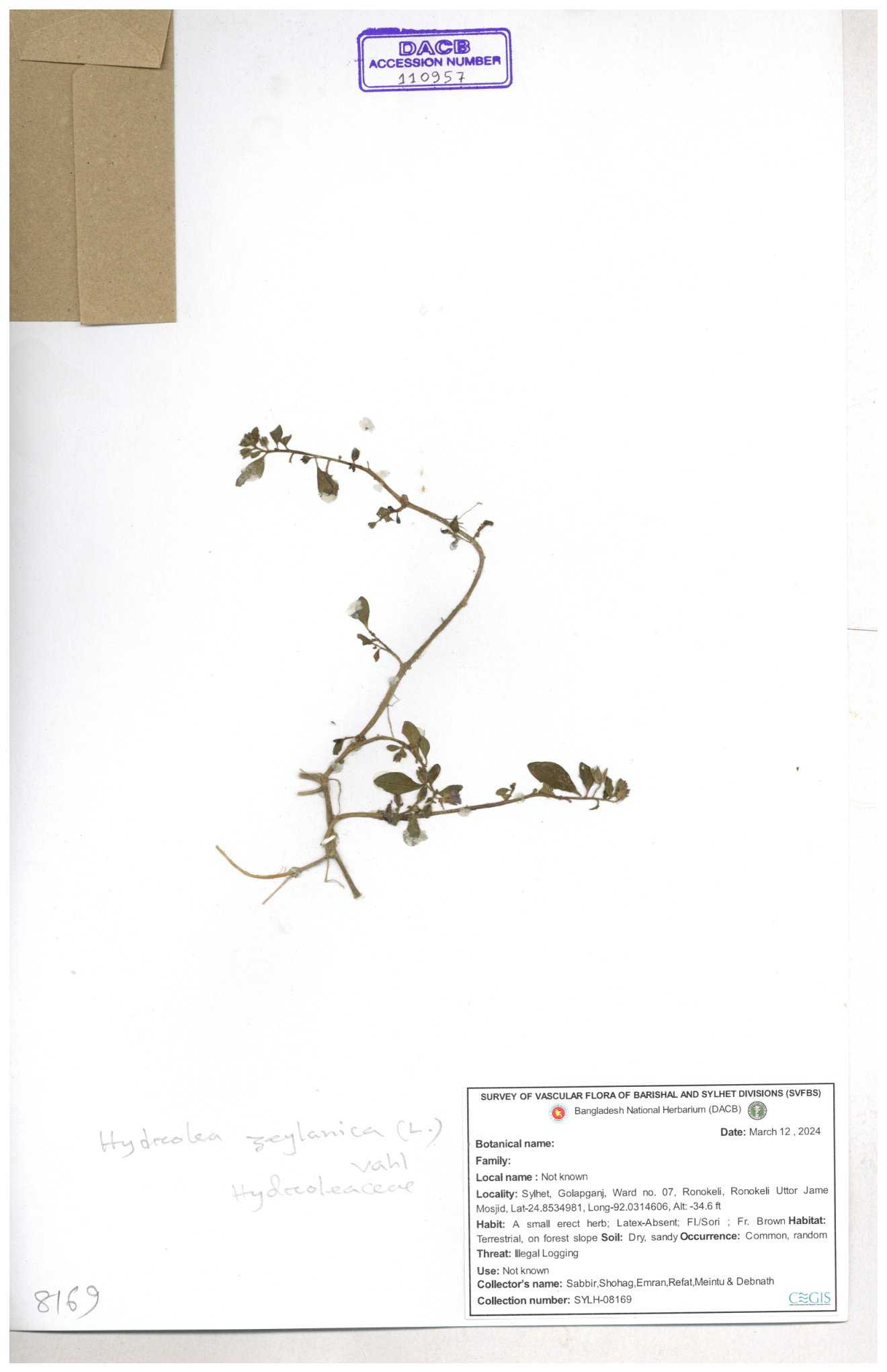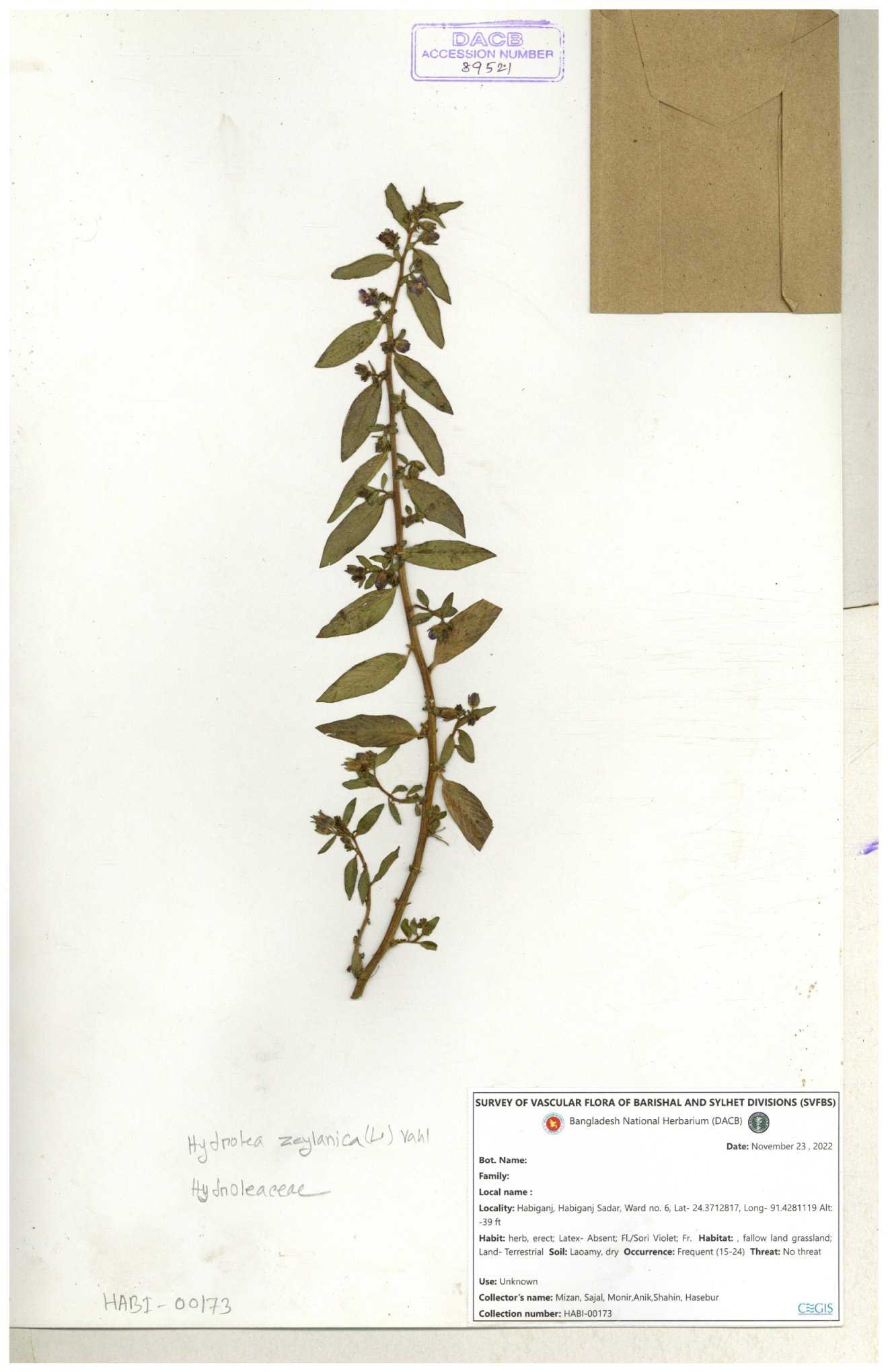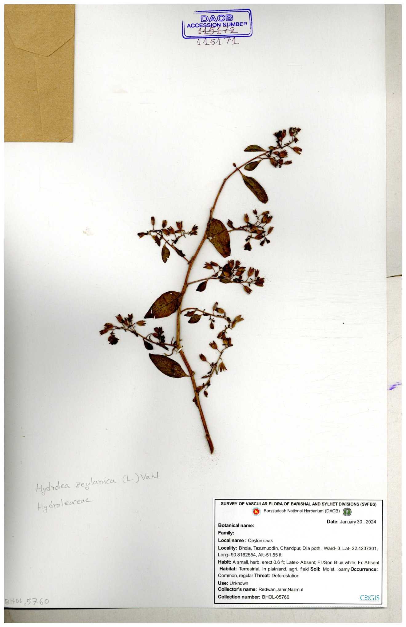 | 112969 | Hydroleaceae | Hydrolea zeylanica | 30-11--0001 |