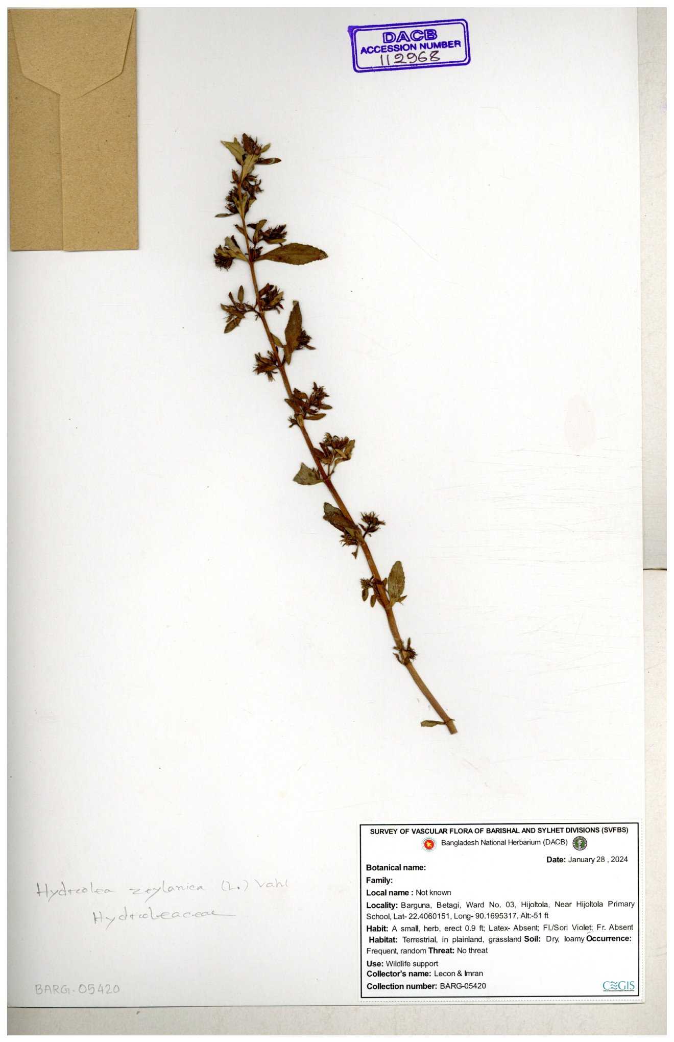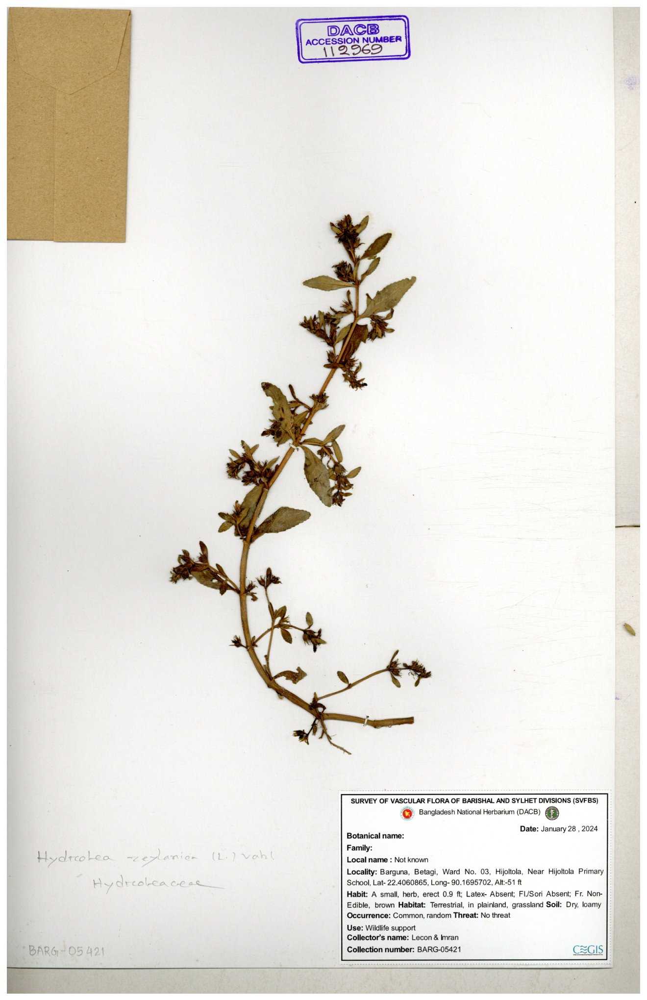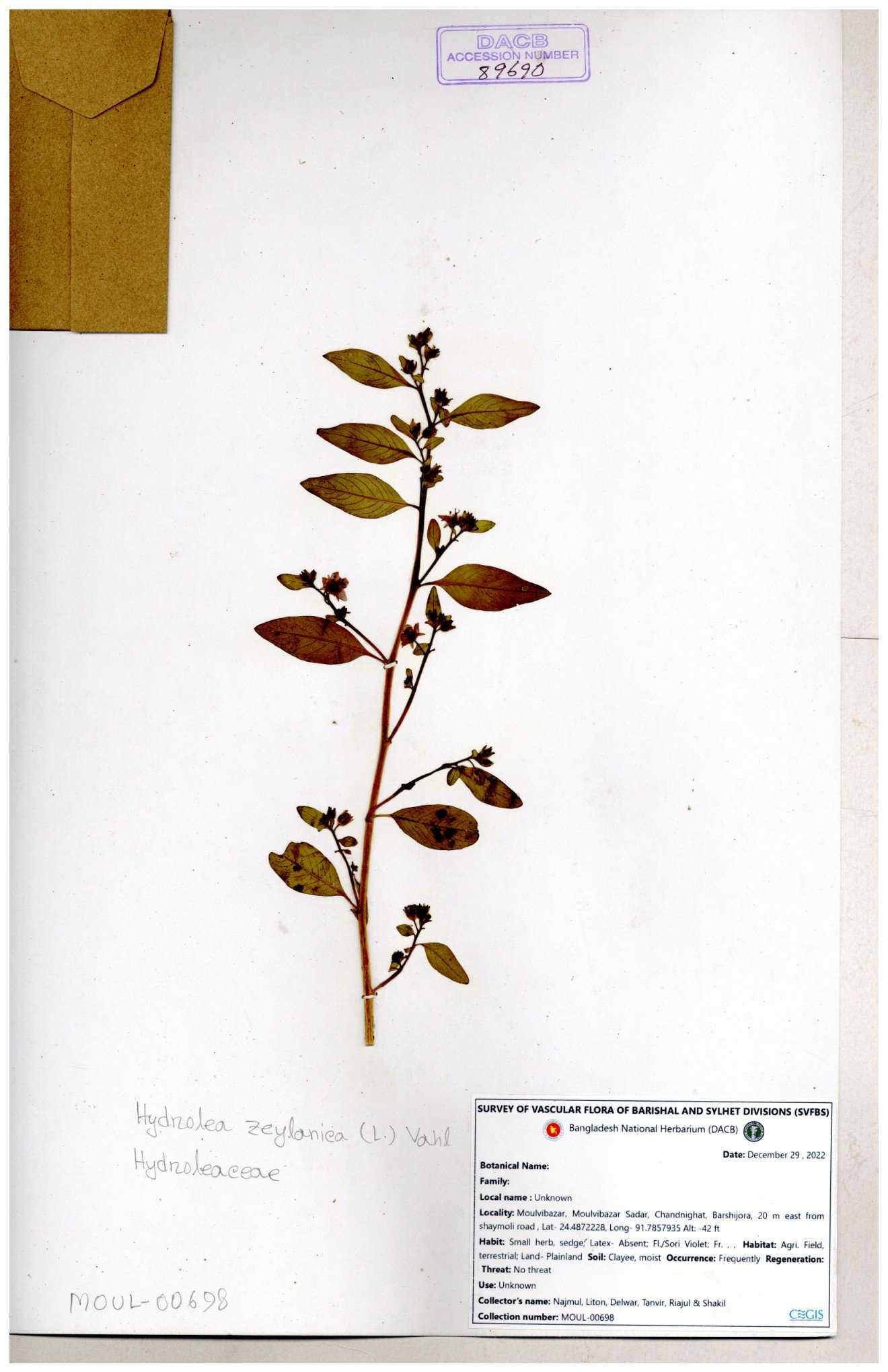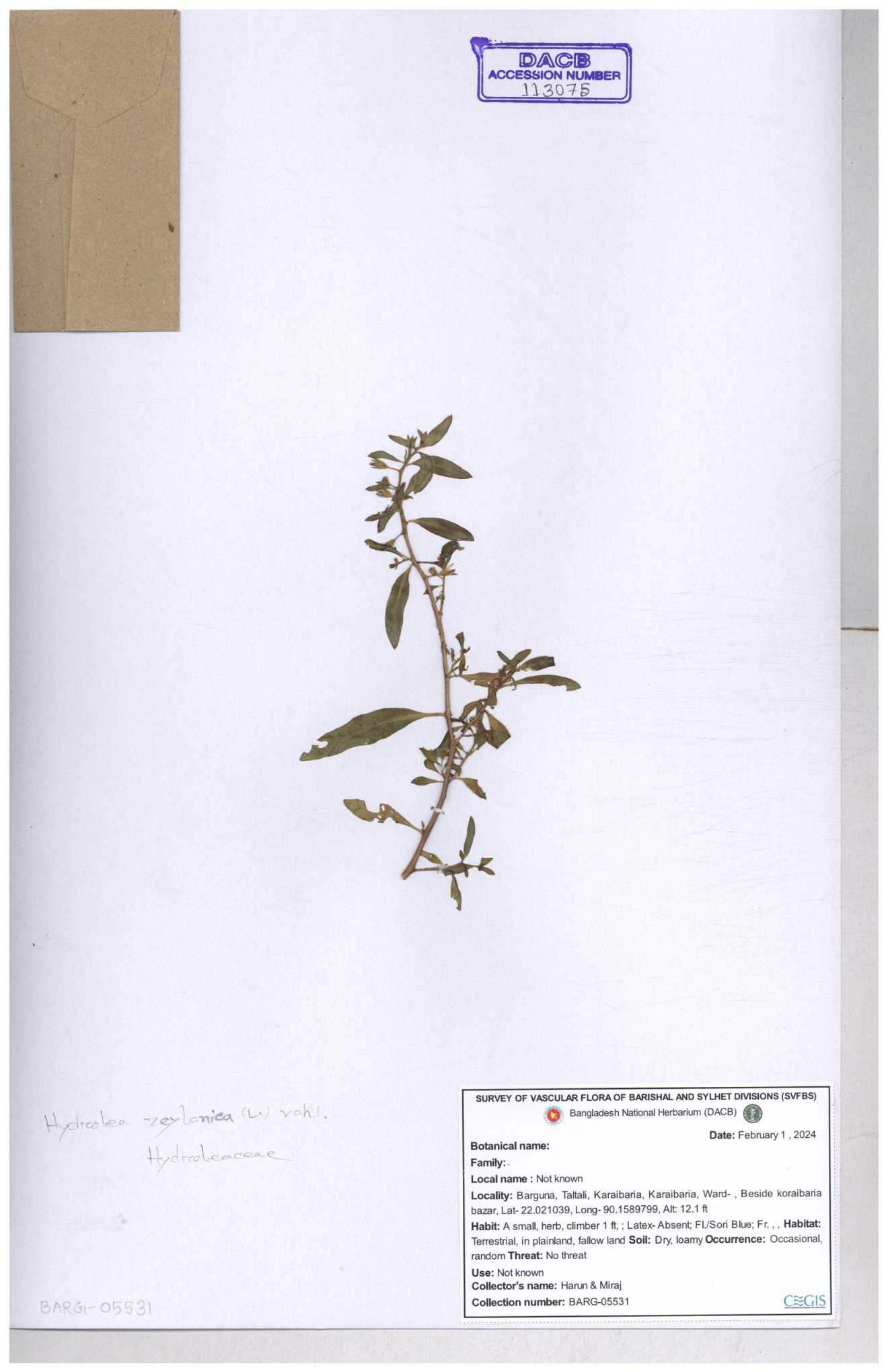 | 112969 | Hydroleaceae | Hydrolea zeylanica | 30-11--0001 |