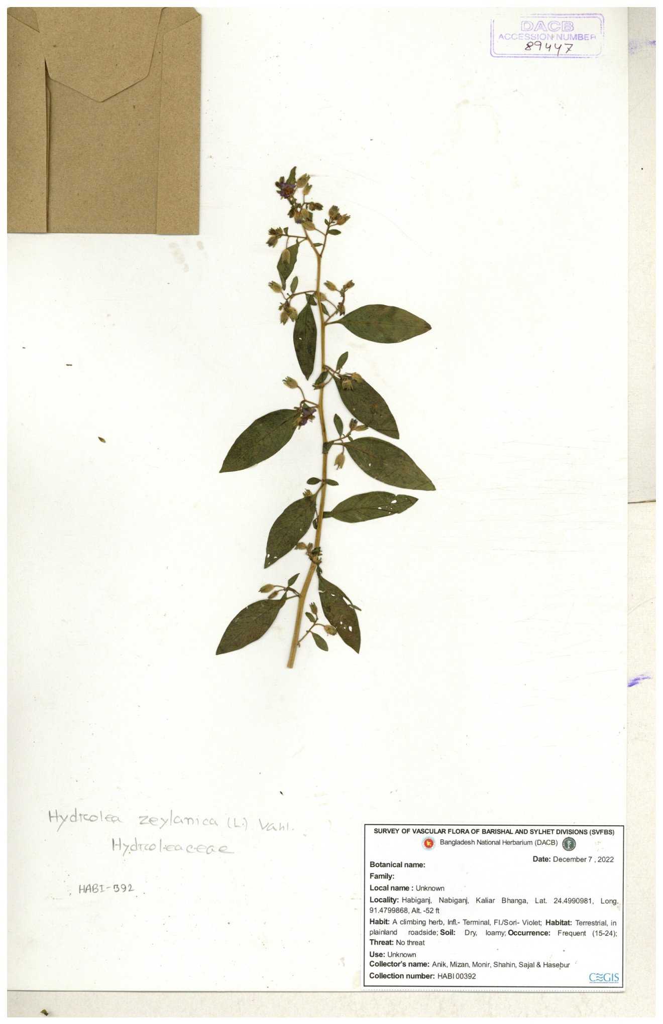 | 89447 | Hydroleaceae | Hydrolea zeylanica | 30-11--0001 |