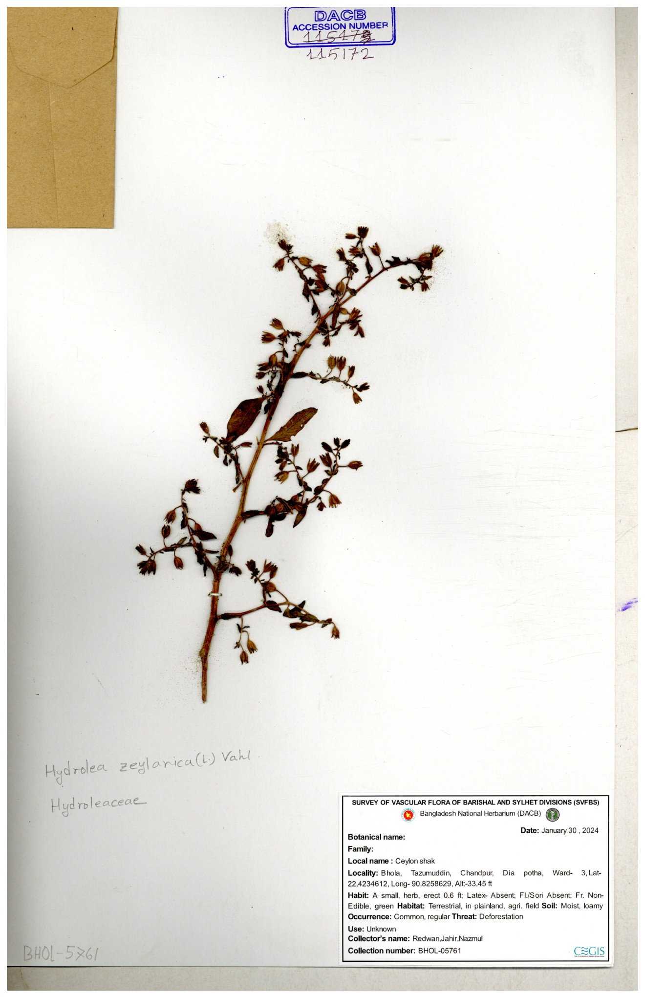 | 115172 | Hydroleaceae | Hydrolea zeylanica | 30-11--0001 |