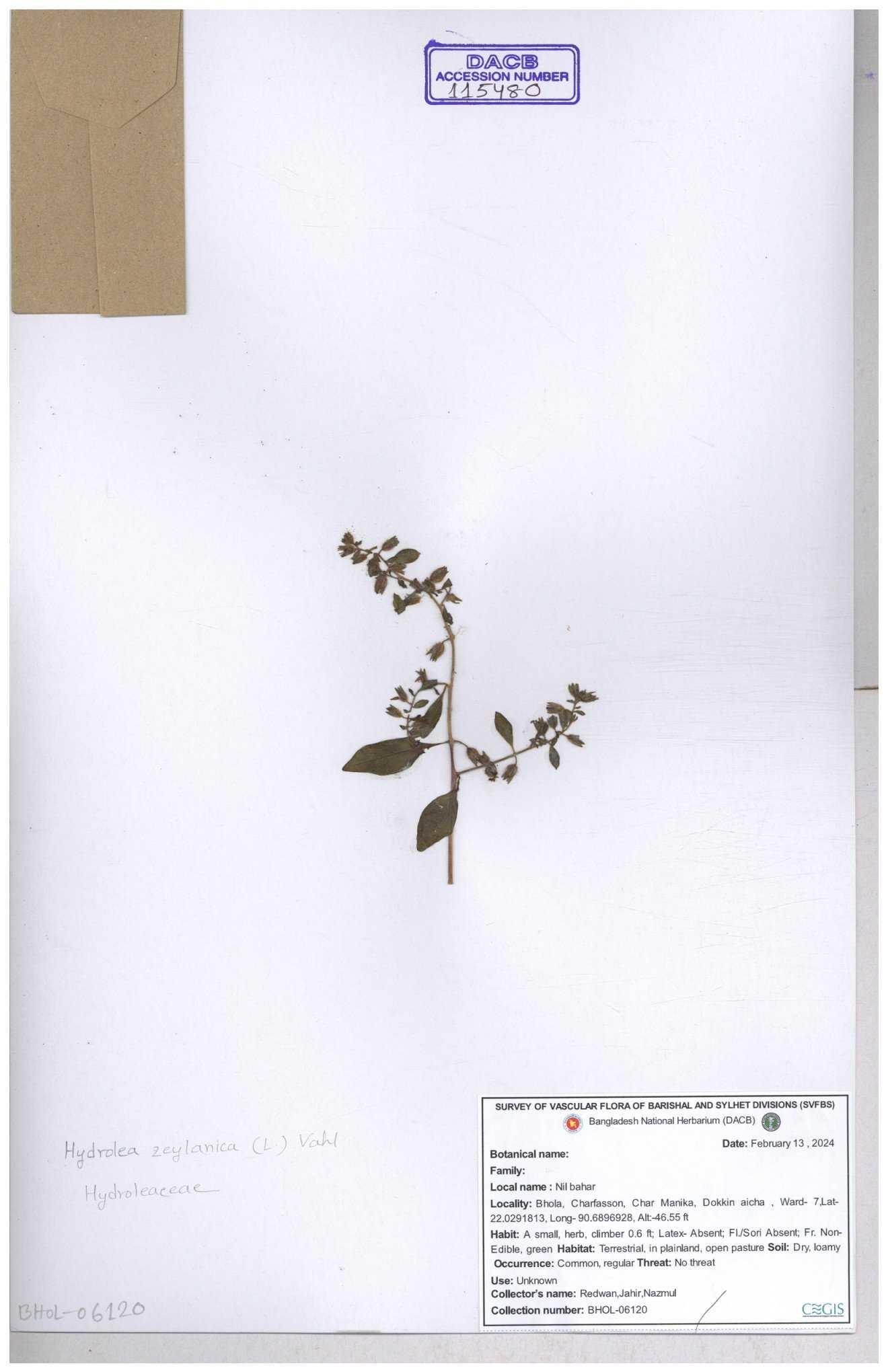 | 115480 | Hydroleaceae | Hydrolea zeylanica | 30-11--0001 |