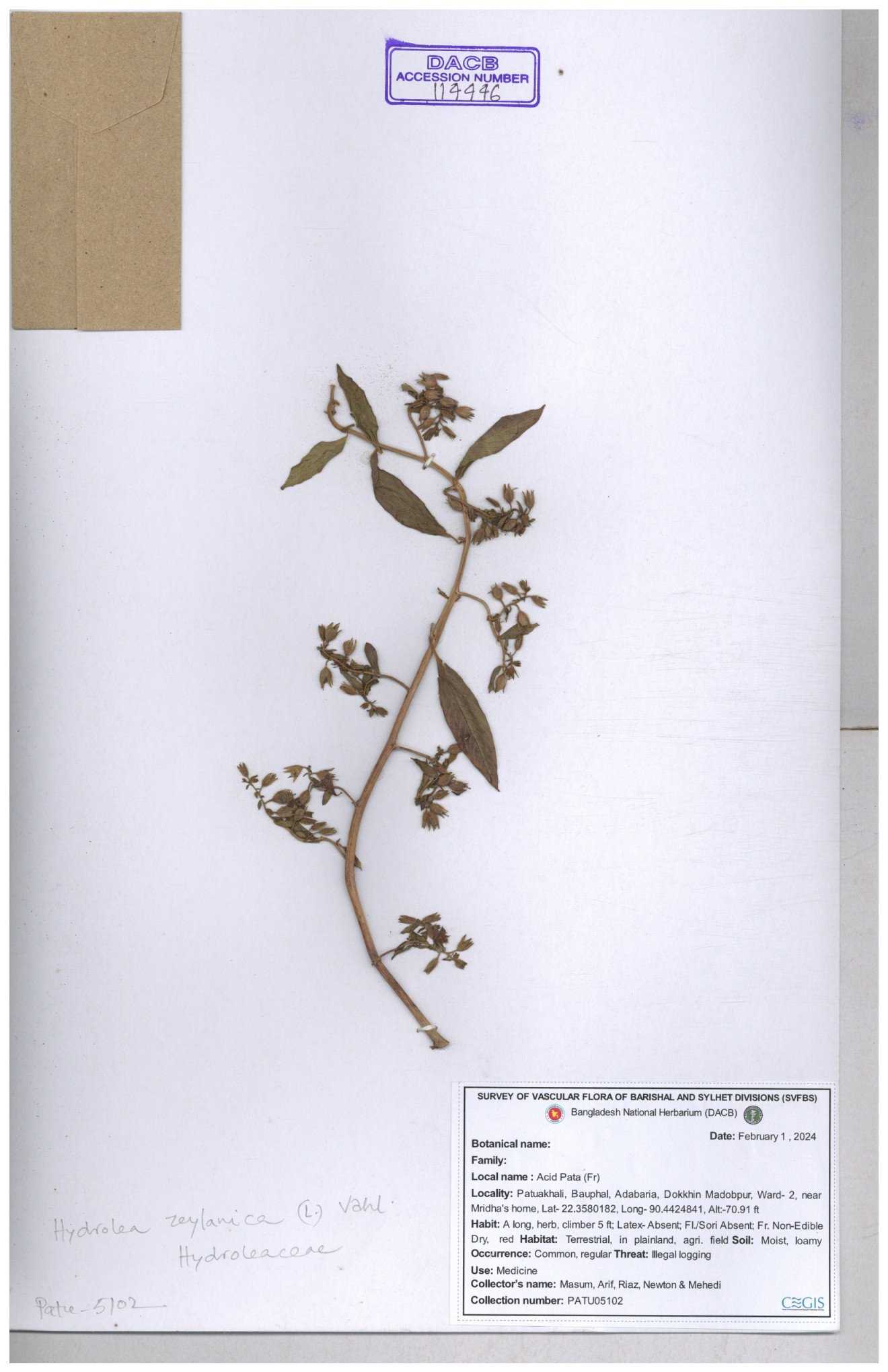 | 102770 | Hydroleaceae | Hydrolea zeylanica | 30-11--0001 |