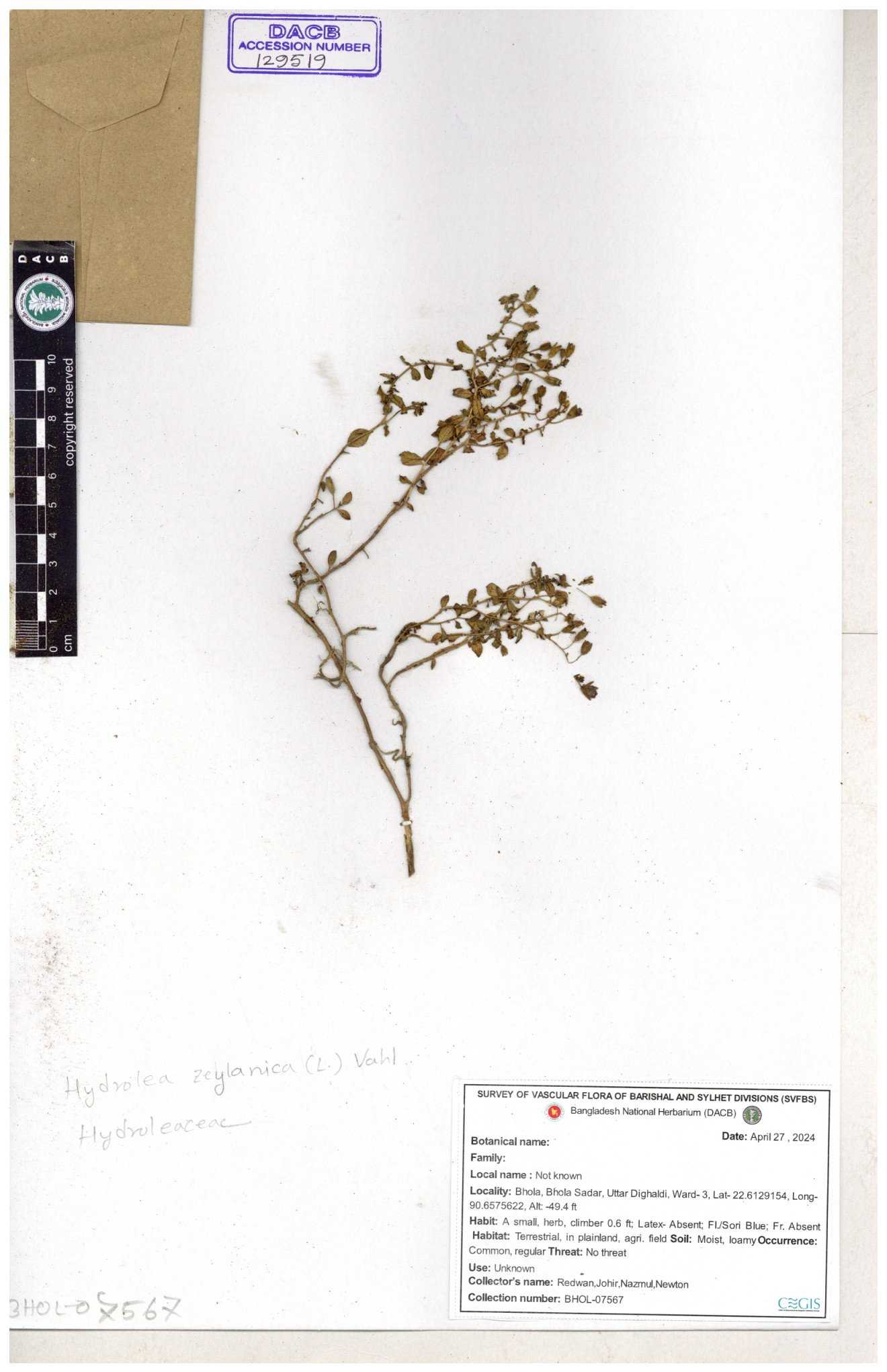 | 129519 | Hydroleaceae | Hydrolea zeylanica | 30-11--0001 |
