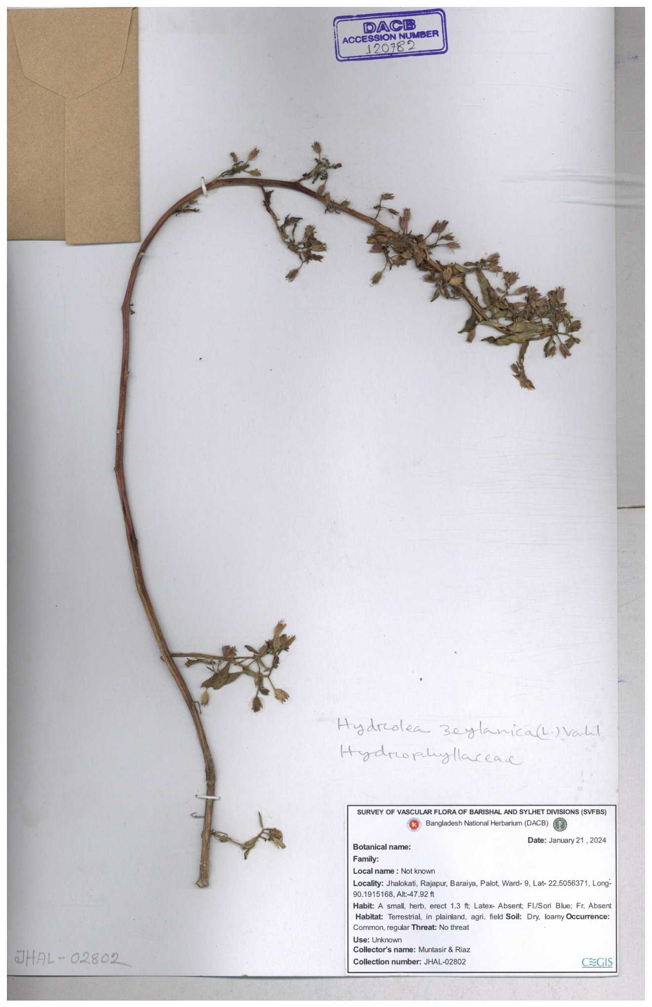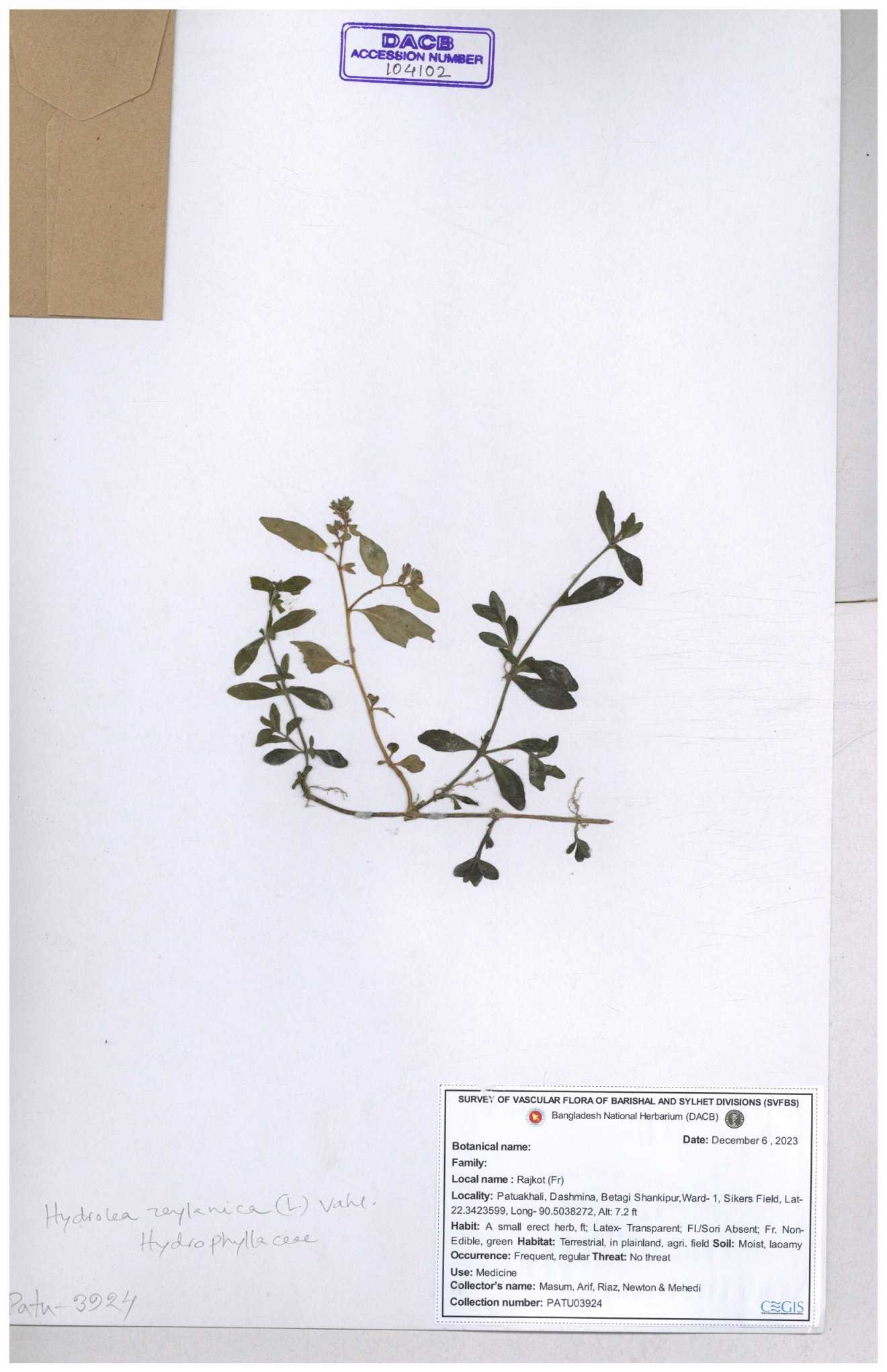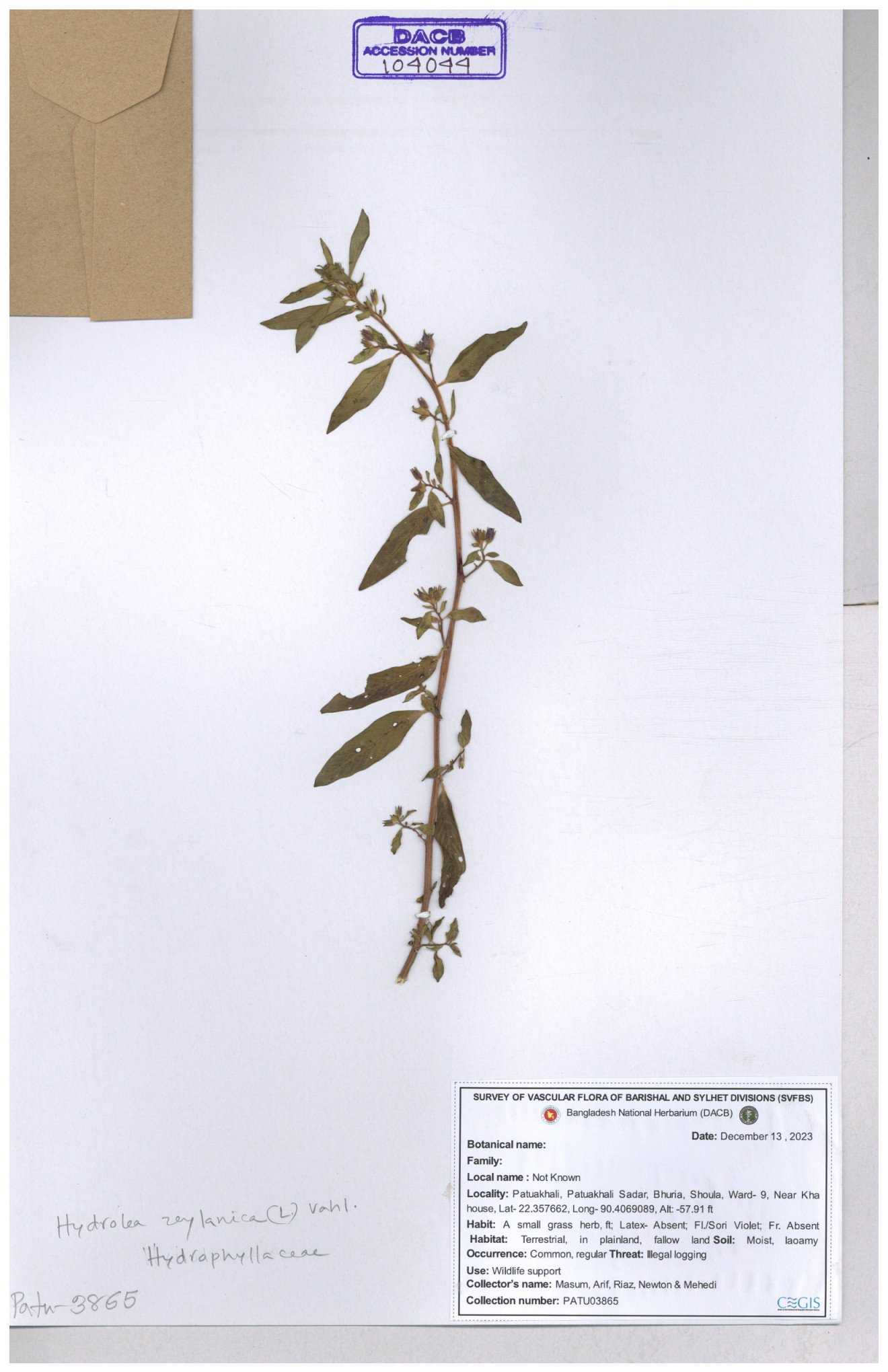 | 102843 | Hydrophyllaceae | Hydrolea zeylanica | 30-11--0001 |