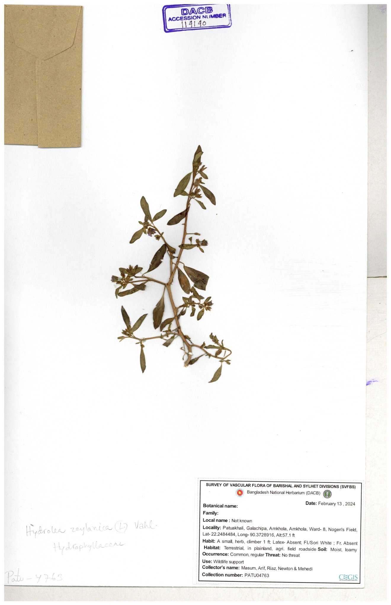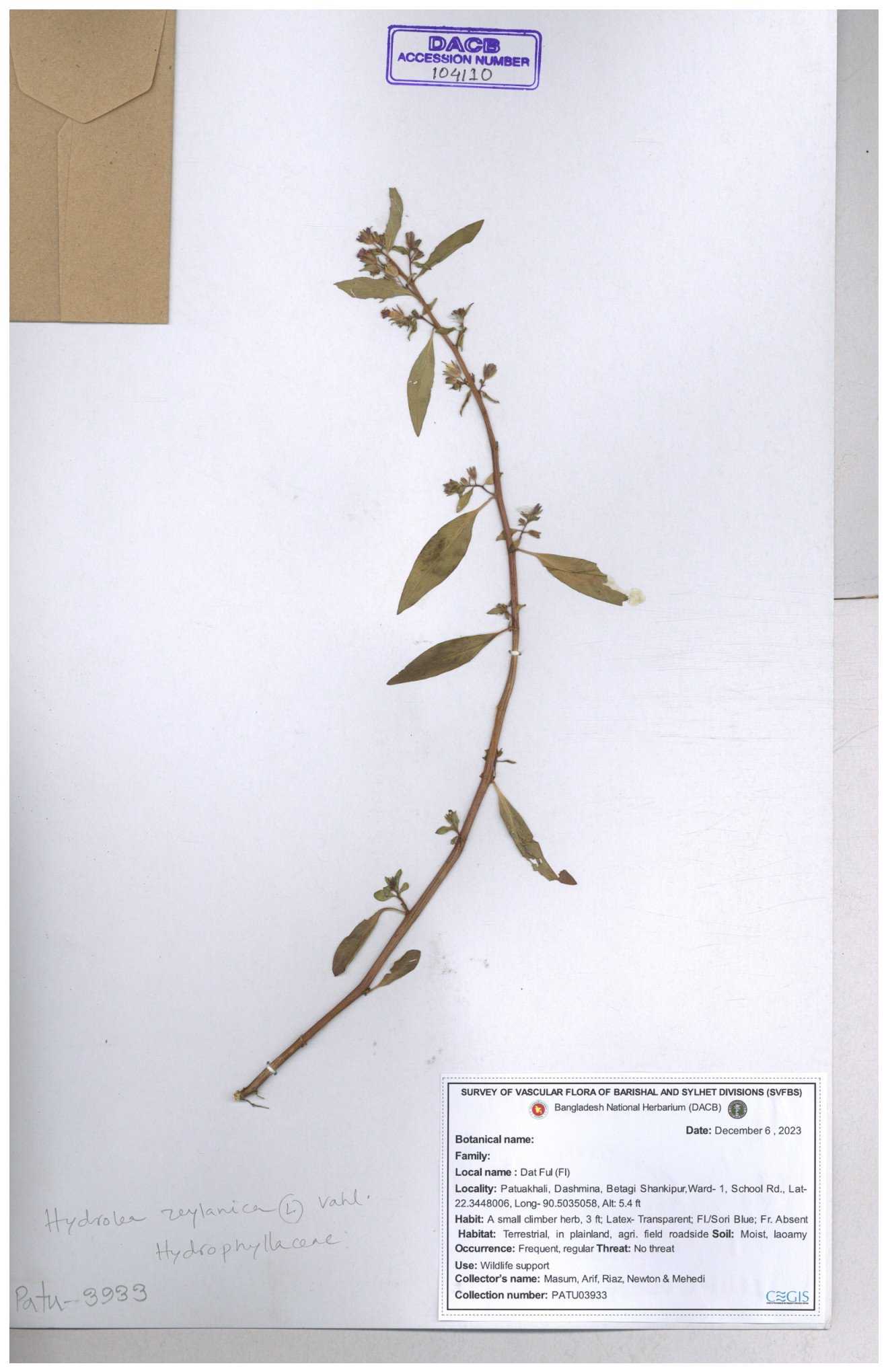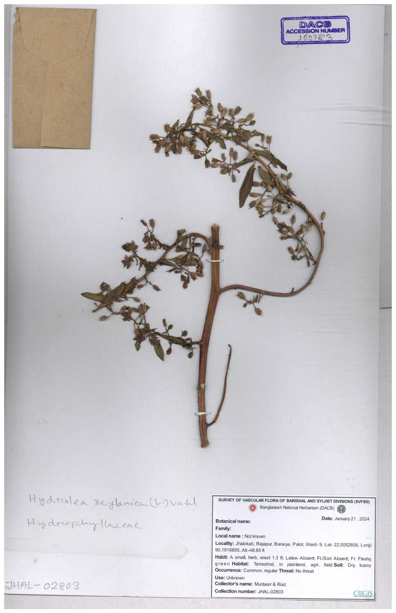 | 102843 | Hydrophyllaceae | Hydrolea zeylanica | 30-11--0001 |