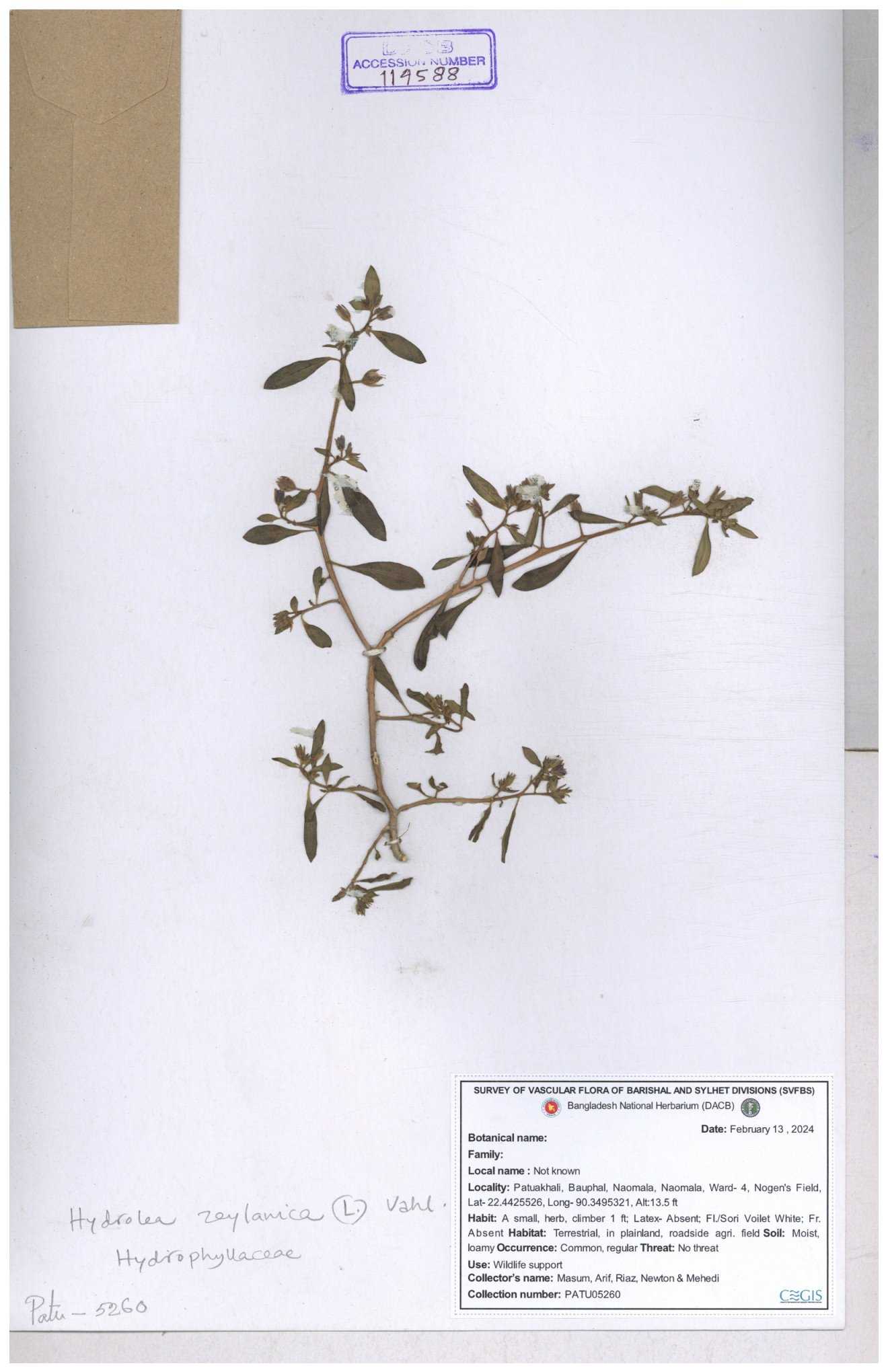 | 114588 | Hydrophyllaceae | Hydrolea zeylanica | 30-11--0001 |