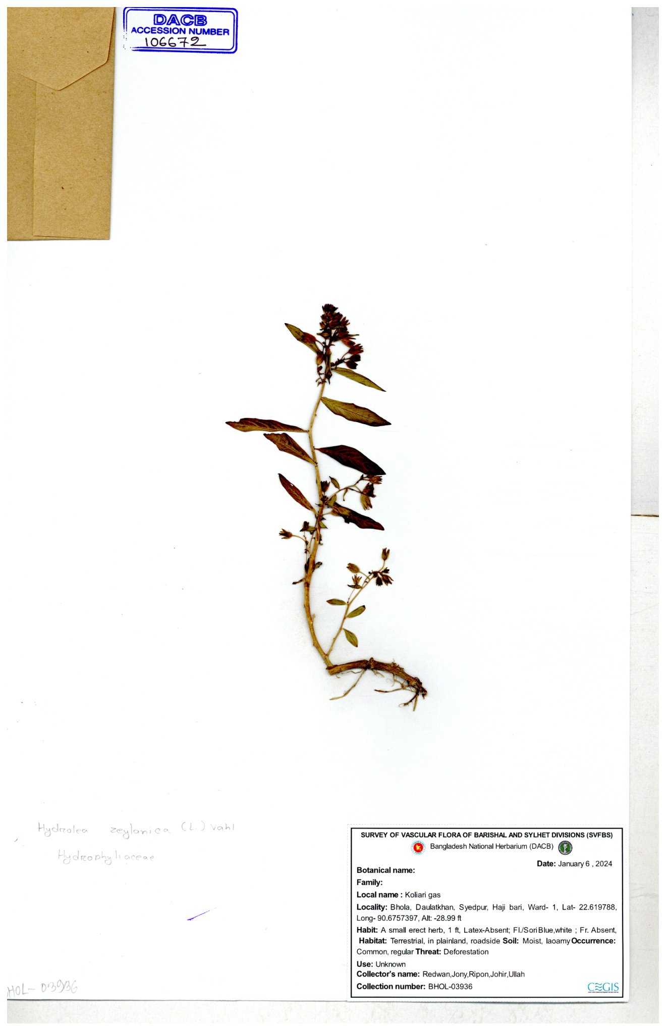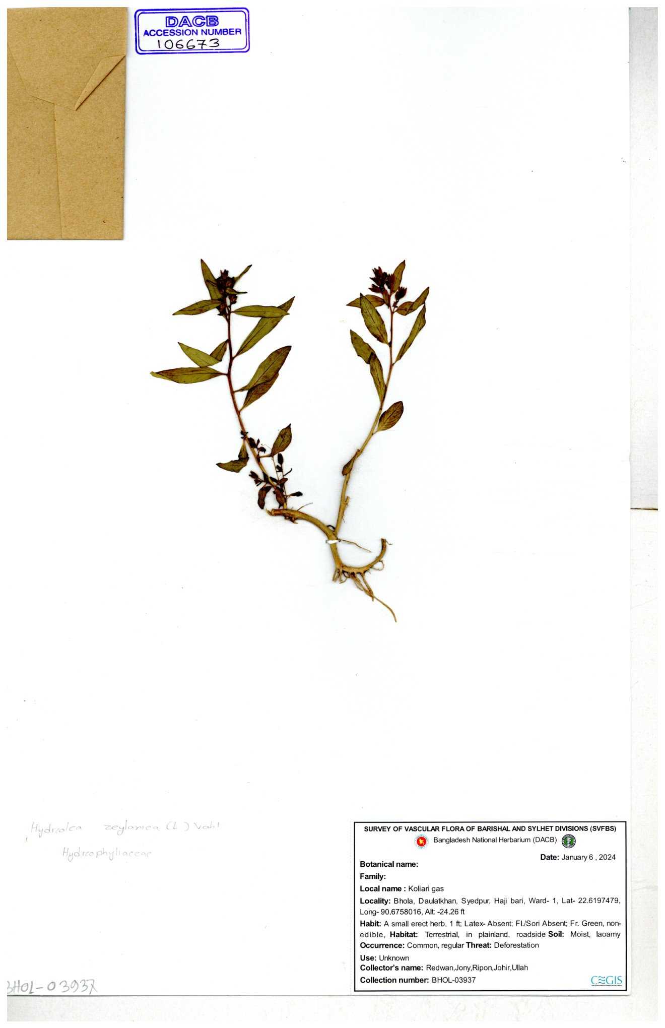 | 106673 | Hydrophyllaceae | Hydrolea zeylanica | 30-11--0001 |