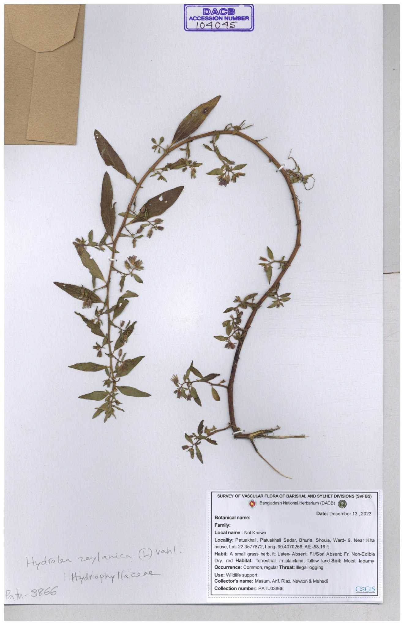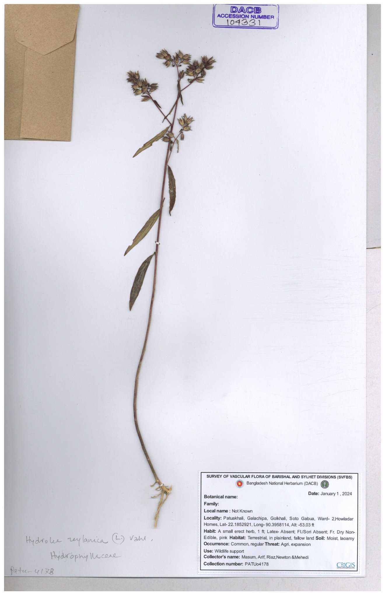 | 100902 | Hydrophyllaceae | Hydrolea Zeylania | 30-11--0001 |