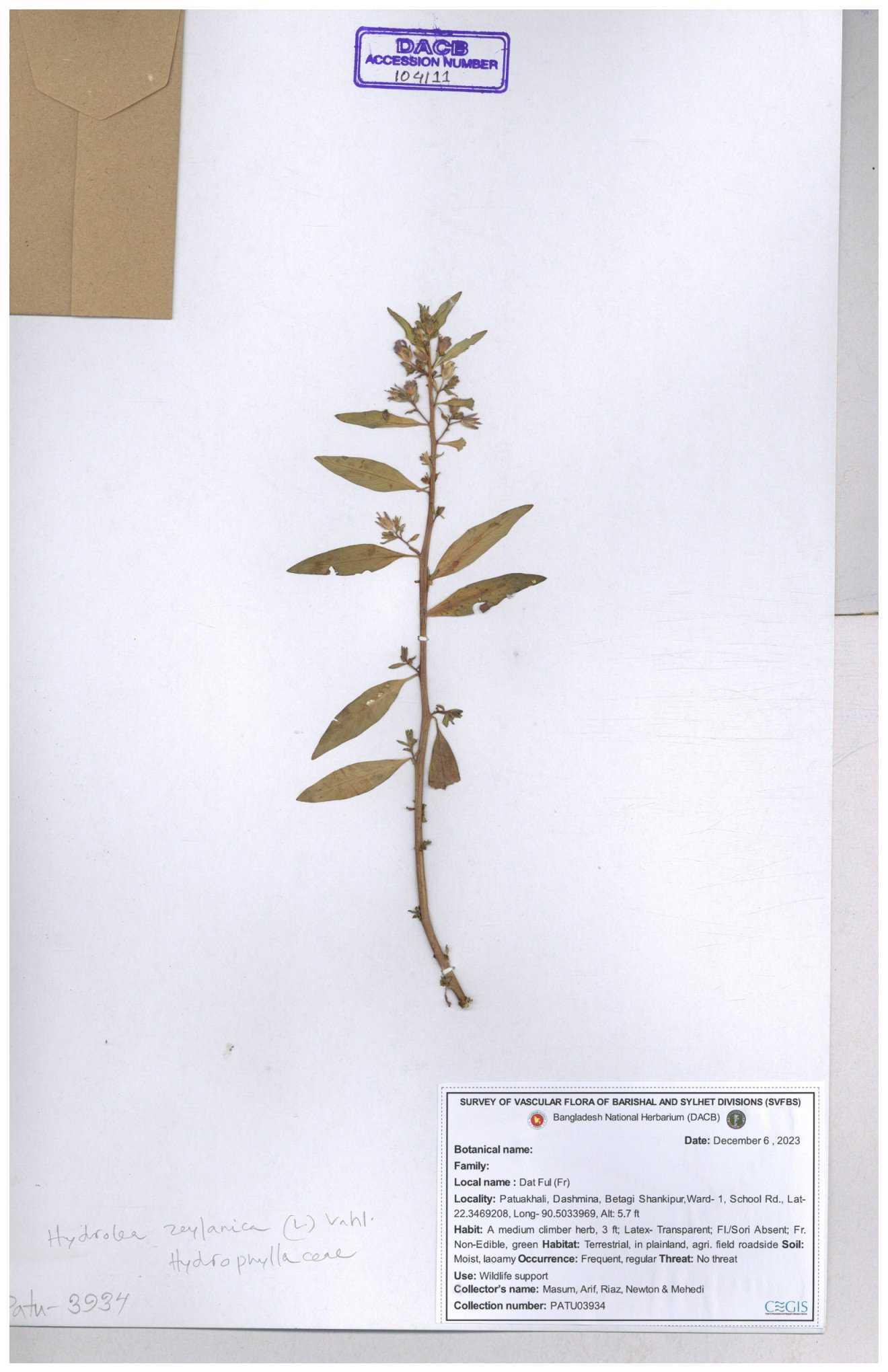 | 104331 | Hydrophyllaceae | Hydrolea zeylanica | 30-11--0001 |