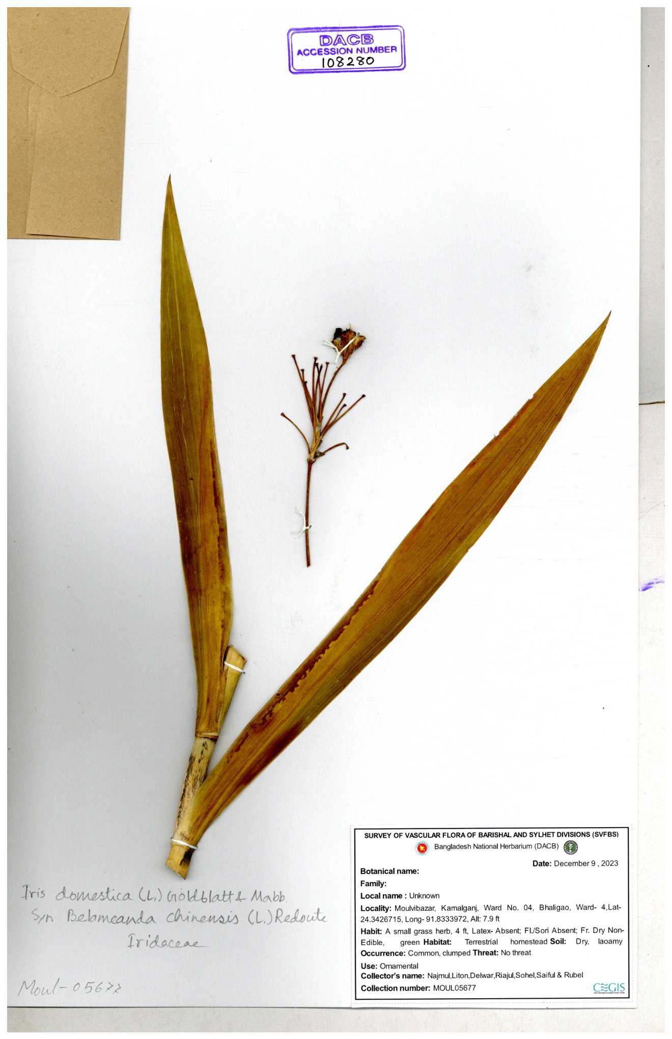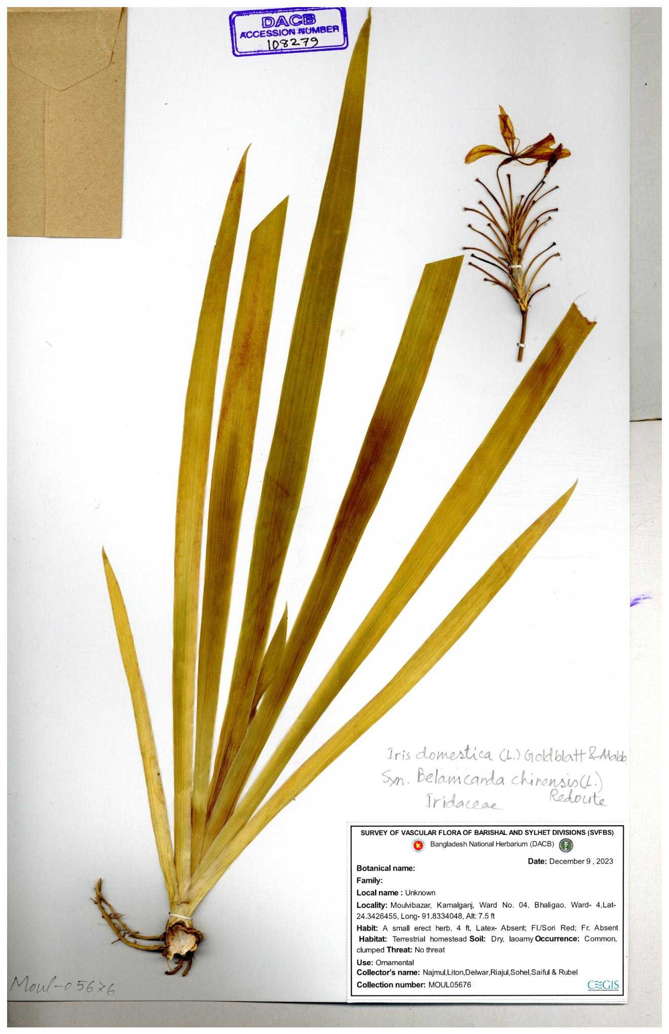 | 134408 | Iridaceae | Iris domestica | Sohan, Zia, Alamin, Saumik, Liton | 30-11--0001 |