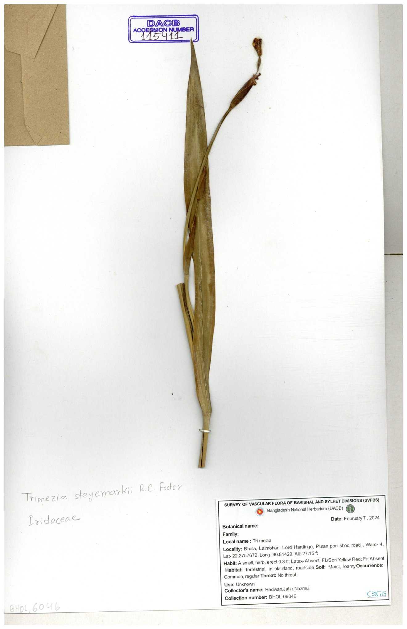 | 115411 | Iridaceae | Trimezia steyemarhii | 30-11--0001 |