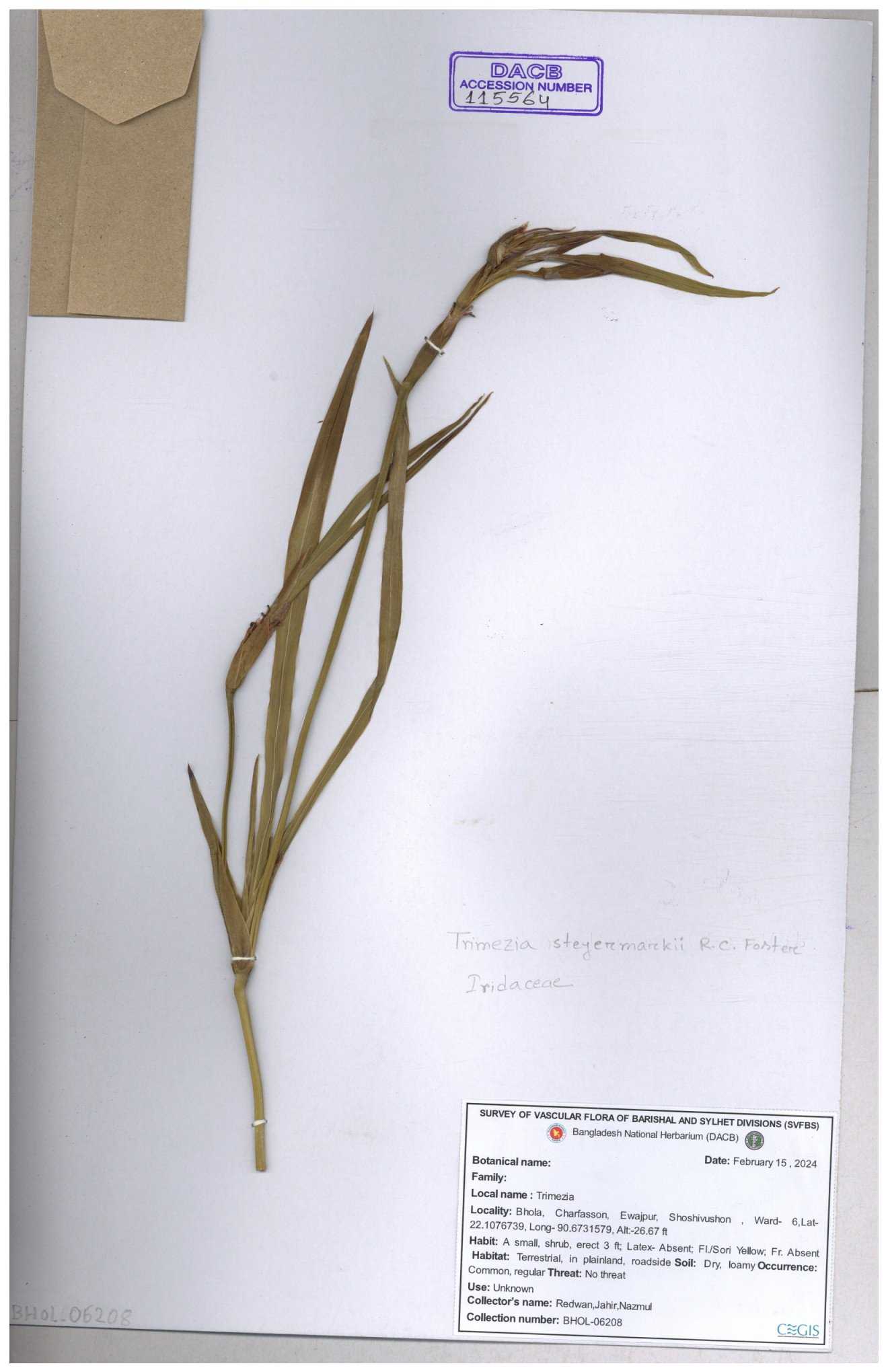 | 115564 | Iridaceae | Trimezia steyermarkii | 30-11--0001 |