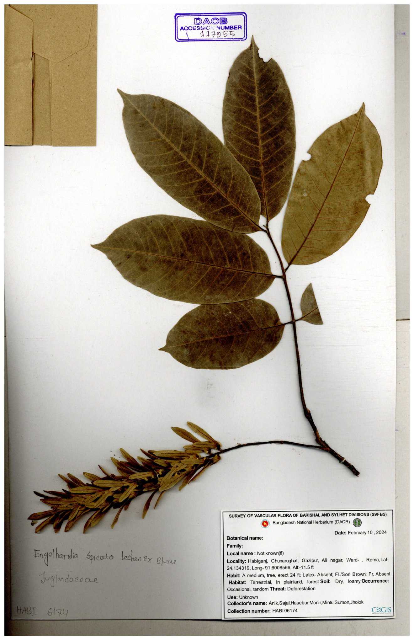 | 84969 | Juglandaceae | Engelhardtia spicata Lechen ex Blume | Joyanta, Mominur, Kamrul & Suborno | JCR-7269 07-02-2018 |
