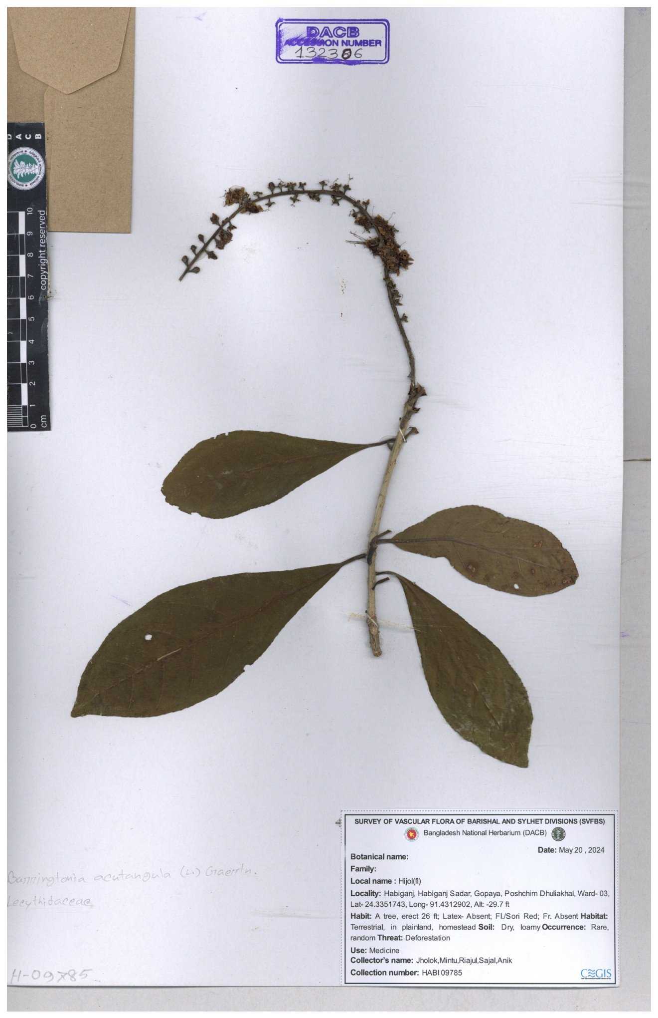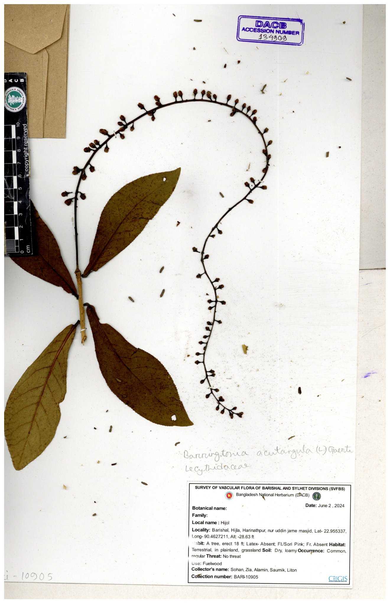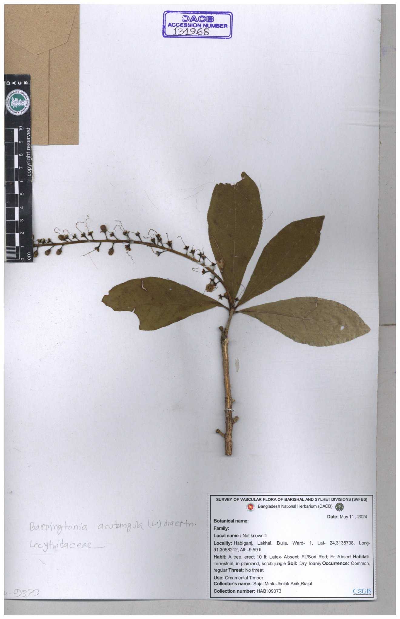 | 65993 | Lecythidaceae | Barringtonia acutangula . (L.) Gaertn | Hijolful | Khandakar Kamrul Islam | KKI-4084 12-03-2020 |