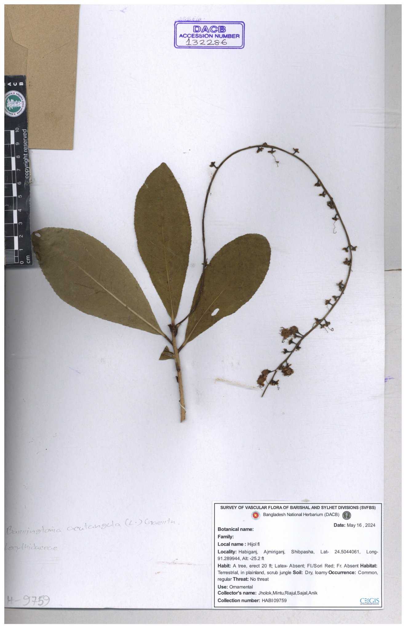 | 66270 | Lecythidaceae | Barringtonia acutangula | হিজল | Farhana Ahmed | 35 01-12-2021 |