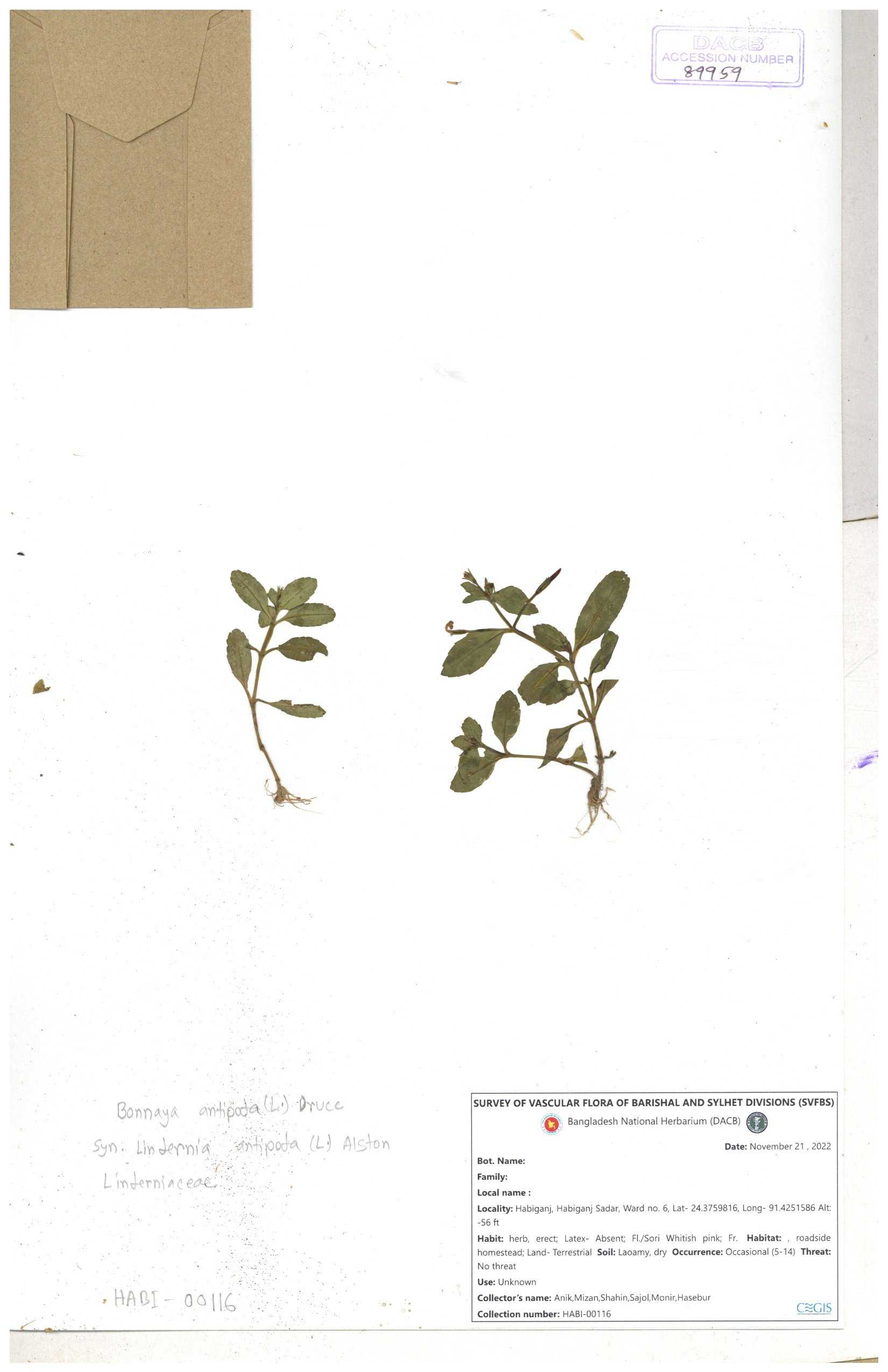 | 89959 | Linderniaceae | Bonnaya antipata | 30-11--0001 |