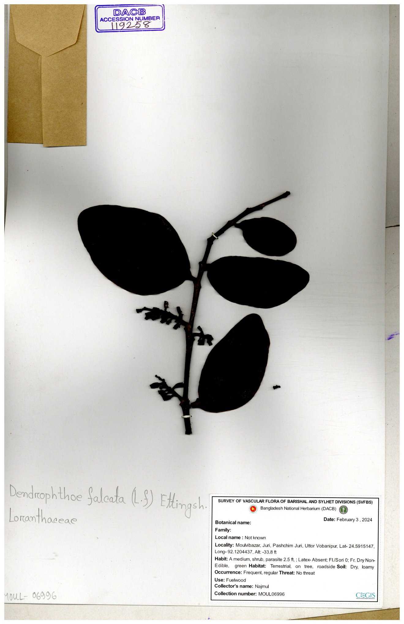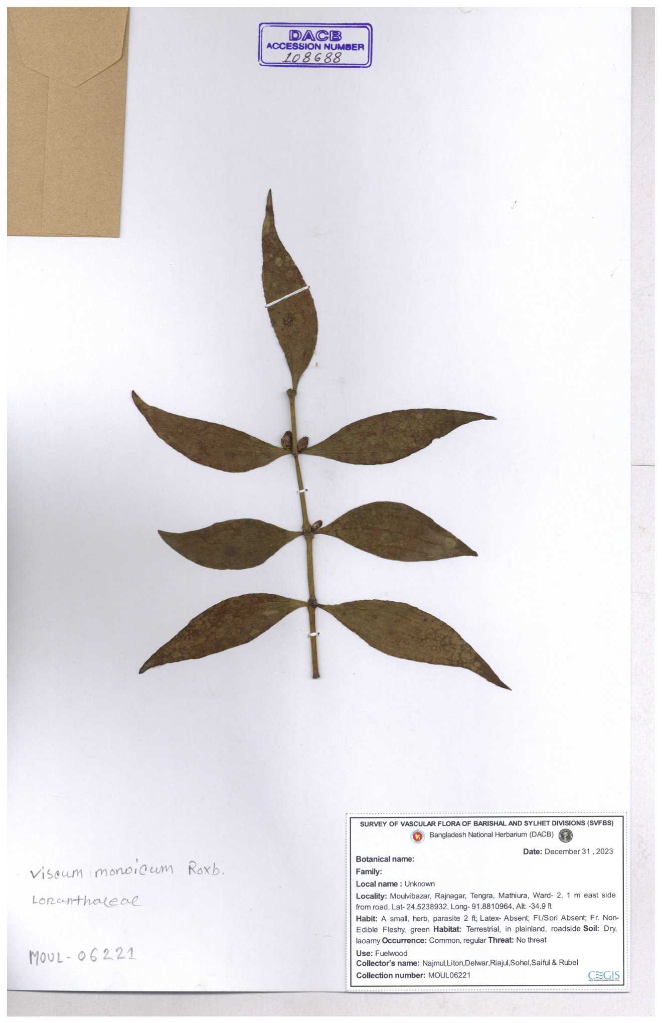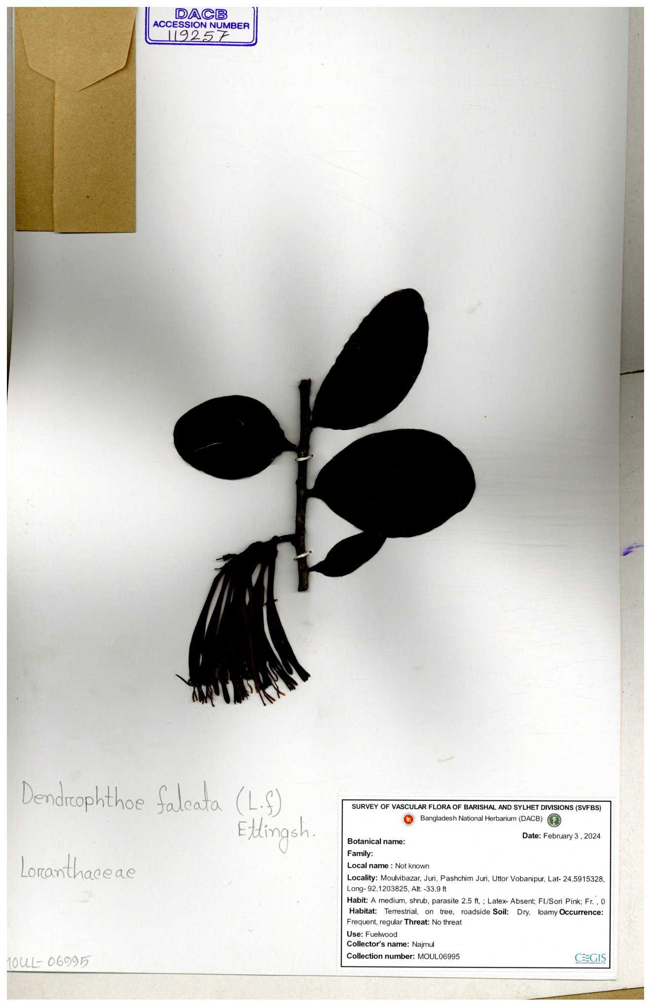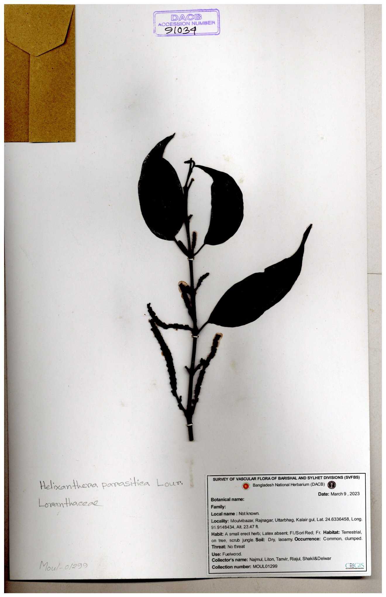 | 6325 | Loranthaceae | Loranthus ampailaceus | Huq, Mia & Momtaz | M-254 30-11--0001 |