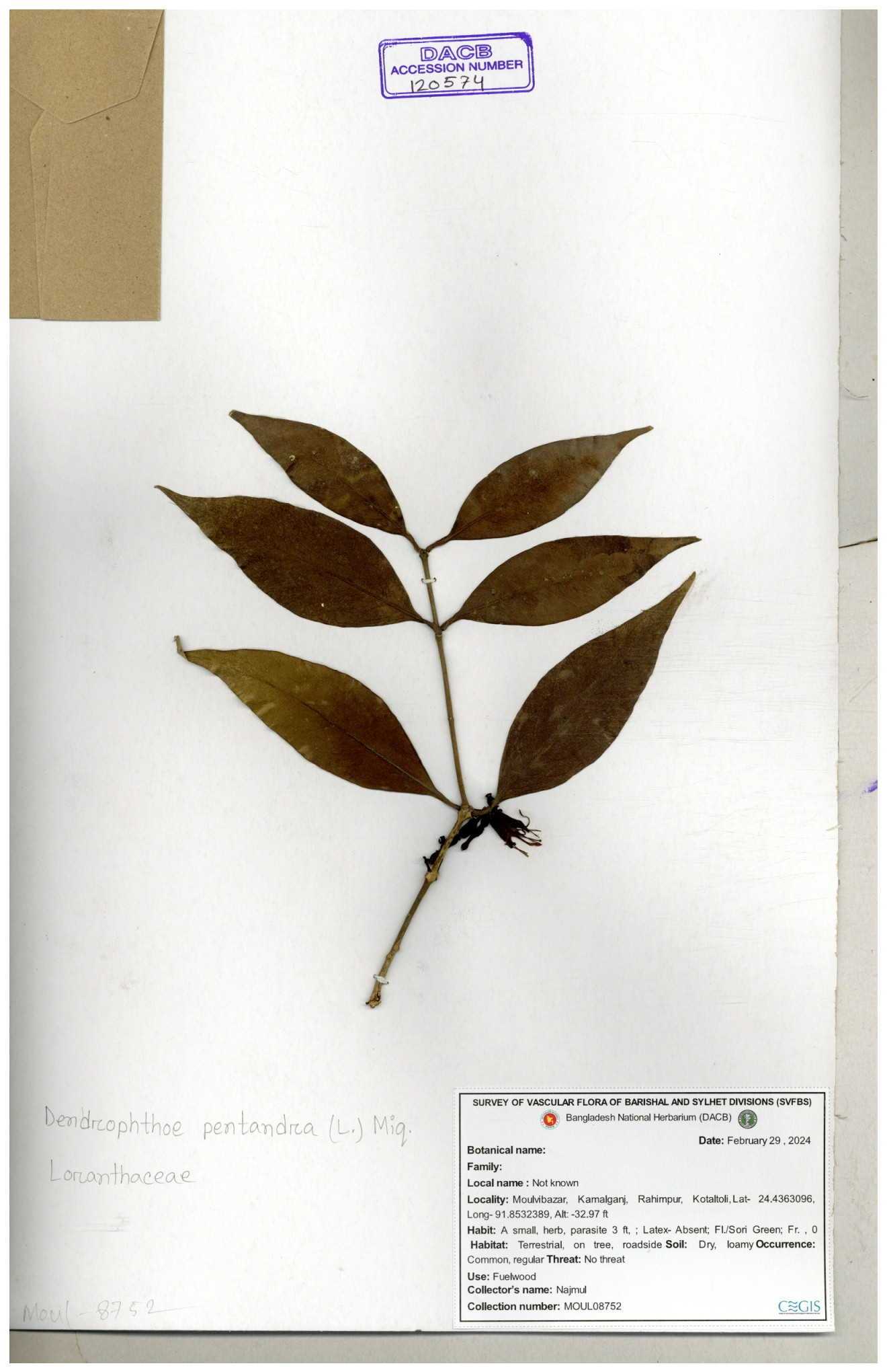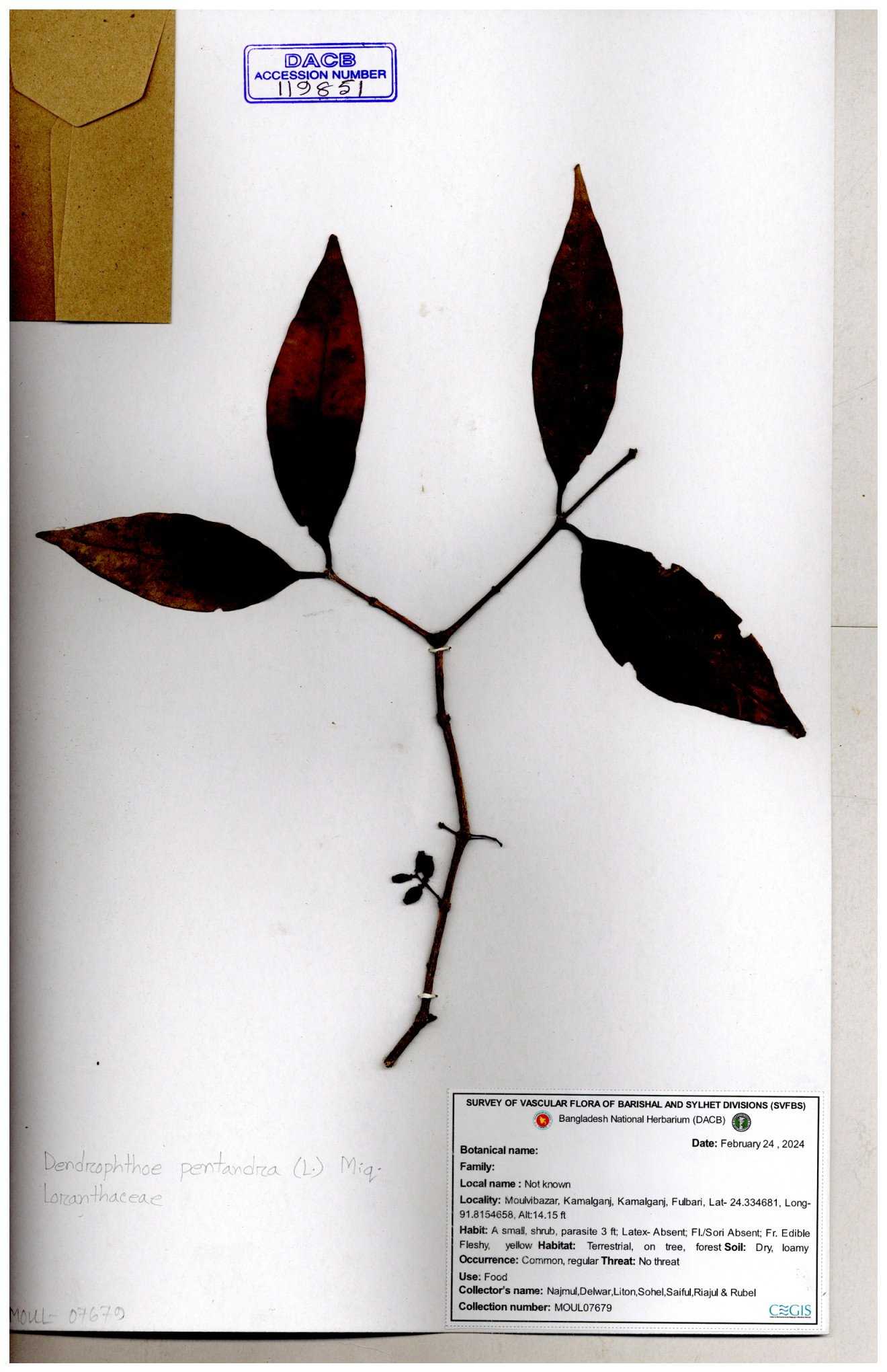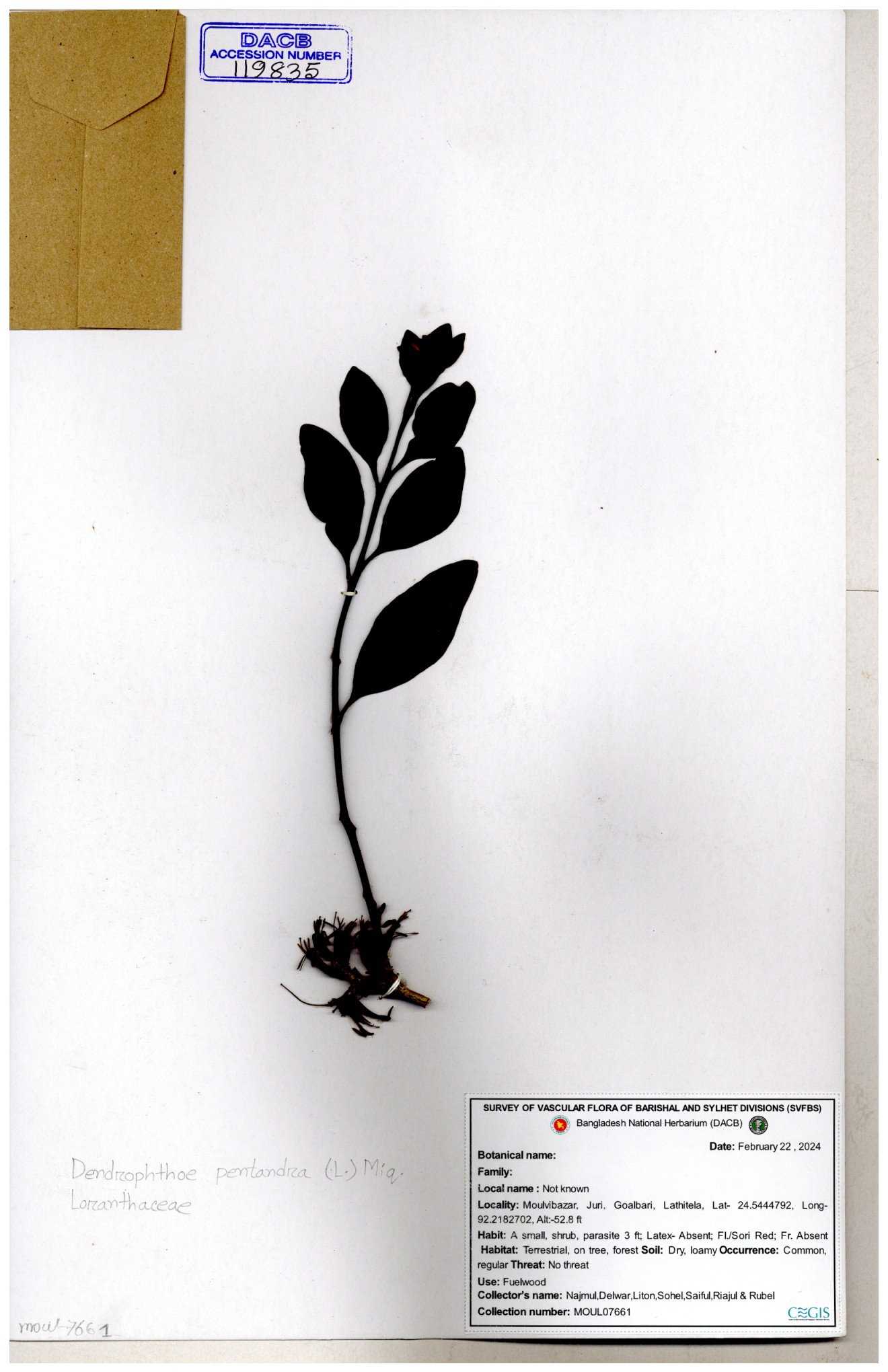 | 55730 | Loranthaceae | Dendrophthoe pentandra | Md. Moniruzzaman & Kawsar | MK-8034 30-11--0001 |