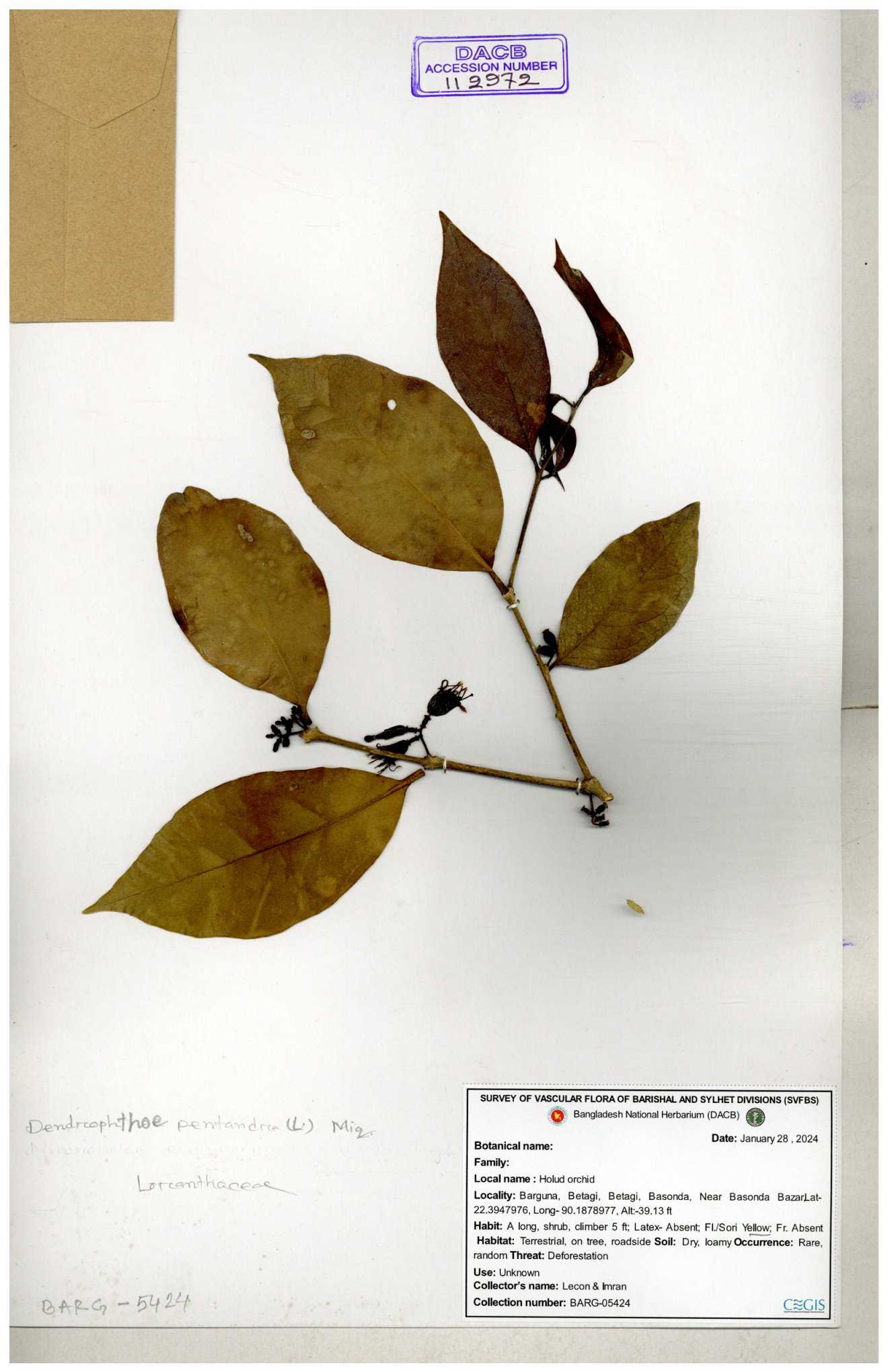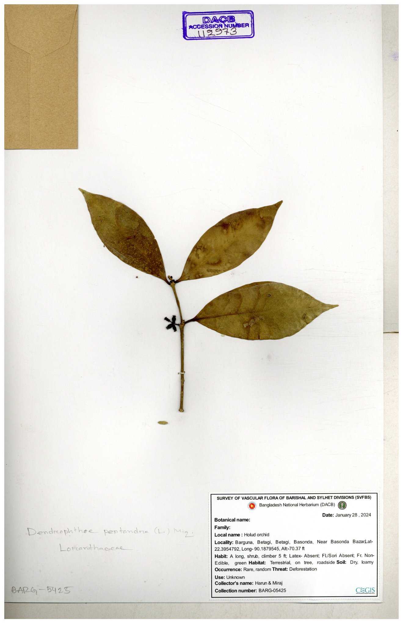| 112972 | Loranthaceae | Dendrophthoe pentandra | 30-11--0001 |