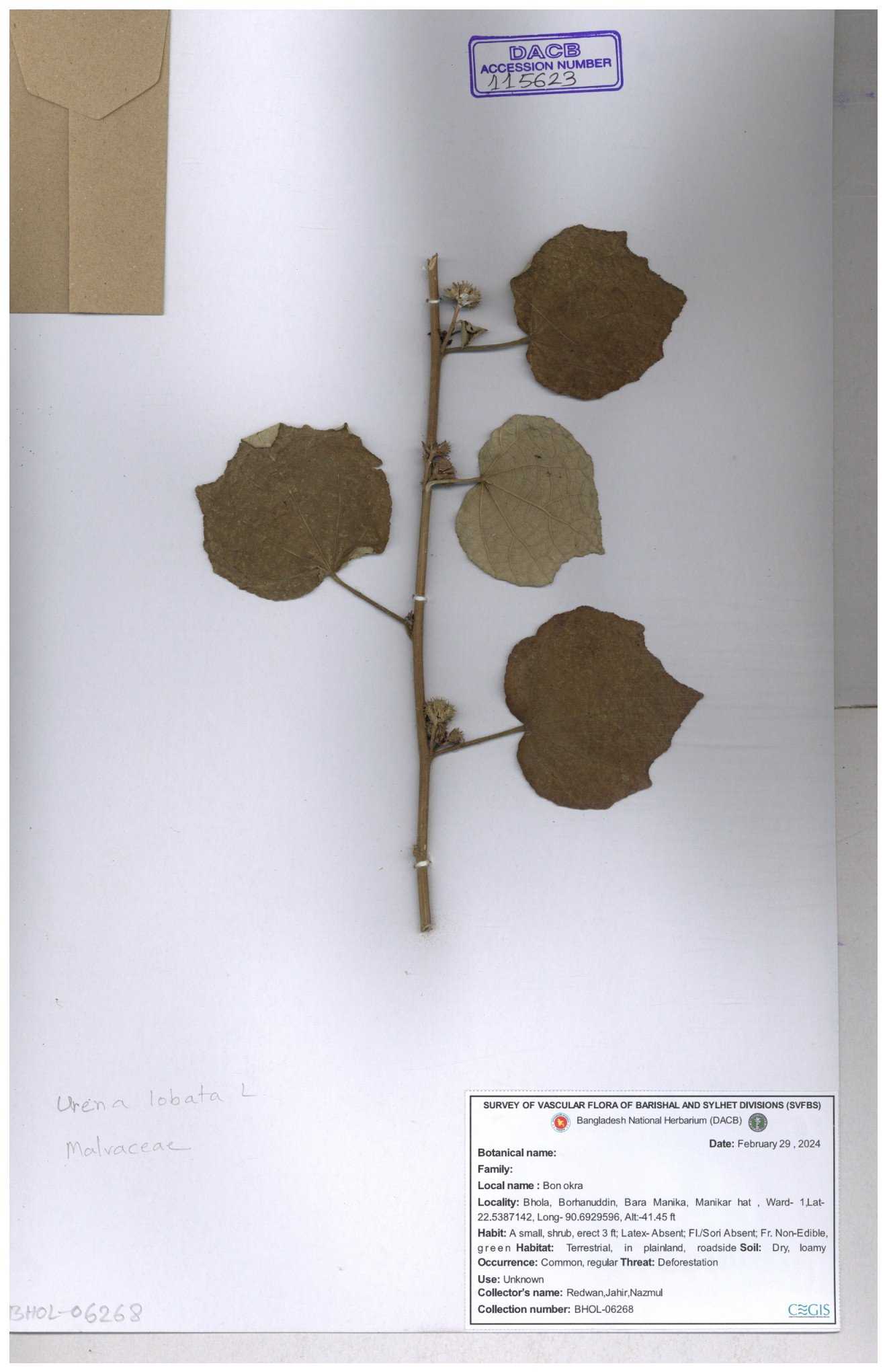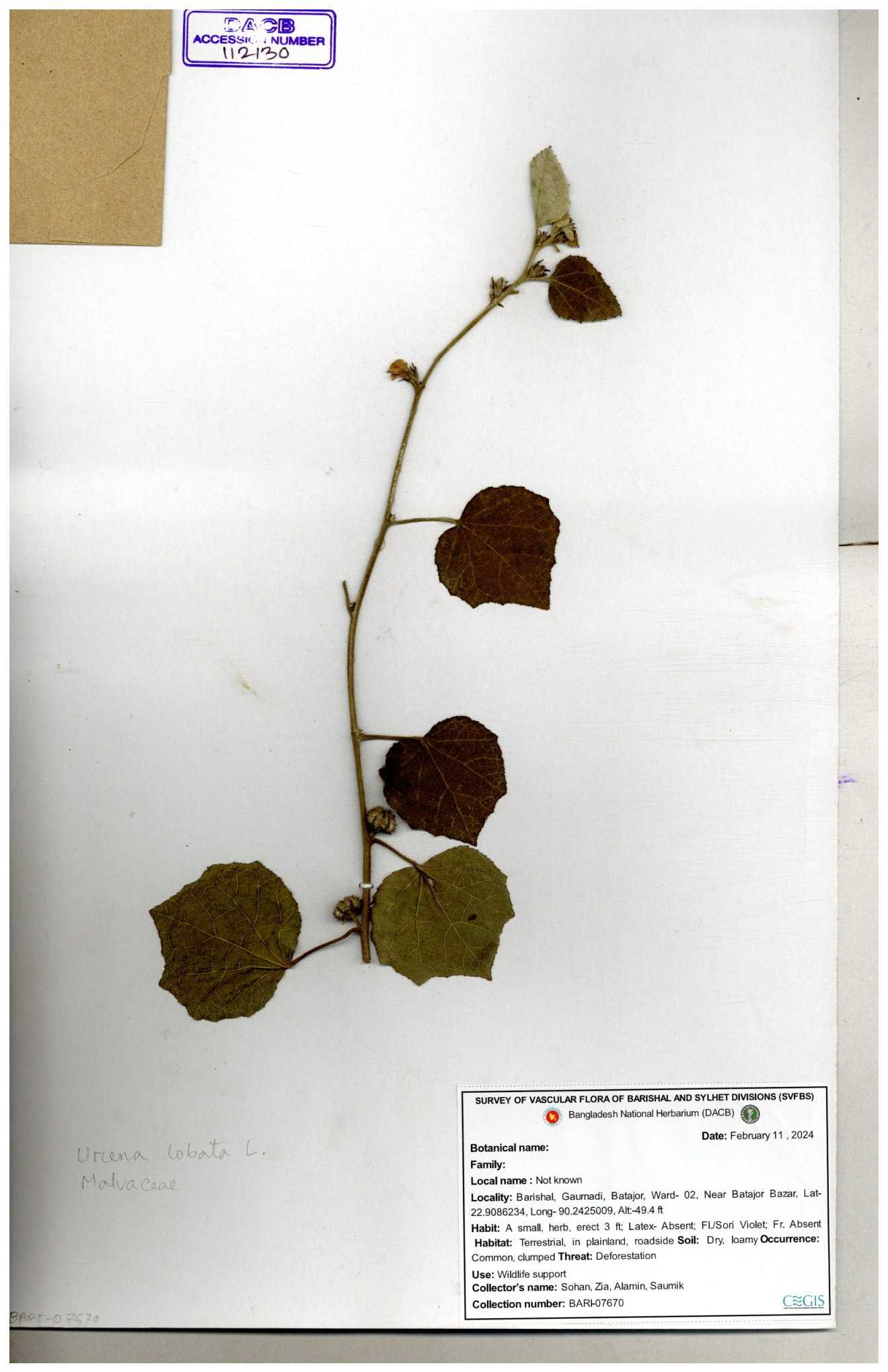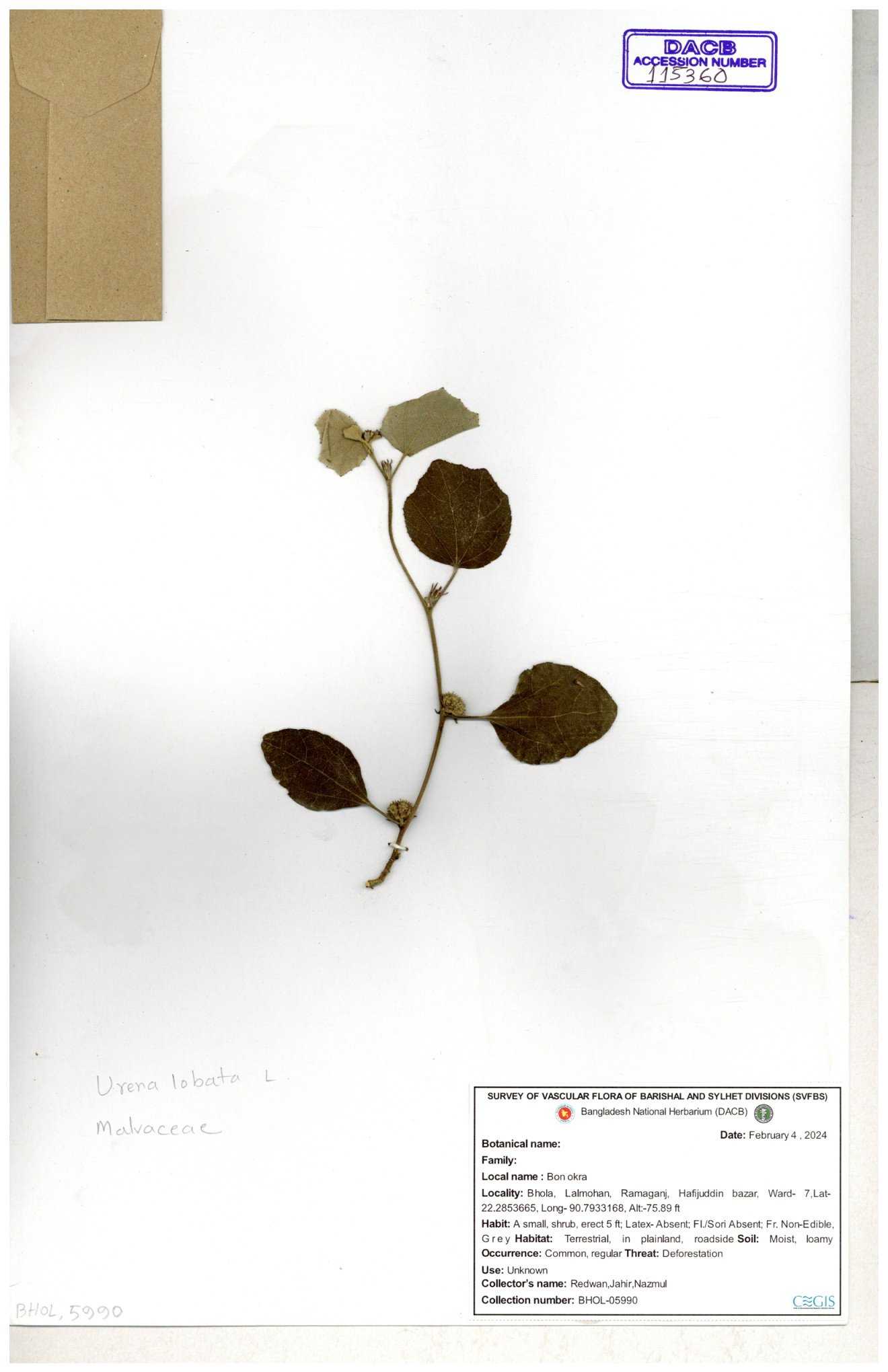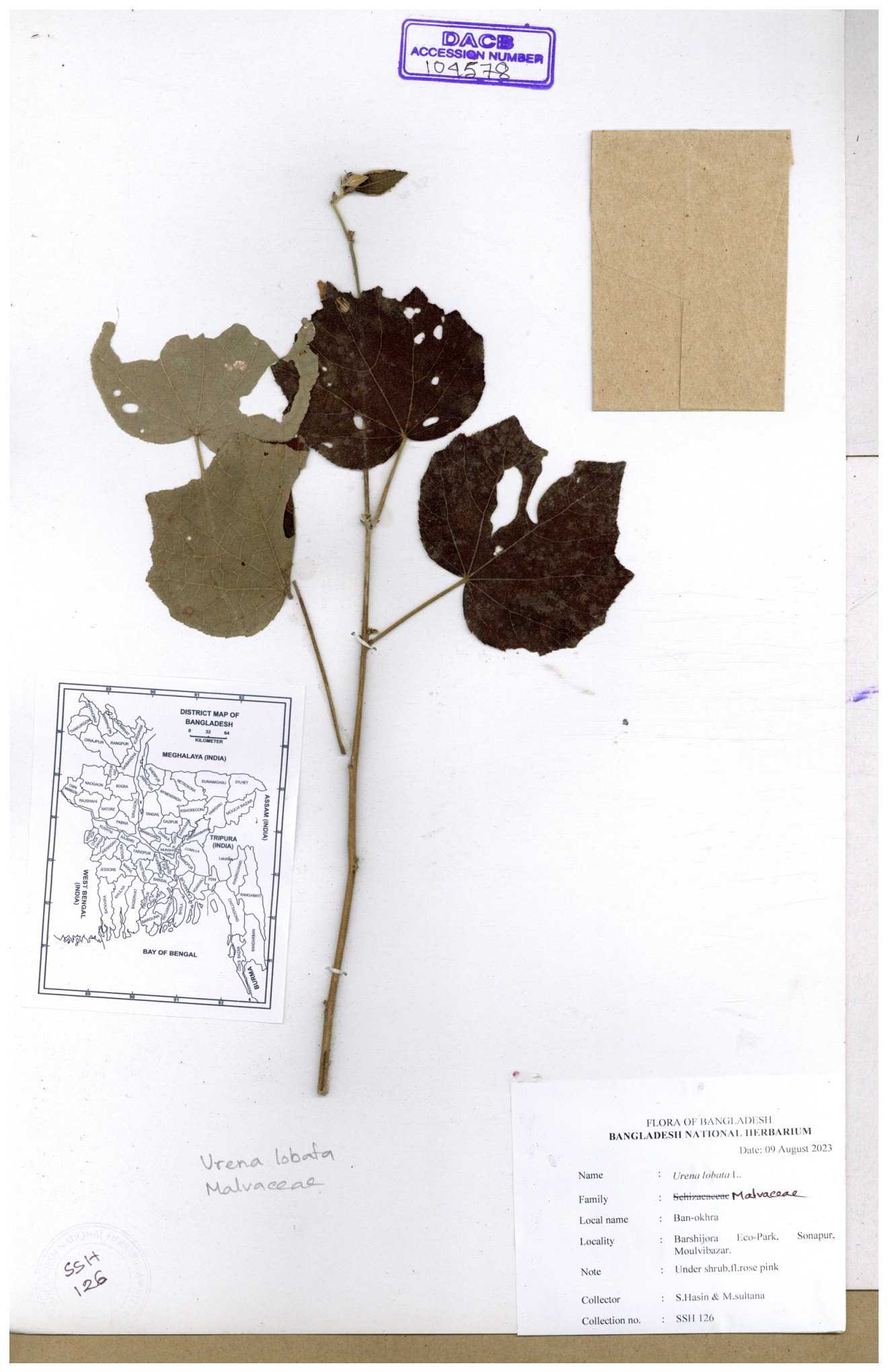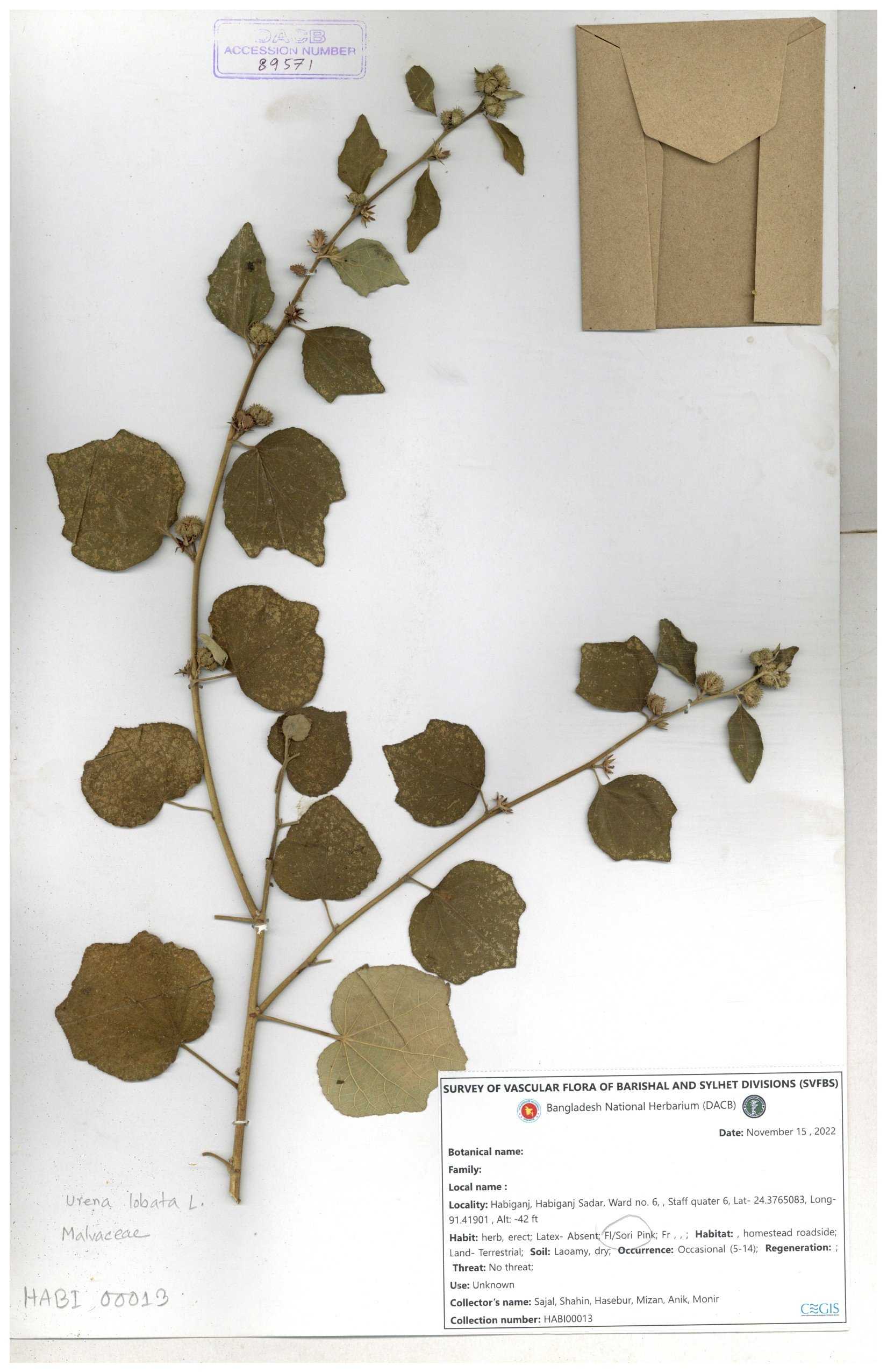 | 14128 | Malvaceae | Urena Urena sinuata | Mahfuz & A.M. Huq | MZ. 251 09-08-1988 |