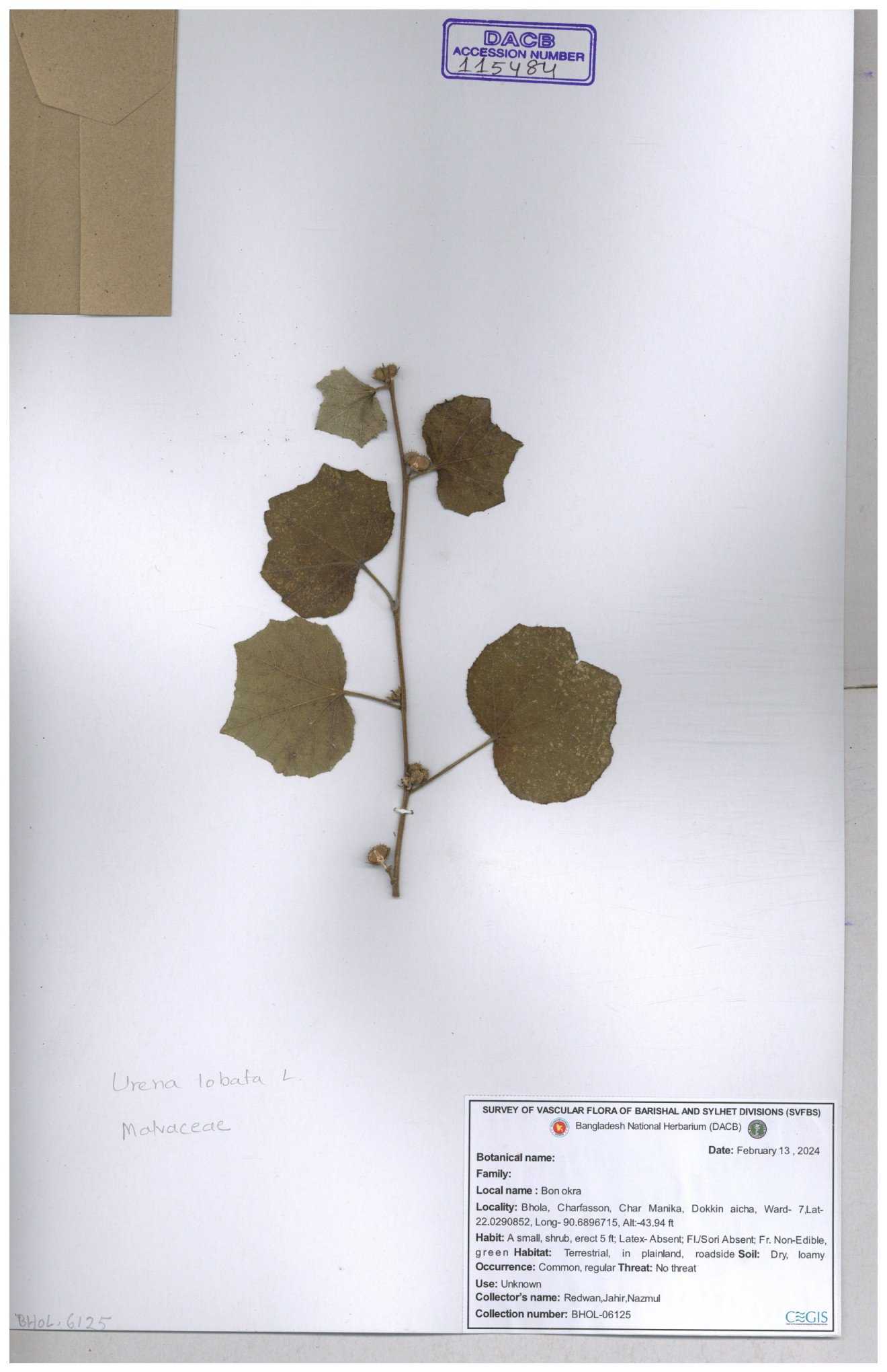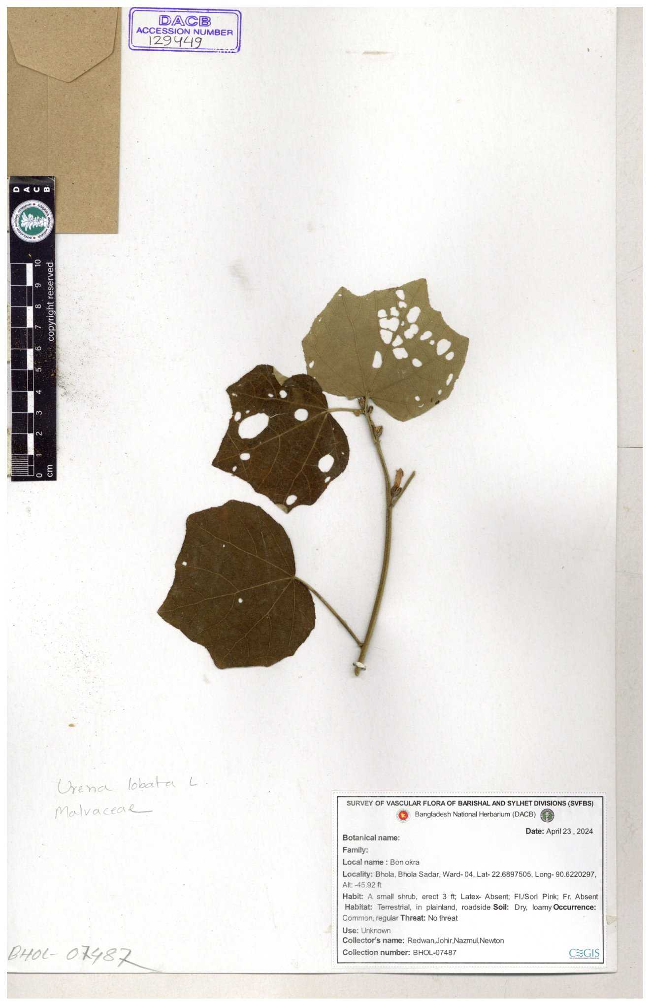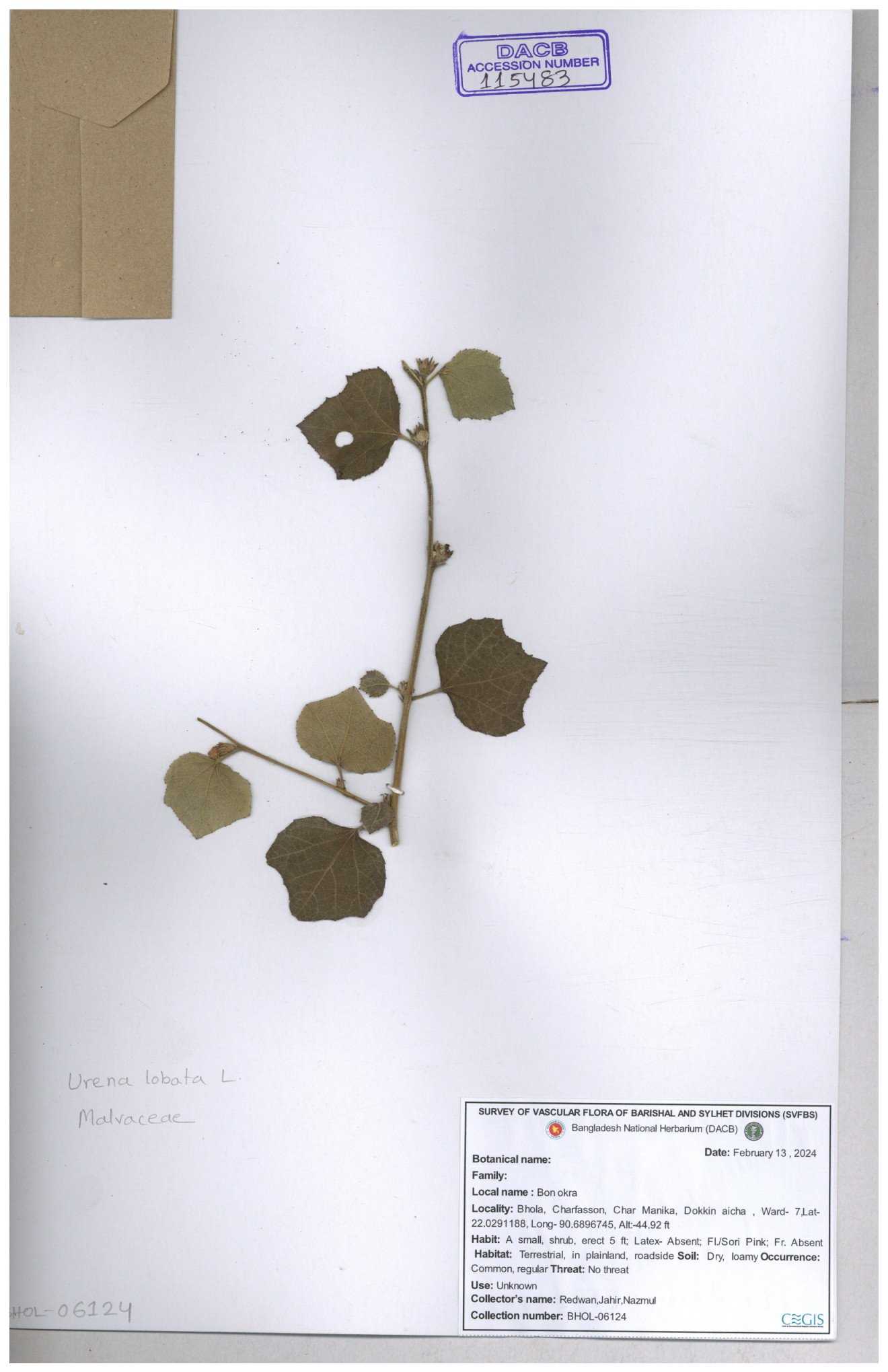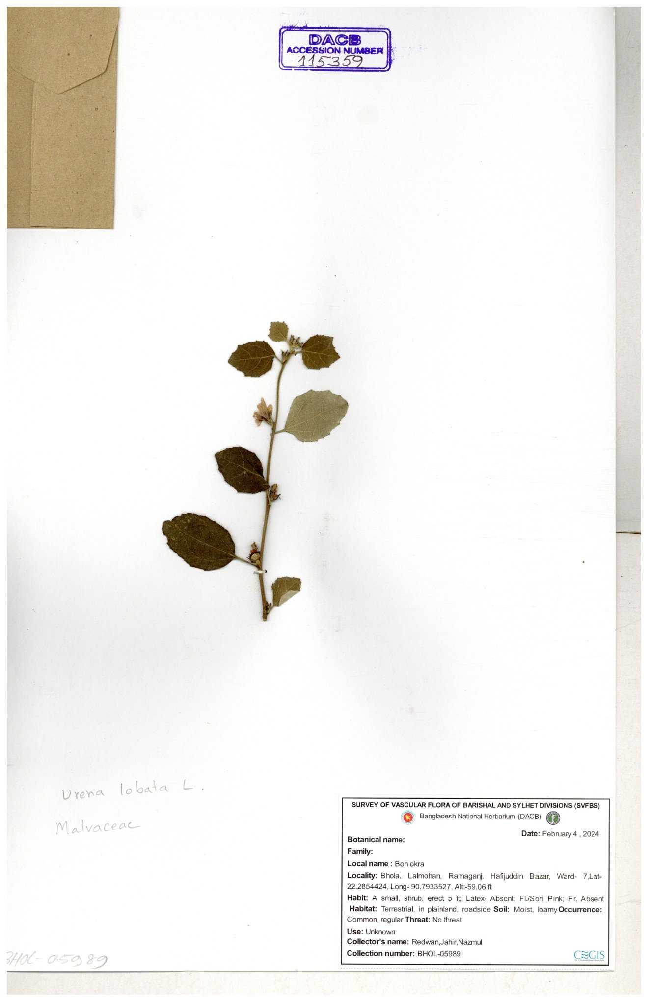 | 14128 | Malvaceae | Urena Urena sinuata | Mahfuz & A.M. Huq | MZ. 251 09-08-1988 |