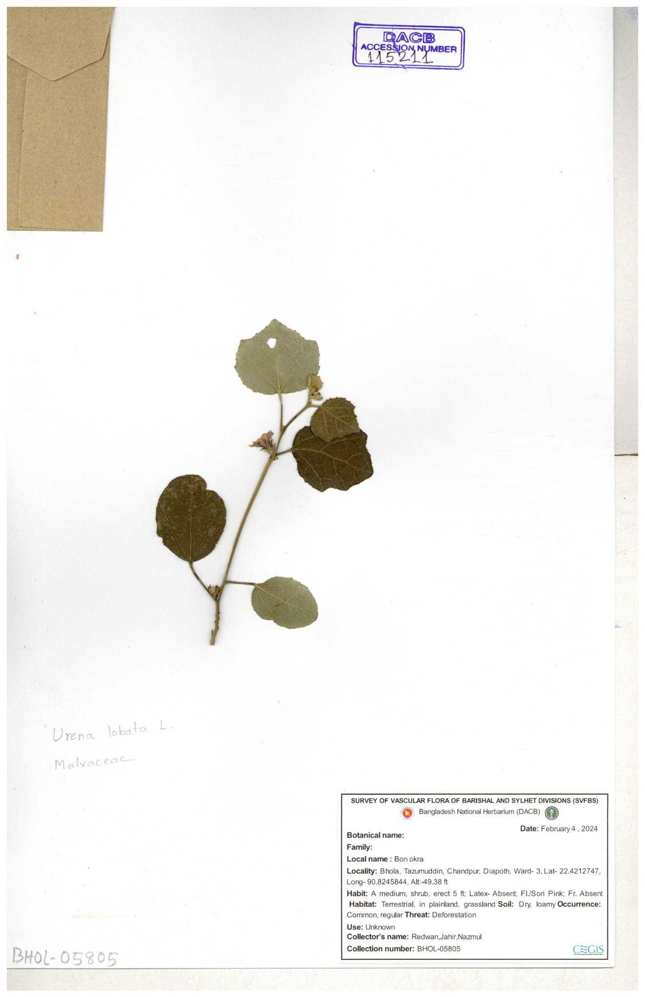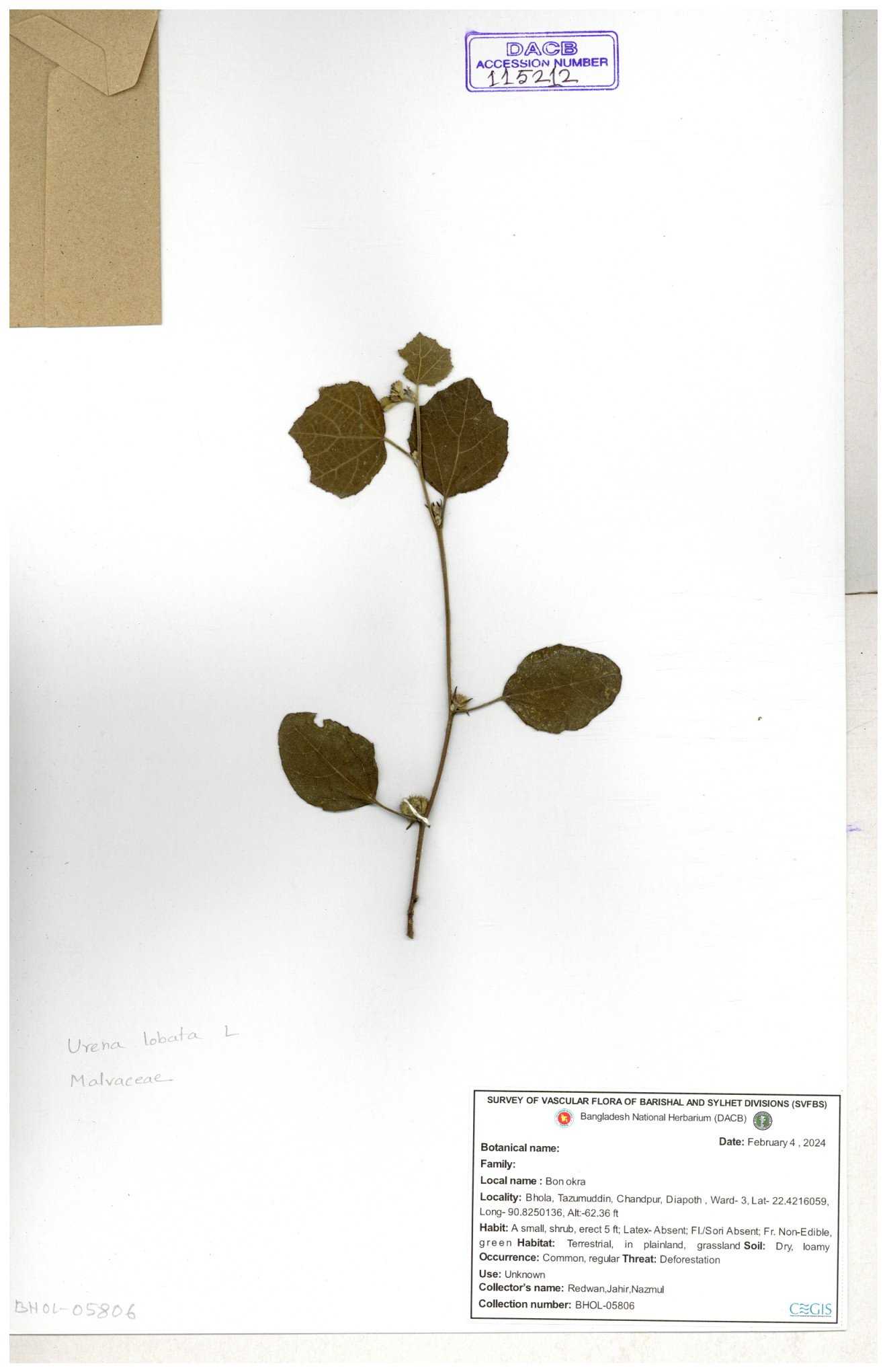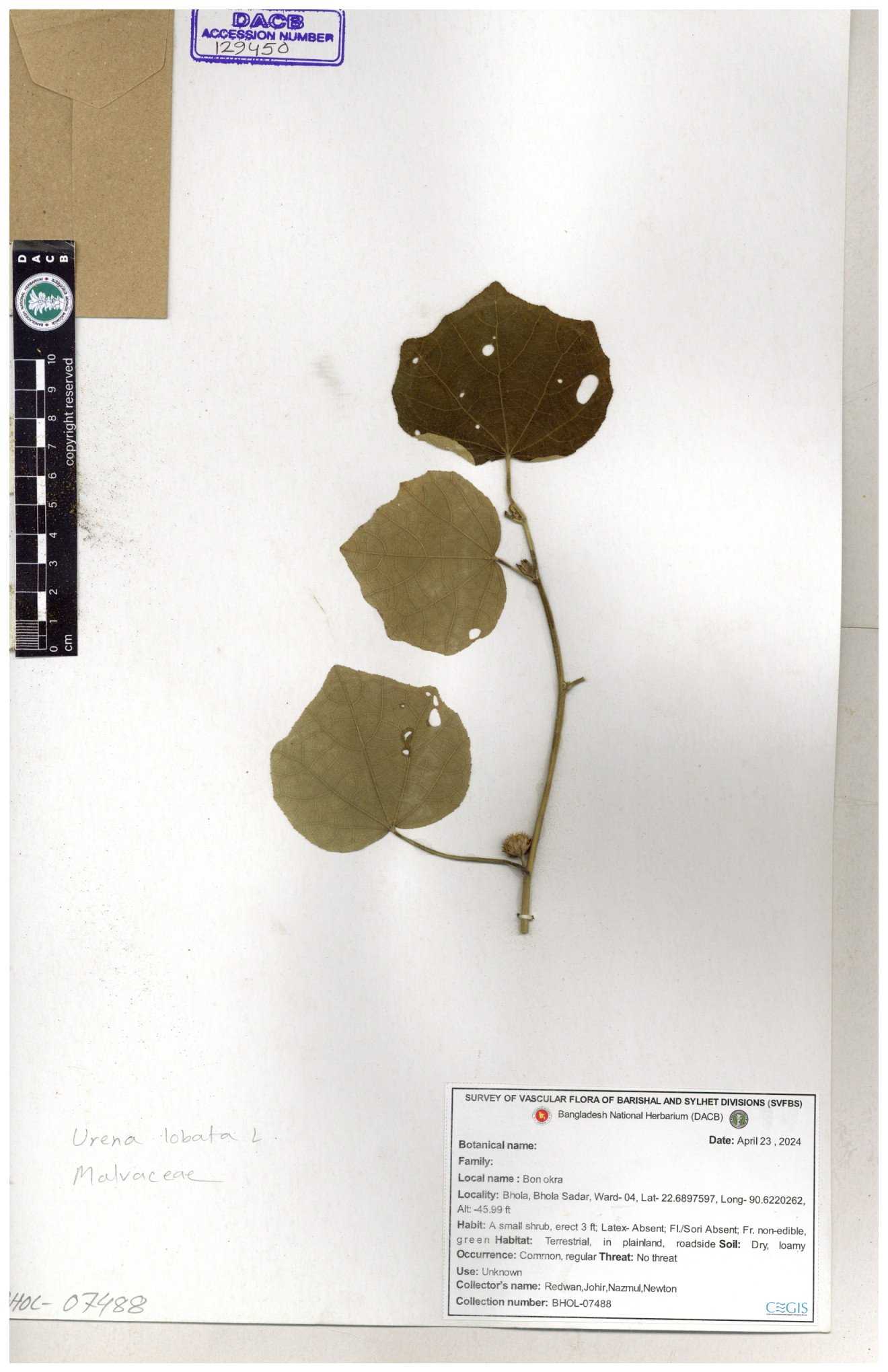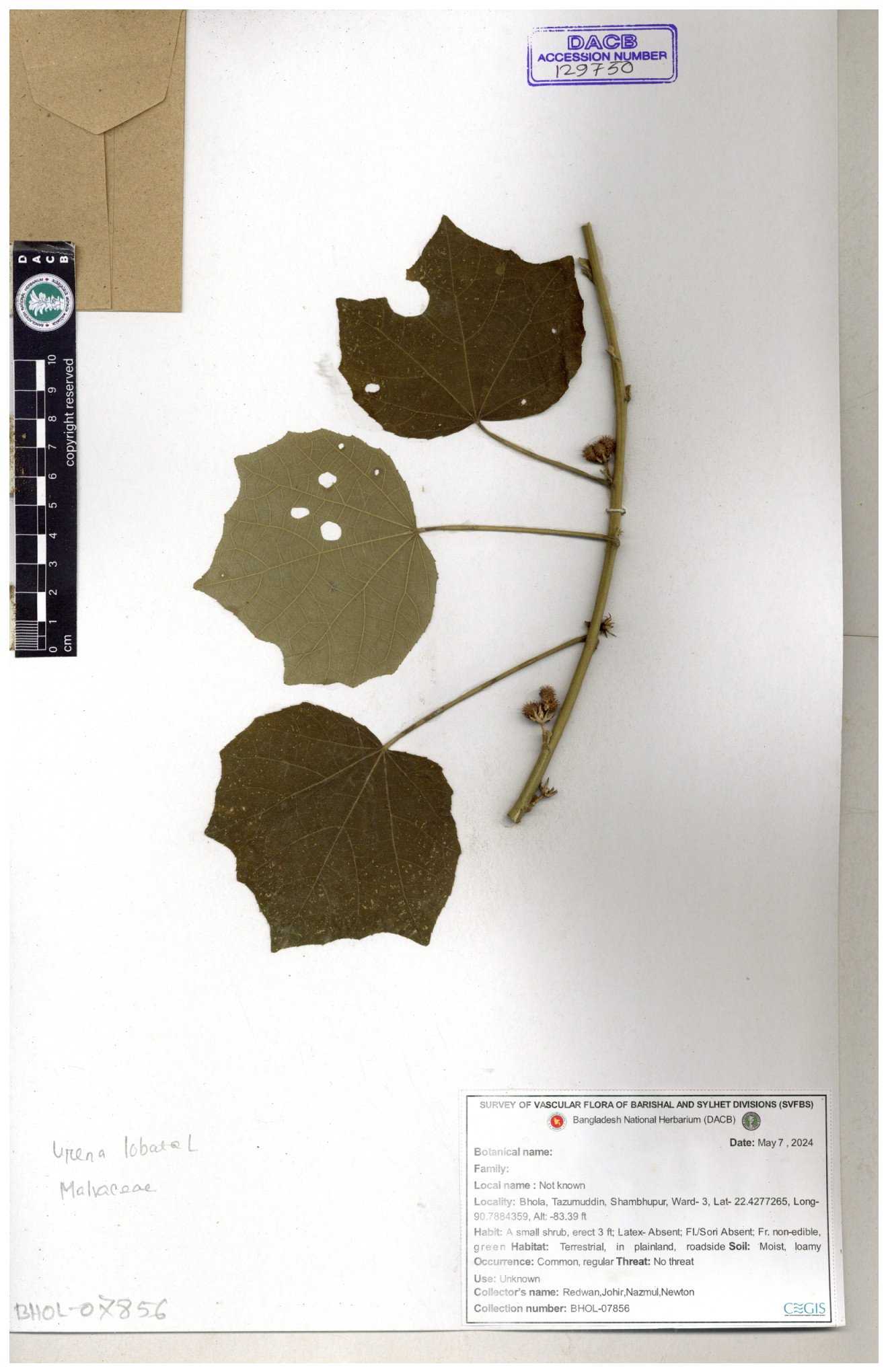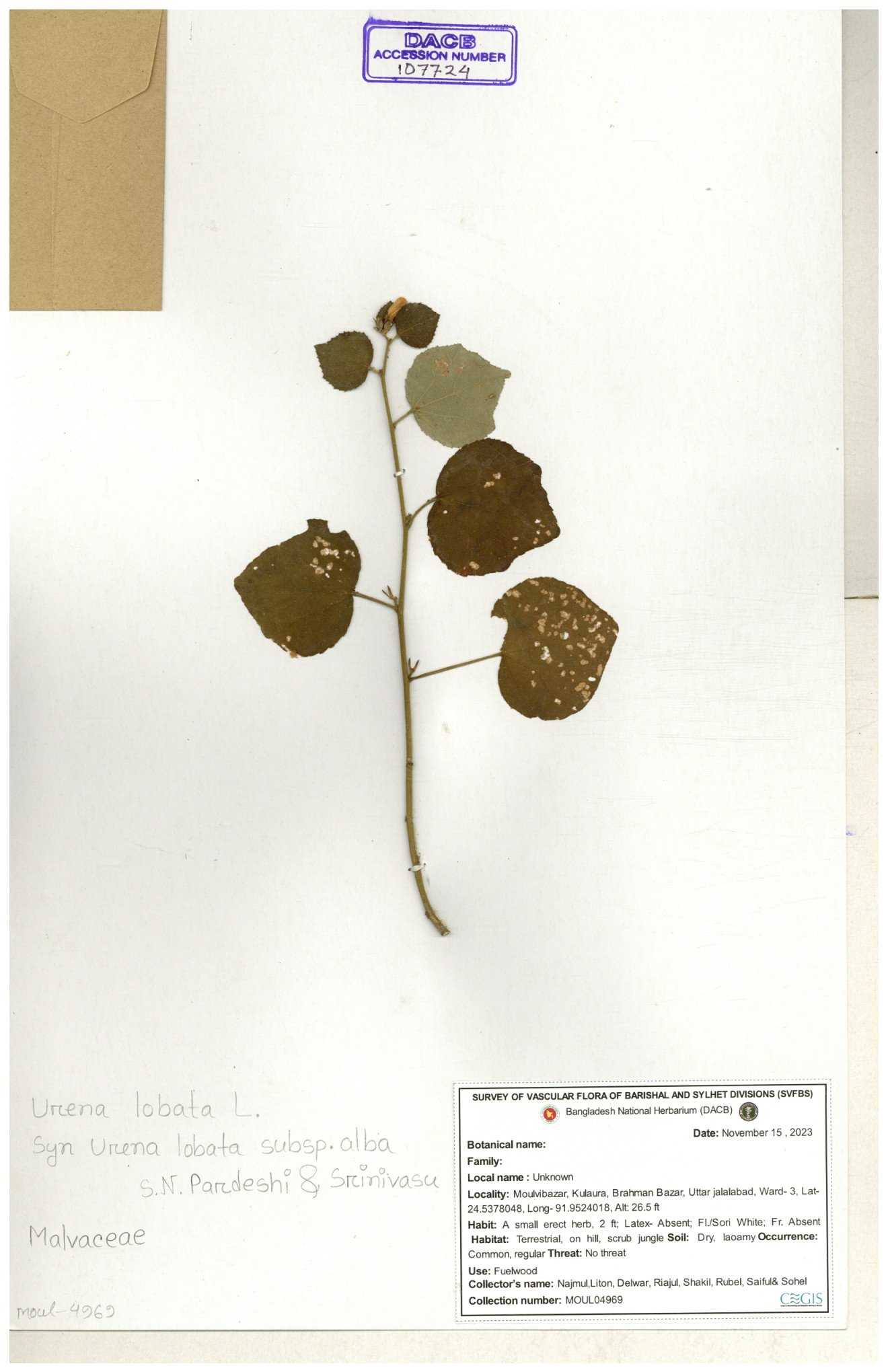 | 14128 | Malvaceae | Urena Urena sinuata | Mahfuz & A.M. Huq | MZ. 251 09-08-1988 |