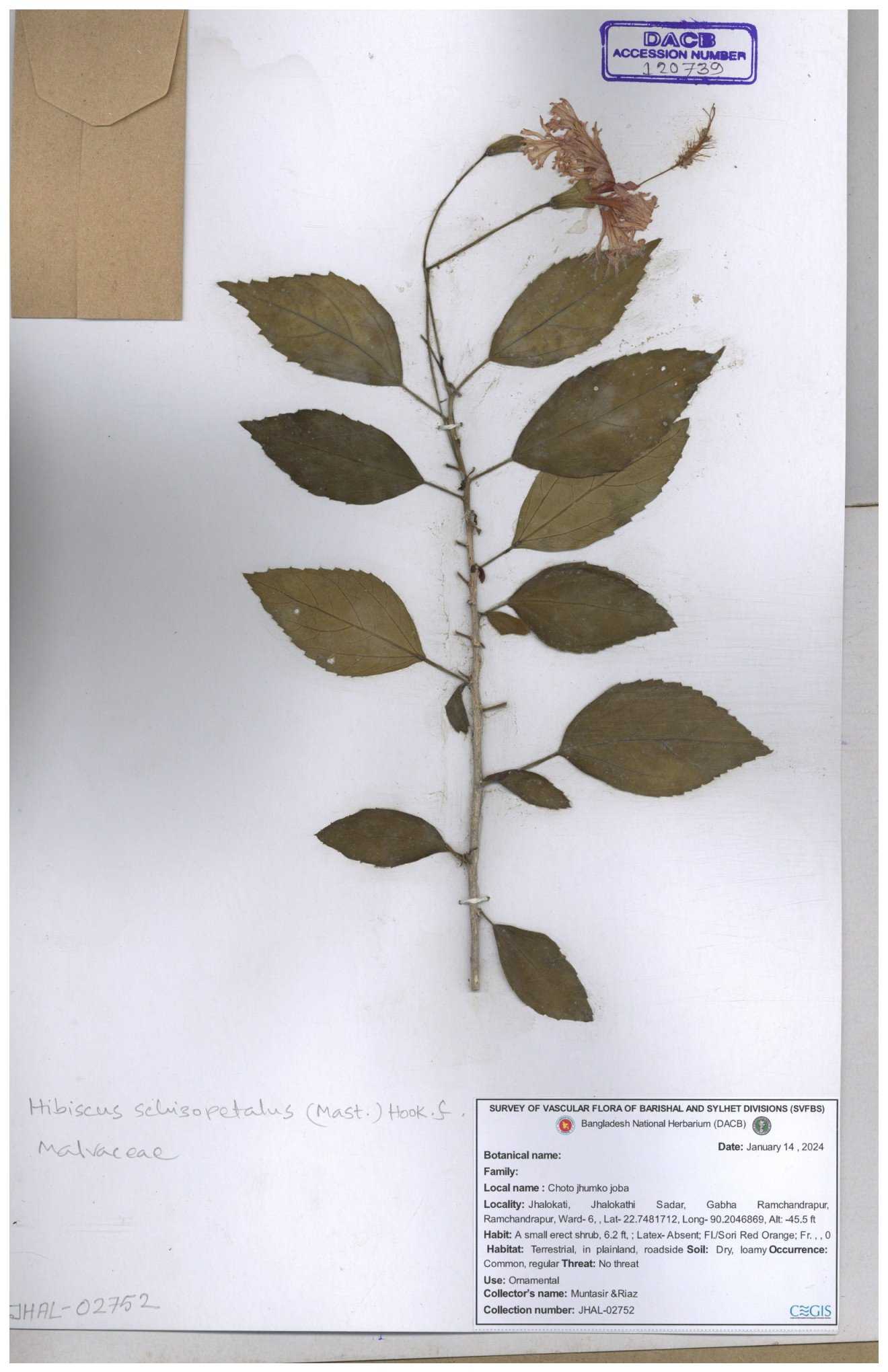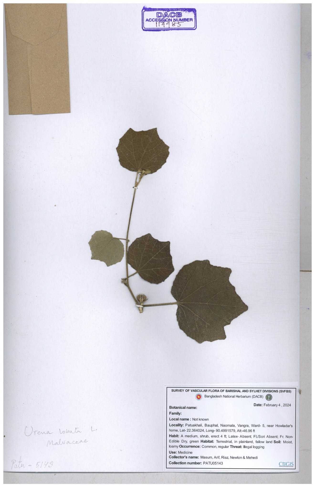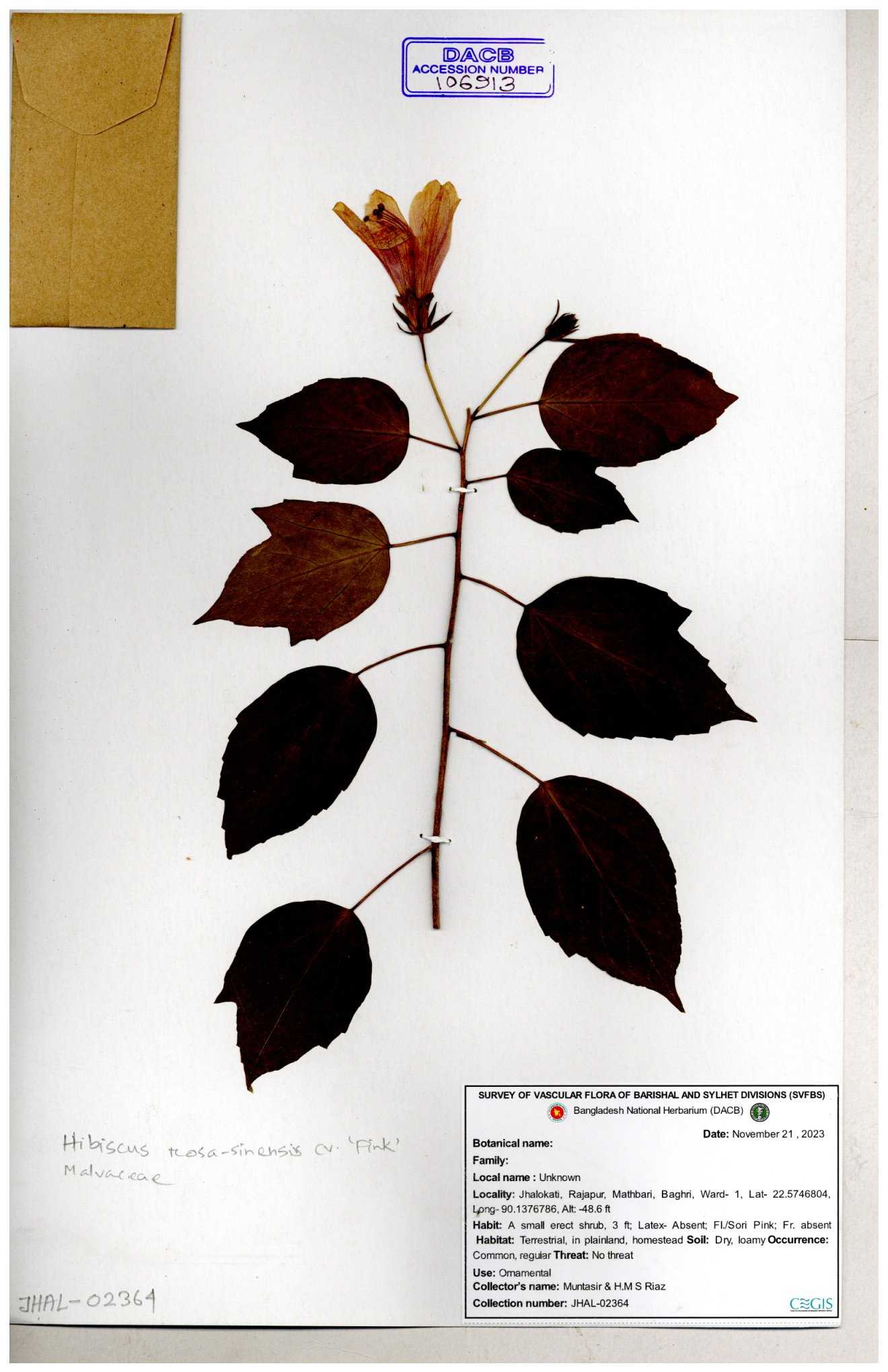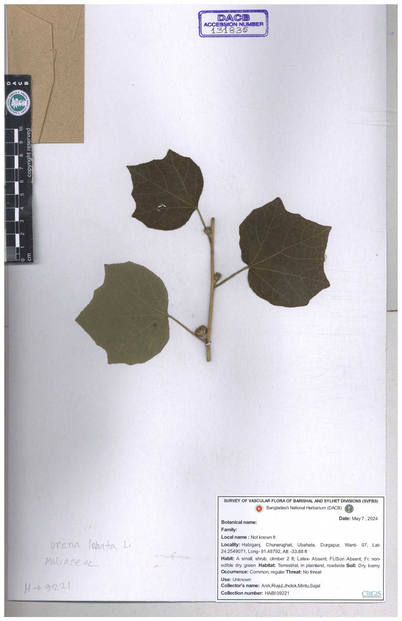 | 14128 | Malvaceae | Urena Urena sinuata | Mahfuz & A.M. Huq | MZ. 251 09-08-1988 |