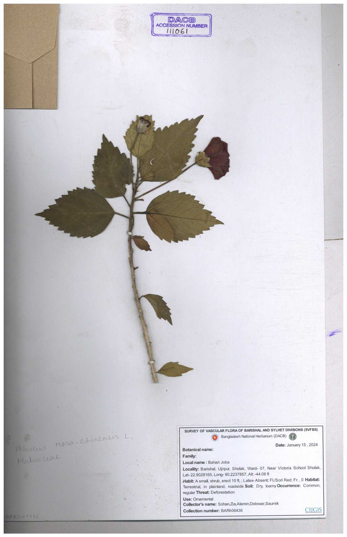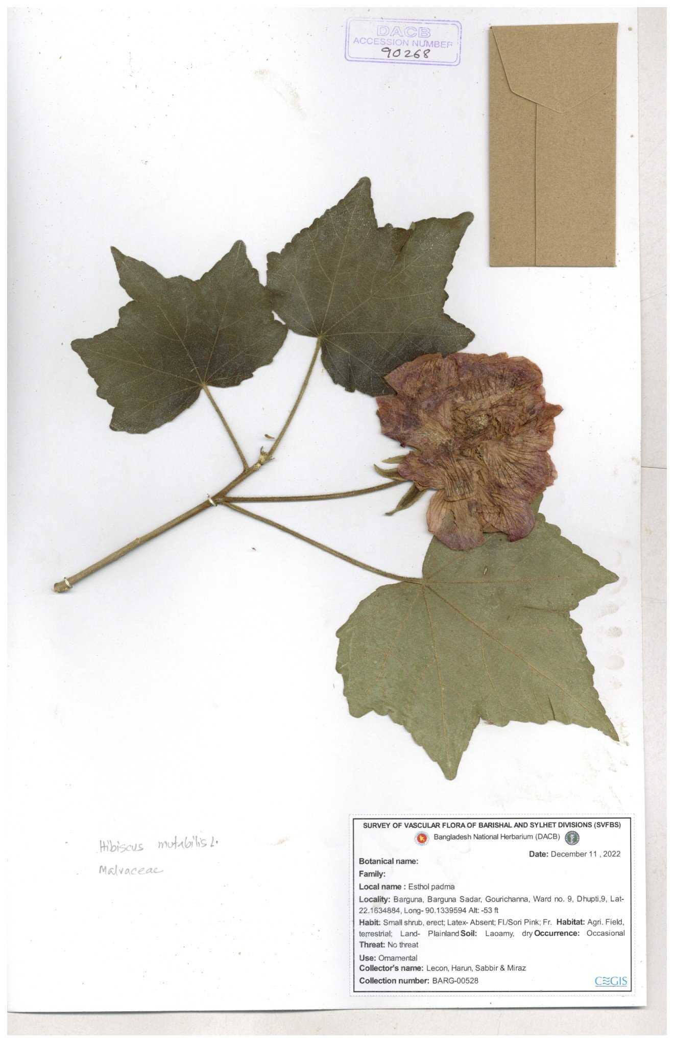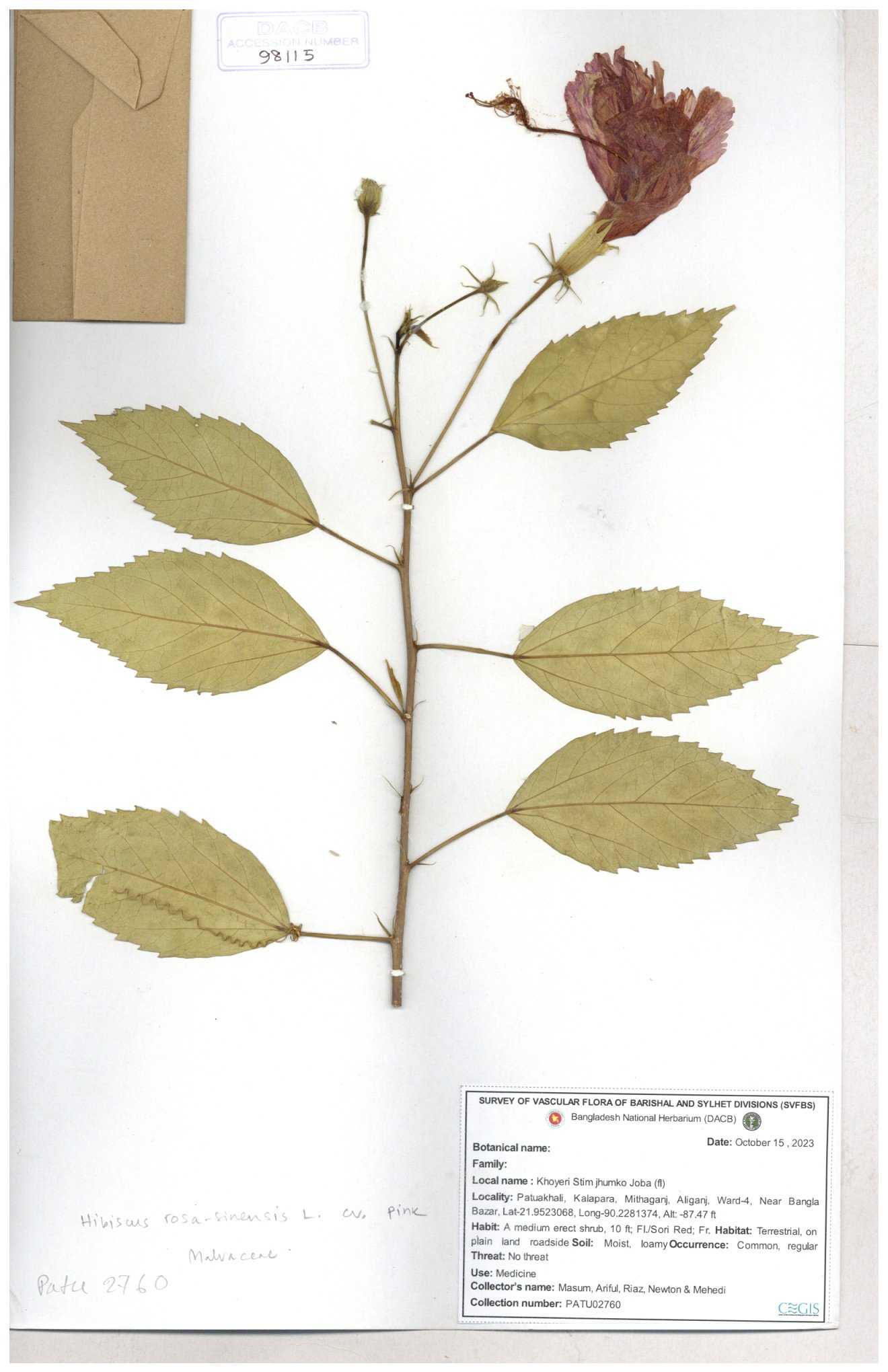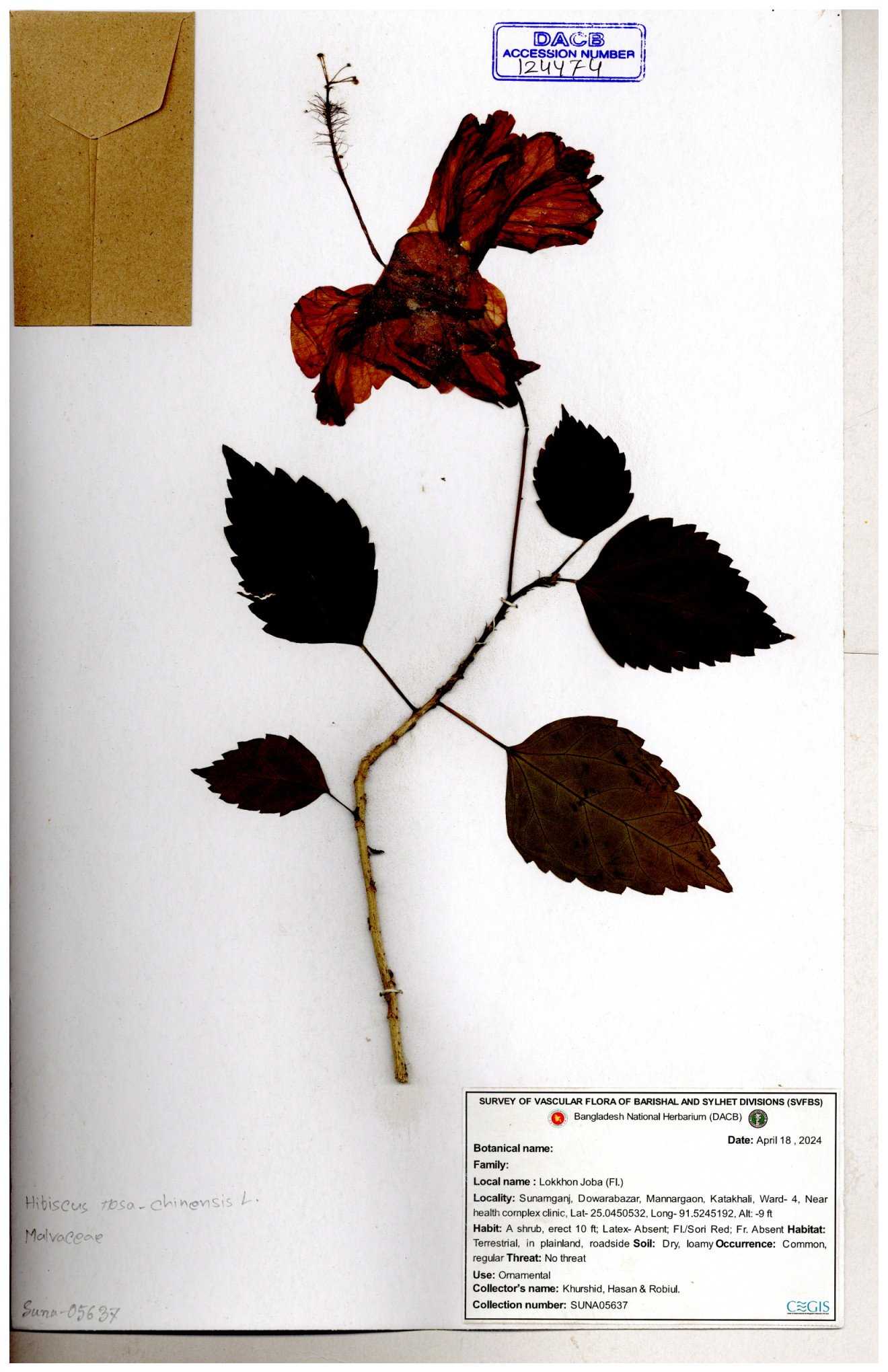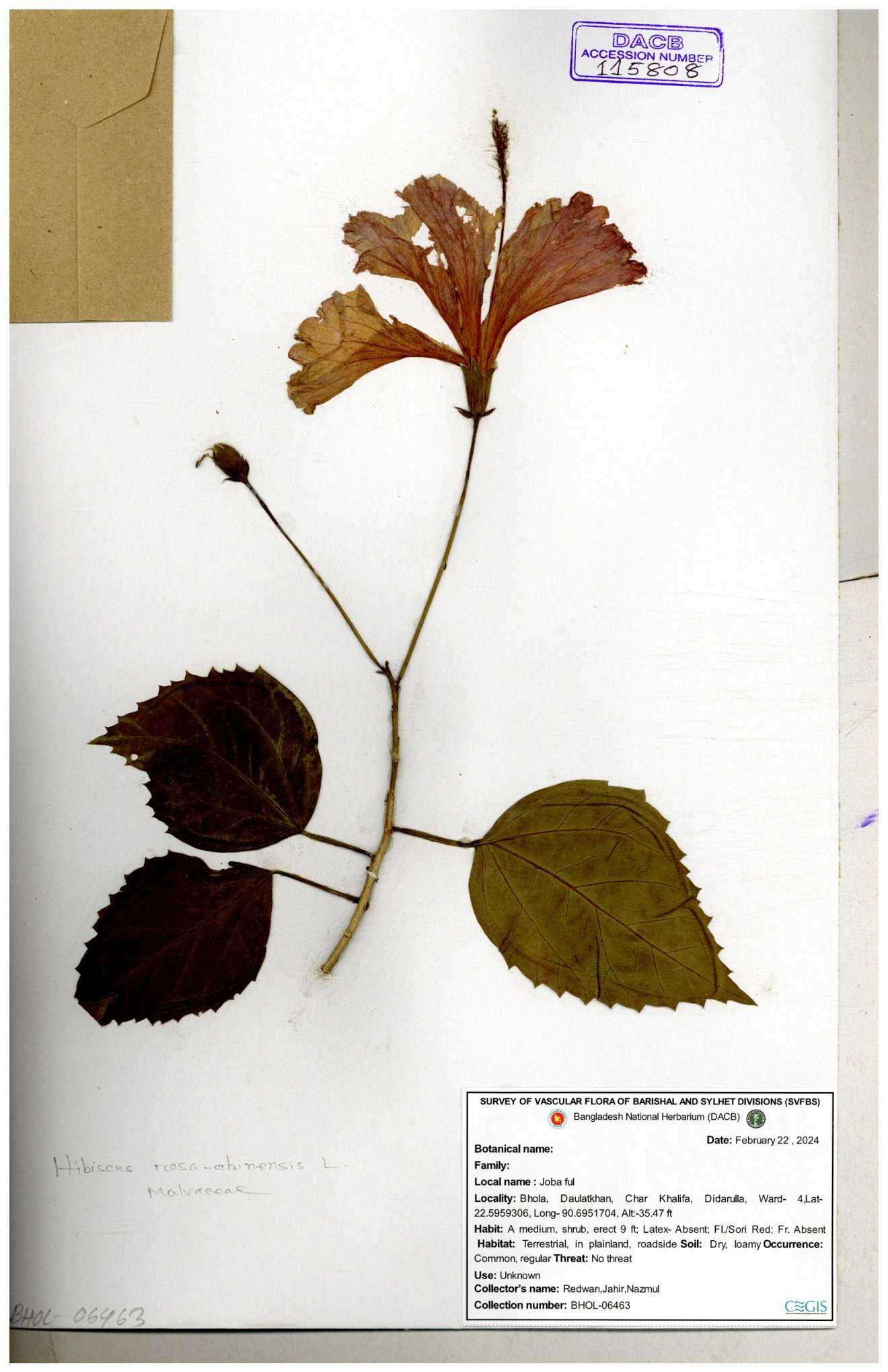 | 14128 | Malvaceae | Urena Urena sinuata | Mahfuz & A.M. Huq | MZ. 251 09-08-1988 |
