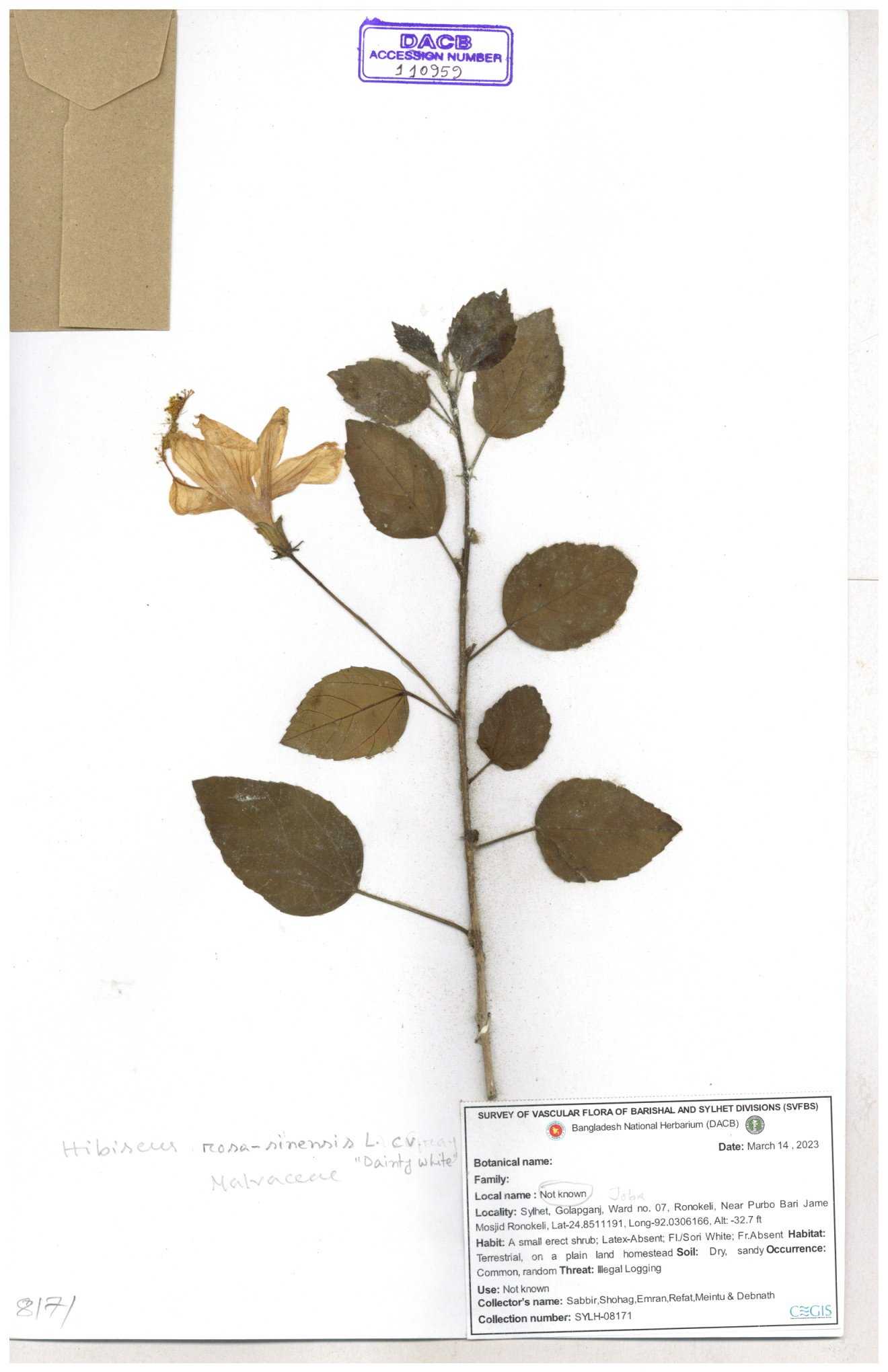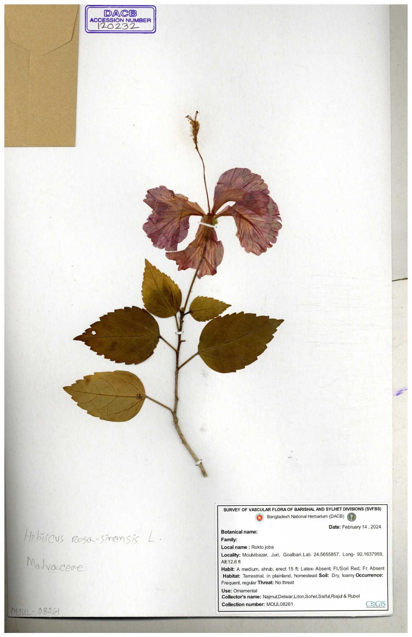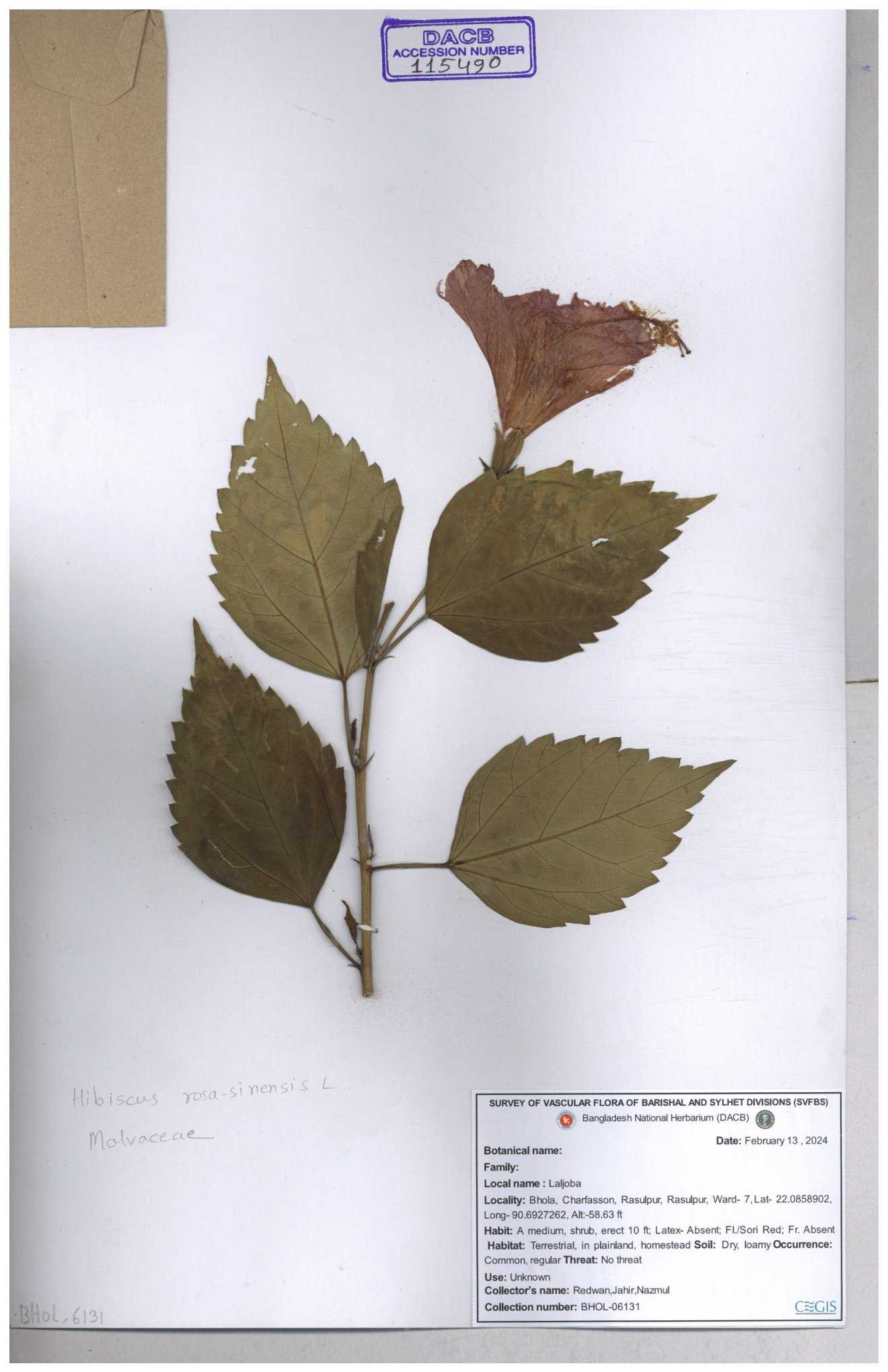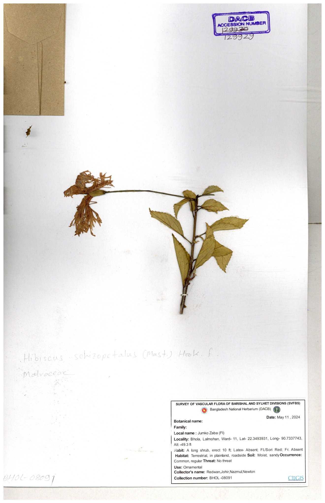 | 14128 | Malvaceae | Urena Urena sinuata | Mahfuz & A.M. Huq | MZ. 251 09-08-1988 |
